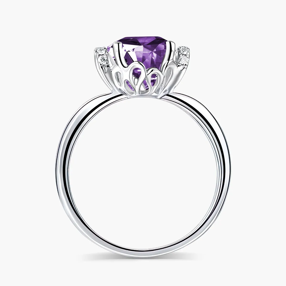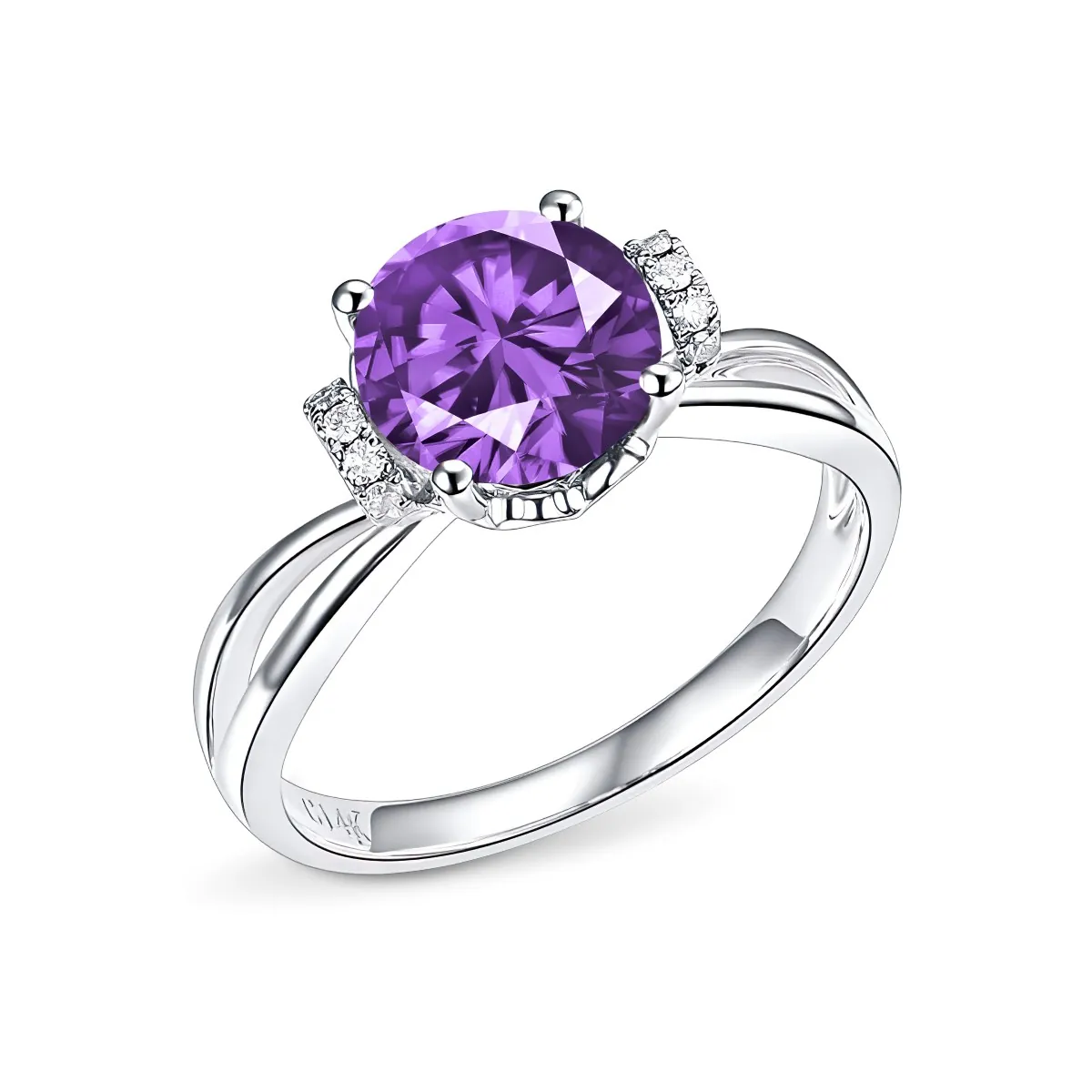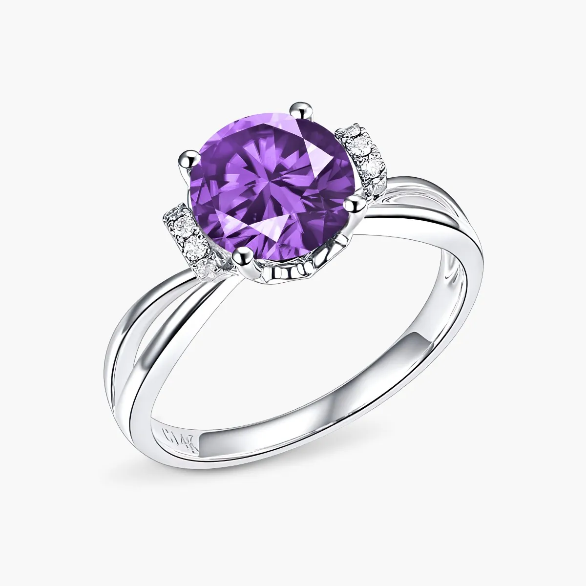 Oro blanco con Amatista y Diamantes naturales
