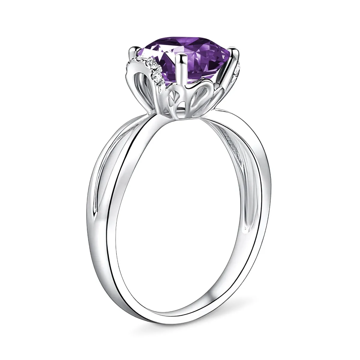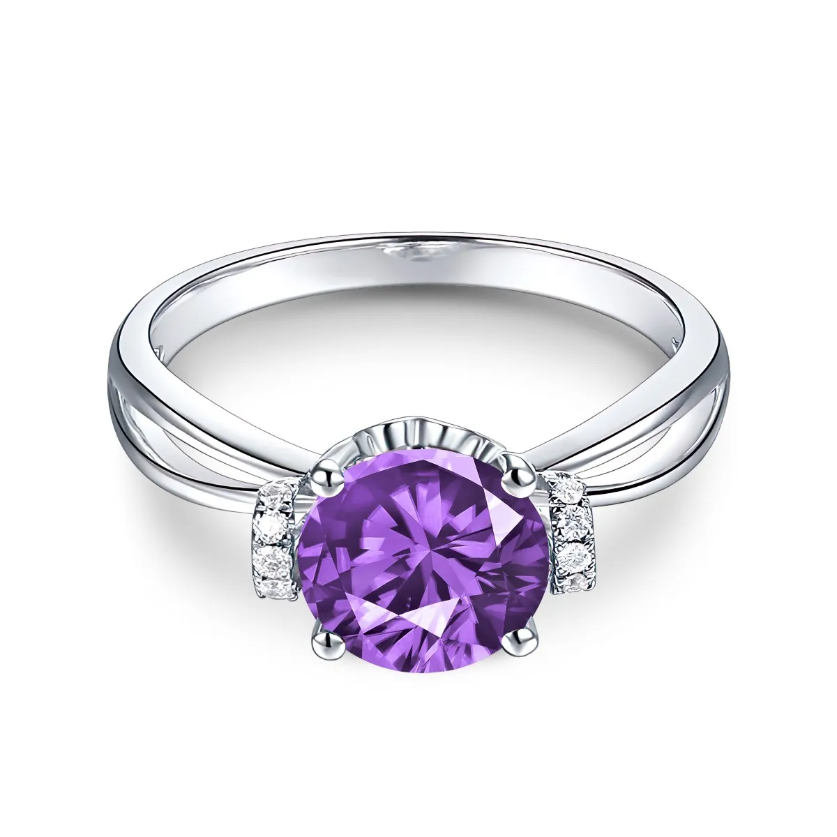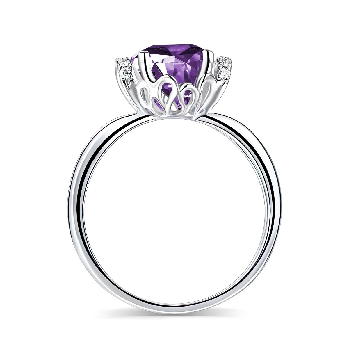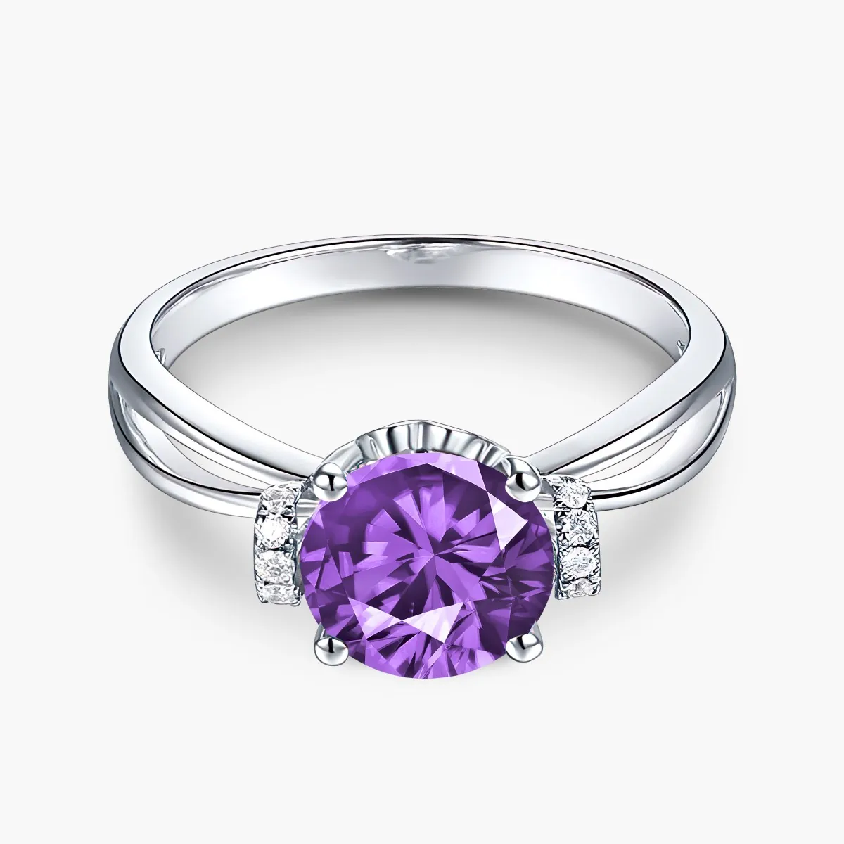 Oro blanco con Amatista y Diamantes naturales