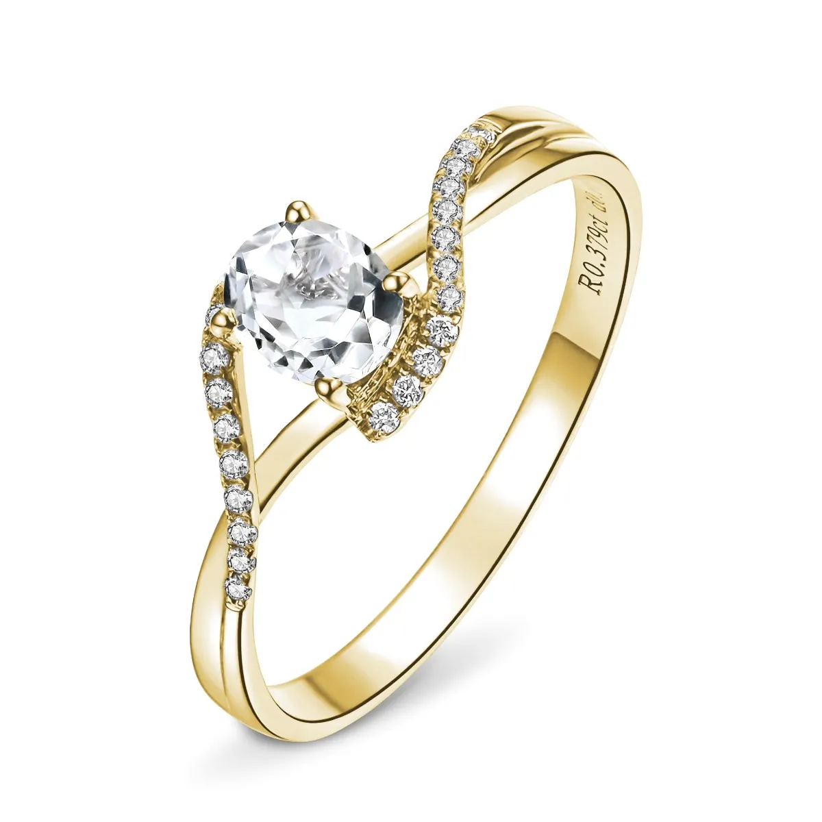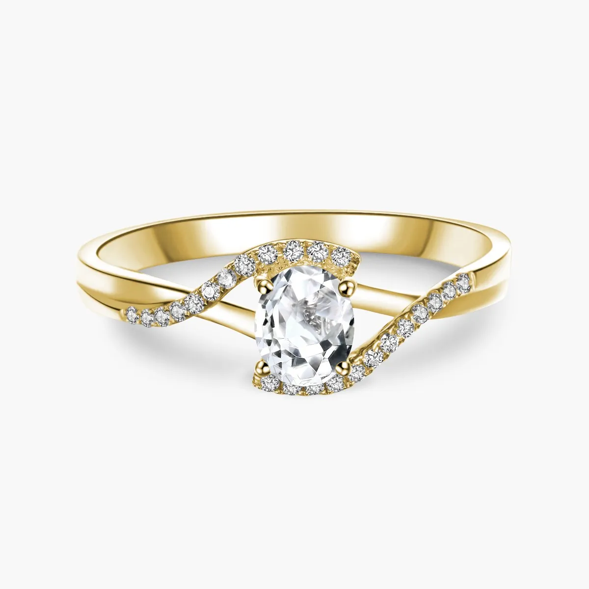 Oro amarillo con Topacio blanco y Diamantes naturales