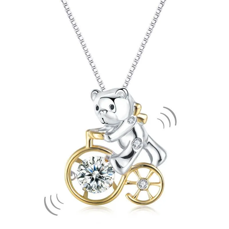 Collar en plata ley 925 y acabados en oro amarillo. Lleva como dije un osito en bicicleta con zircones calidad 5A corte redondo color natural