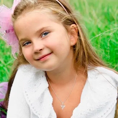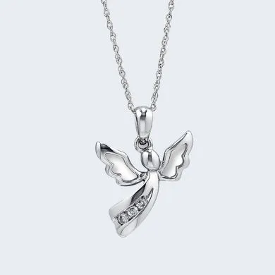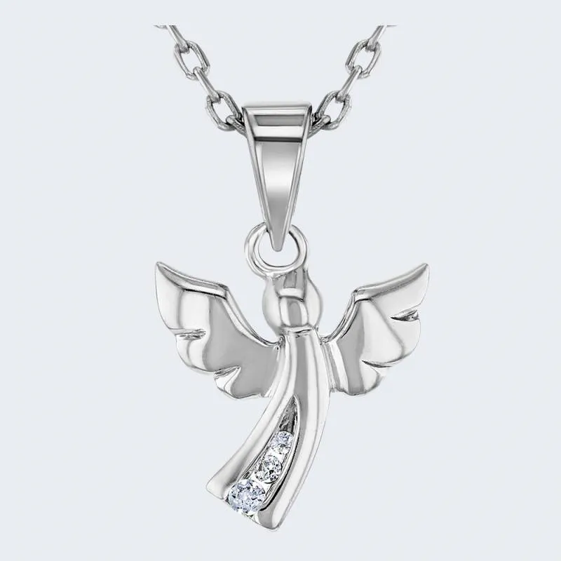 Collar para niñas y adolescentes hecho de plata de ley 925, con forma de ángel con incrustaciones de zircones swarovski en corte redondo color natural