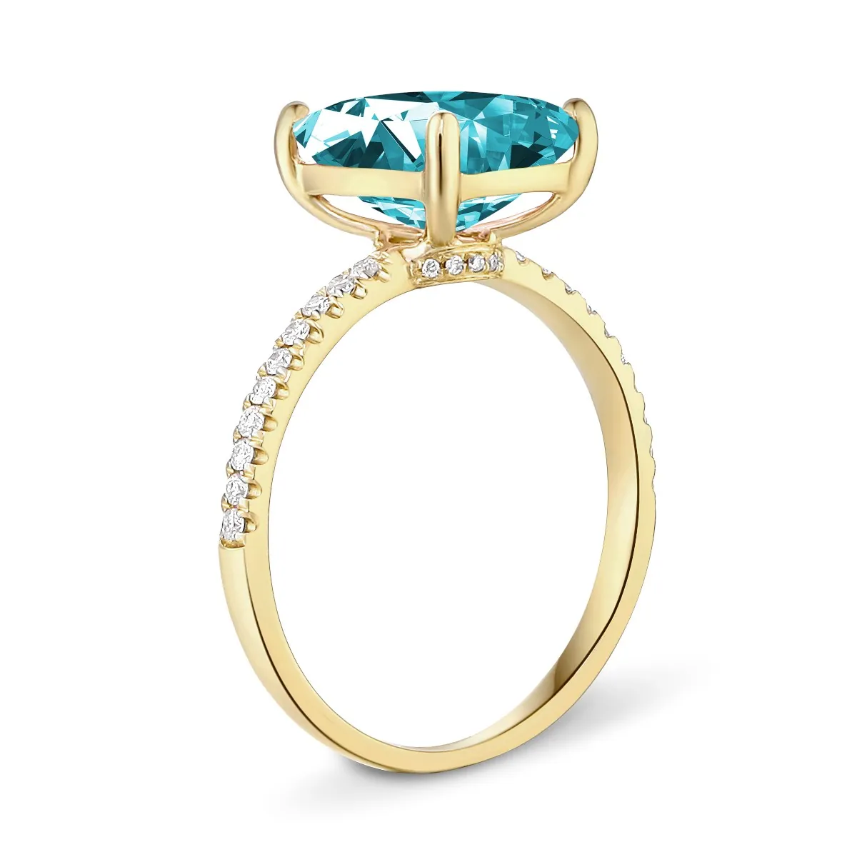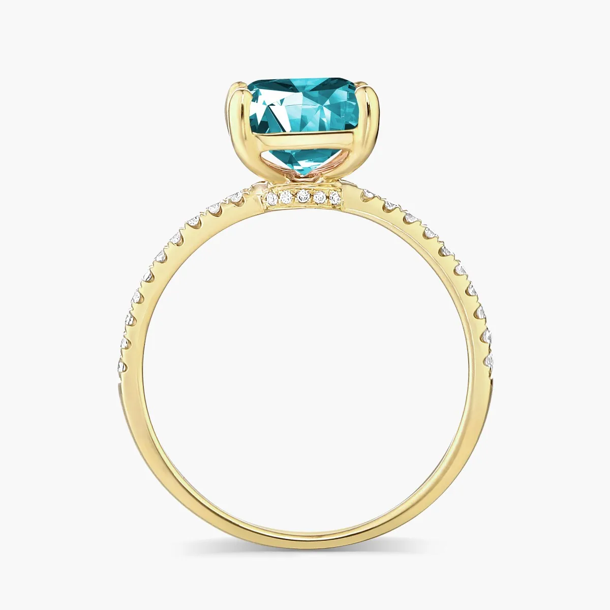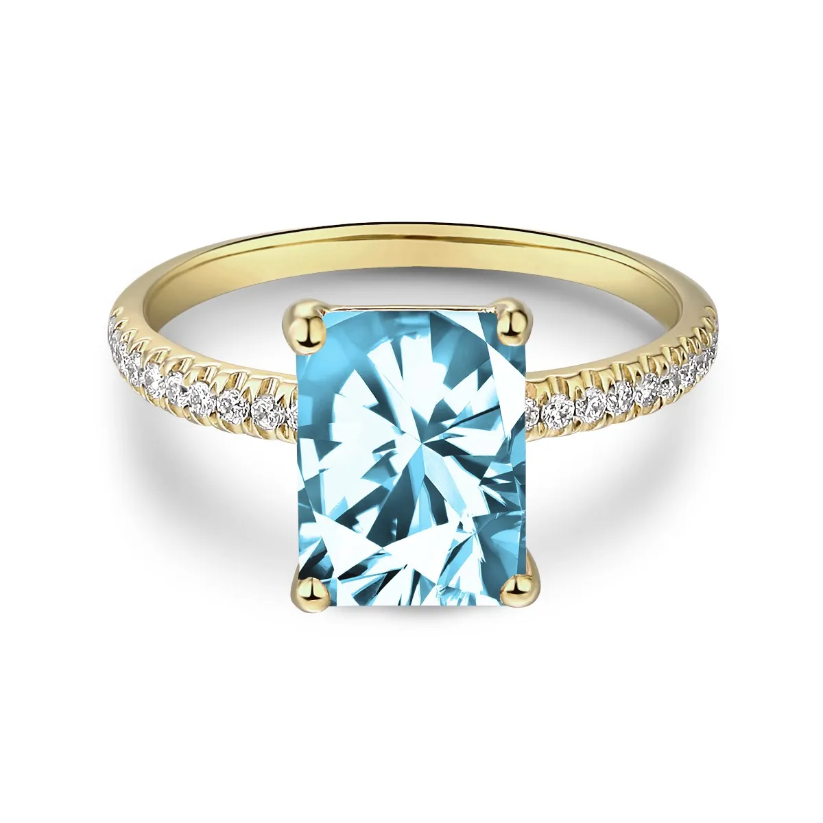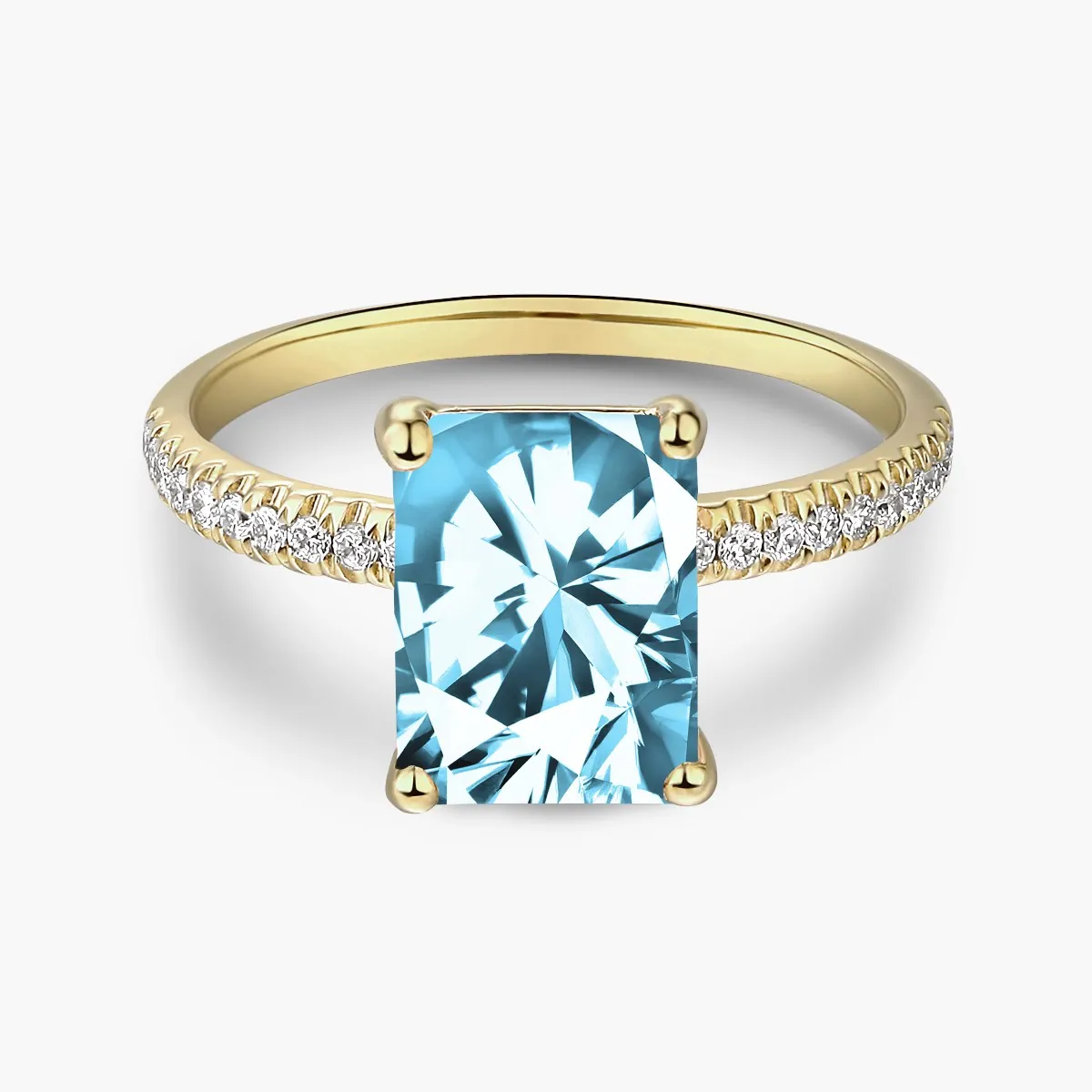 Oro amarillo con Topacio celeste y Diamantes naturales