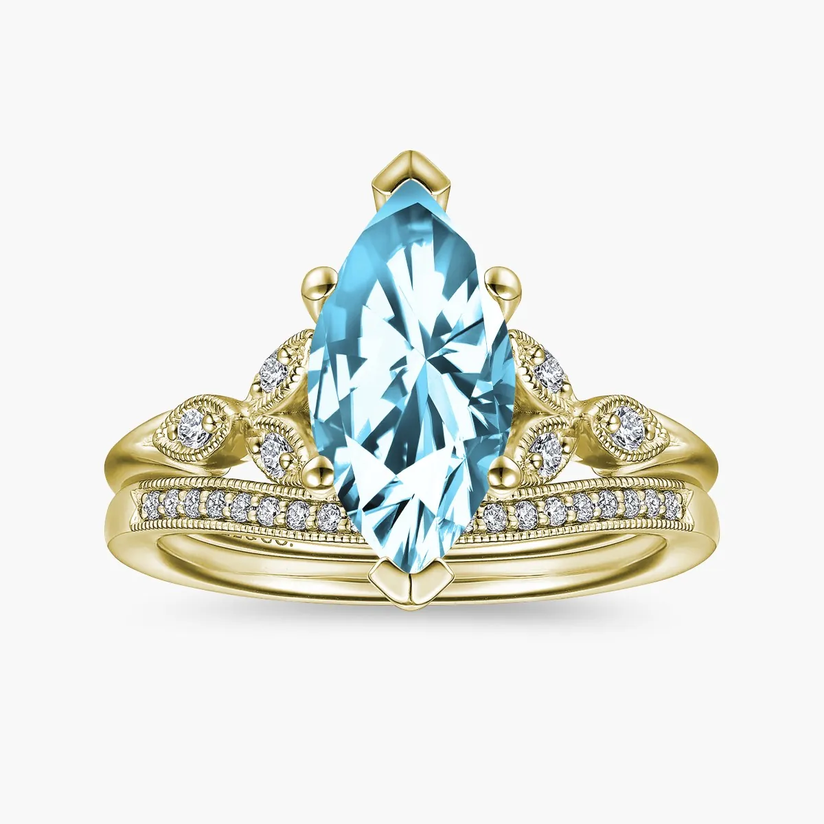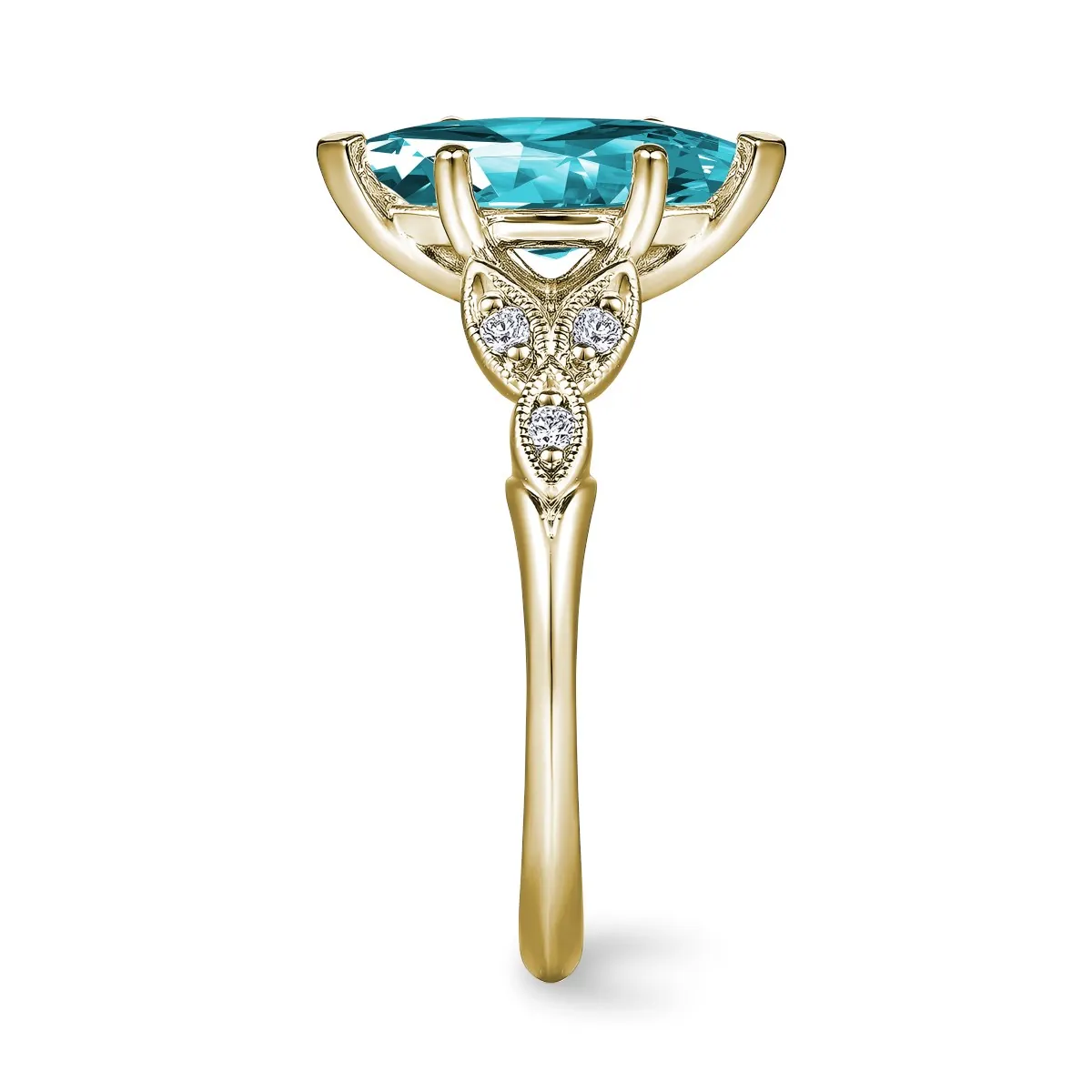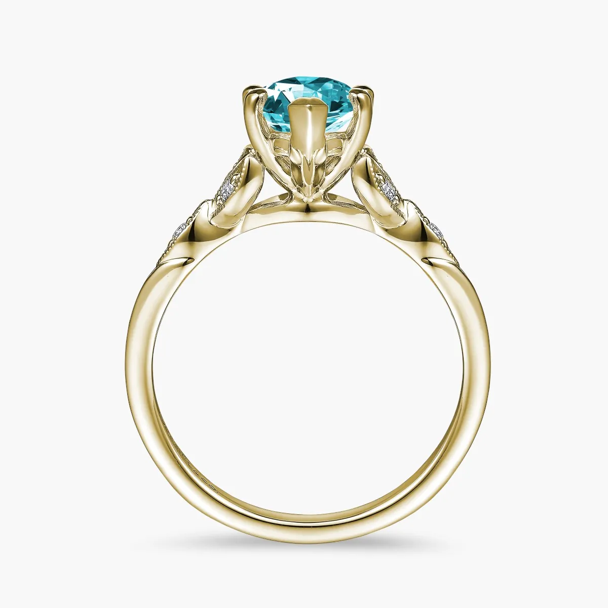 Oro amarillo con Topacio celeste y Diamantes naturales blancos