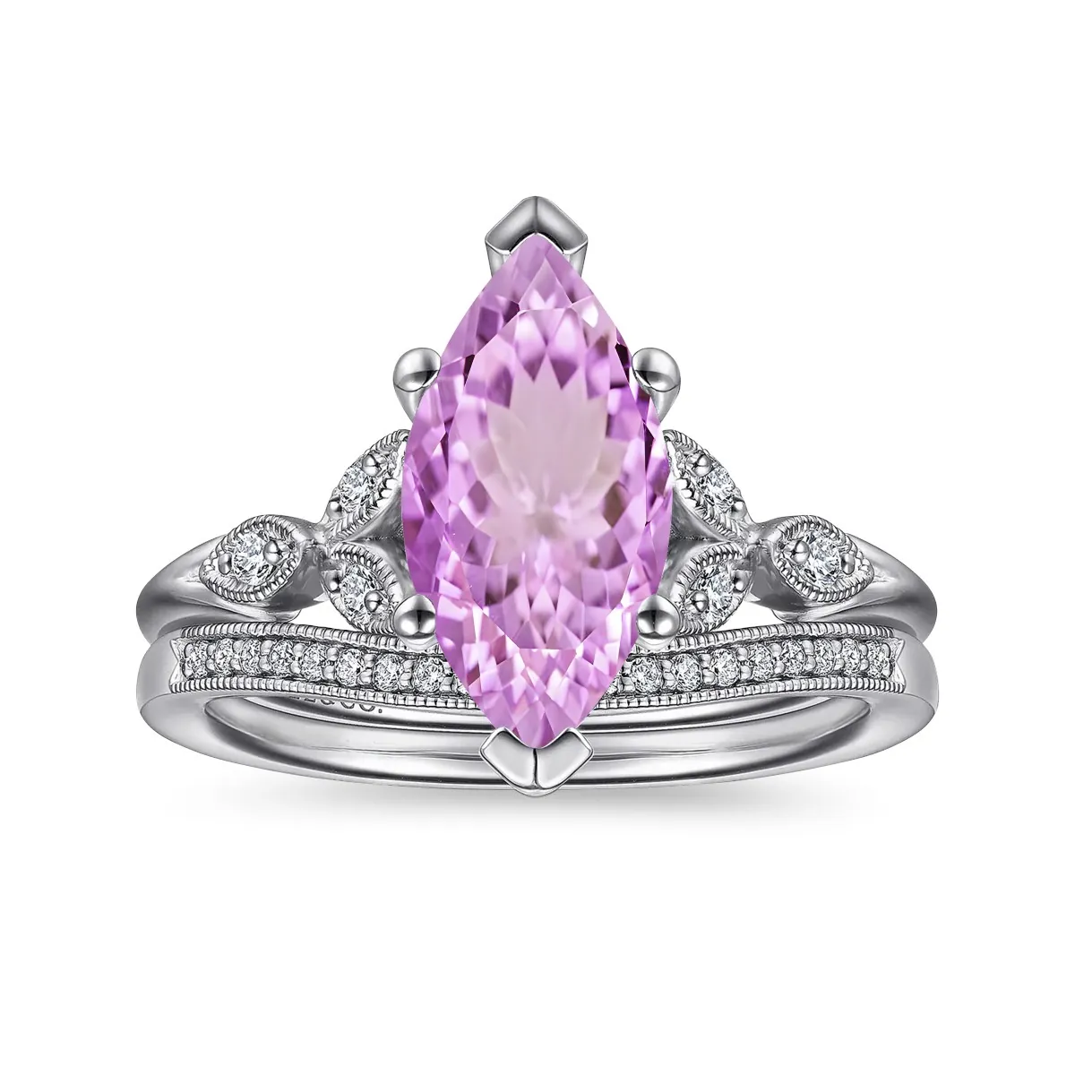 Oro blanco con Zafiro rosa y Diamantes naturales