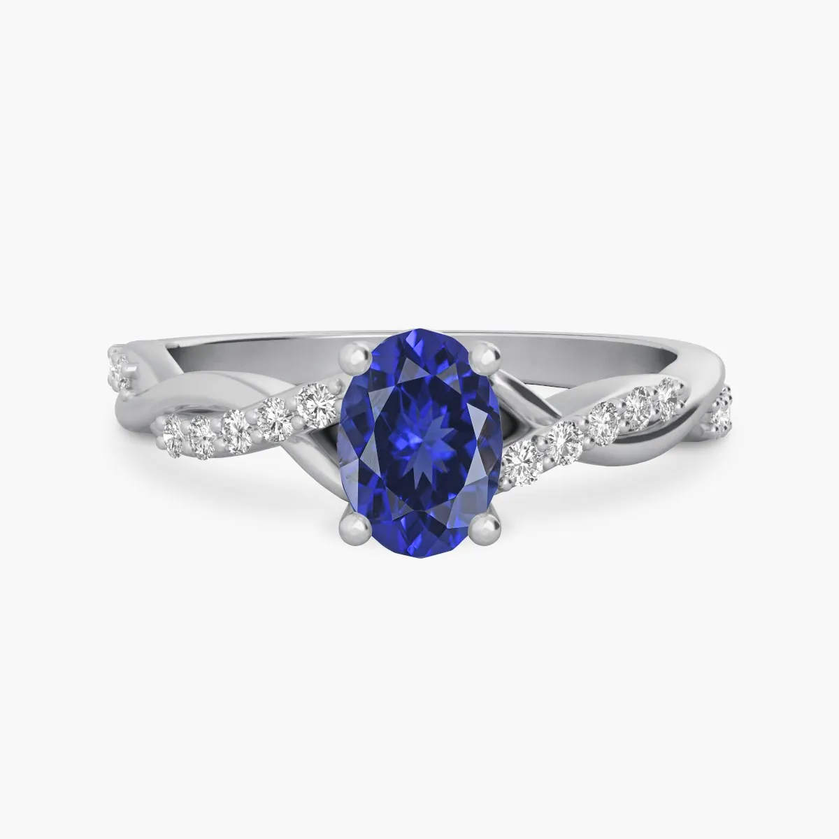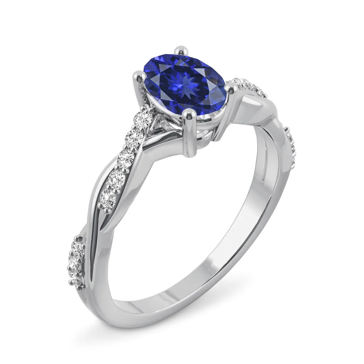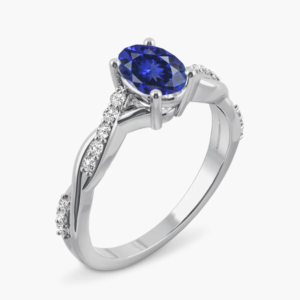 Oro blanco con Zafiro azul y Diamantes naturales
