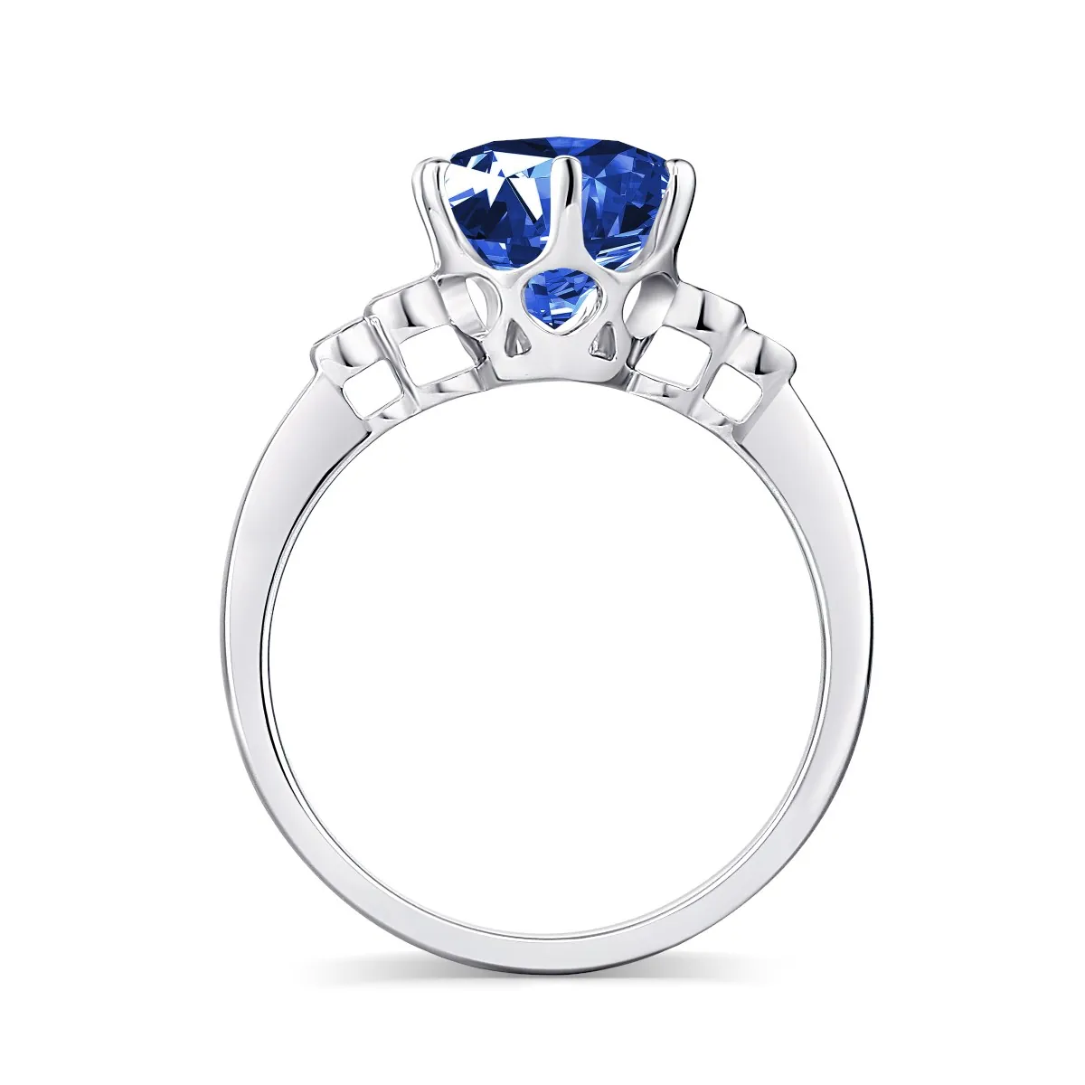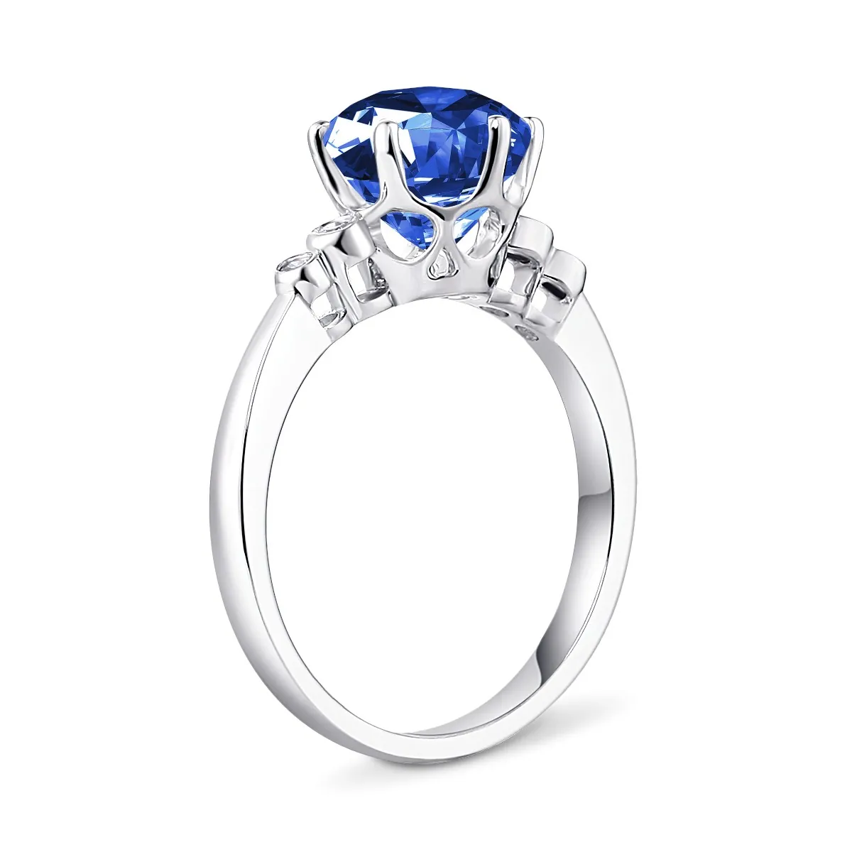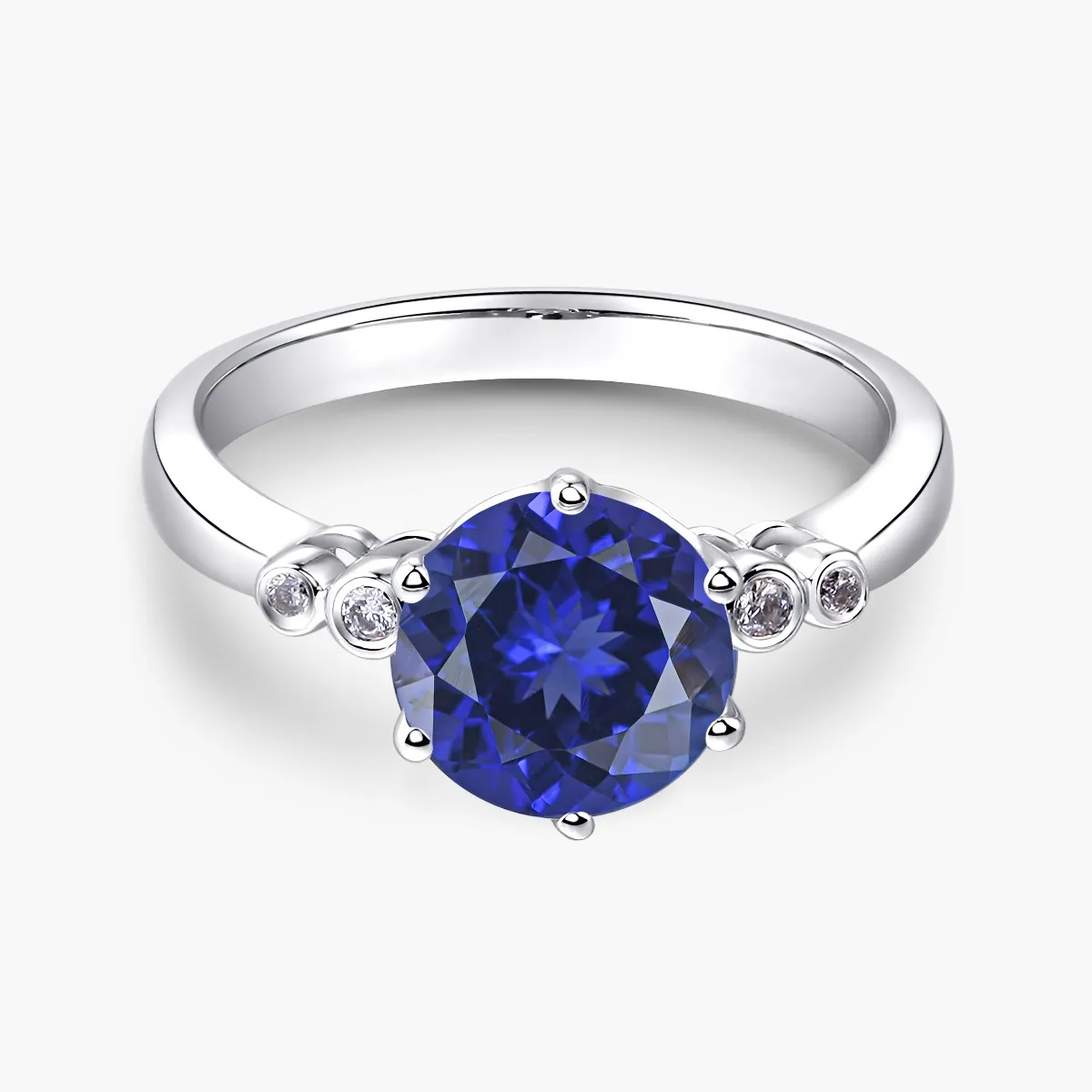 Oro blanco con Zafiro azul y Diamantes naturales