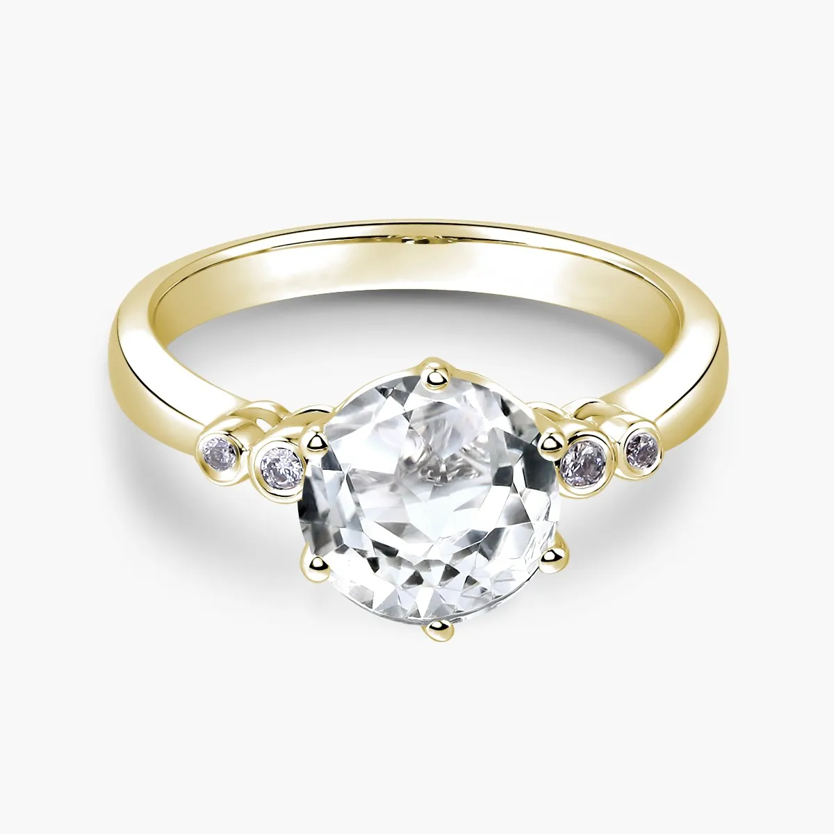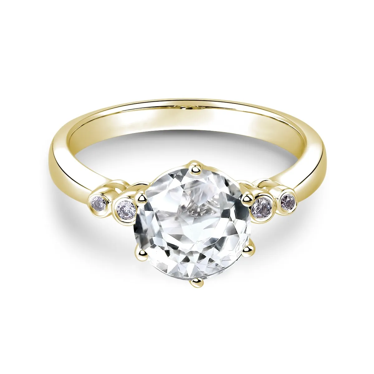 Oro amarillo con Topacio blanco y Diamantes naturales