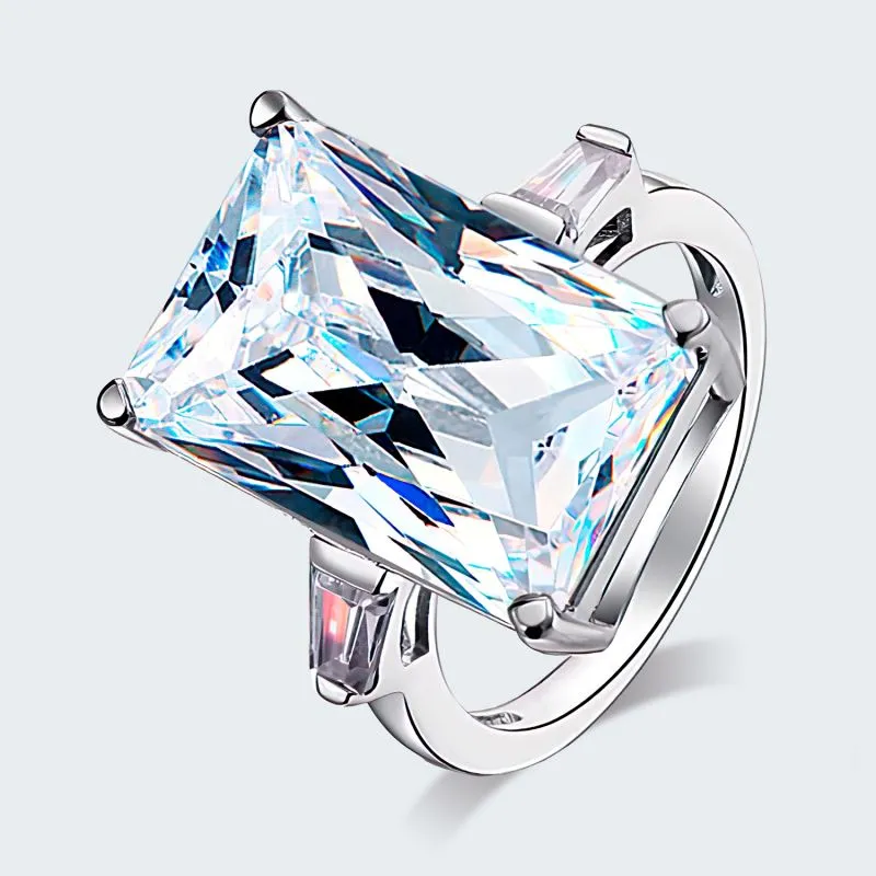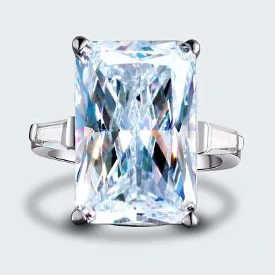 Sortija en plata ley 925 con zircon swarovski calidad AAA corte rectángulo