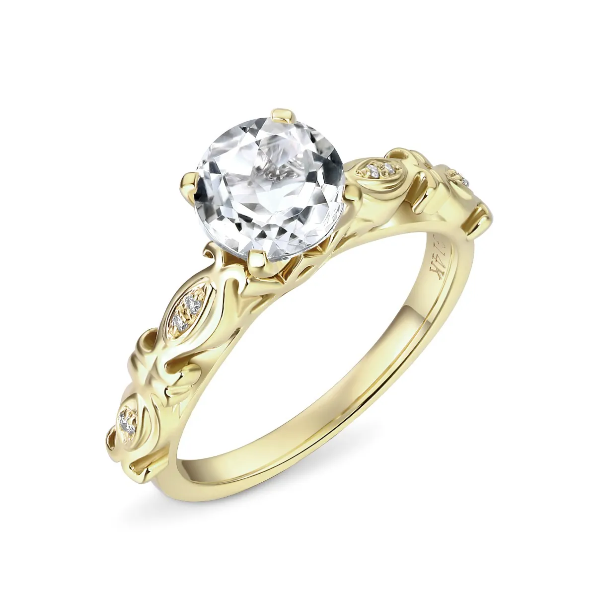 Oro amarillo con Topacio blanco y Diamantes naturales