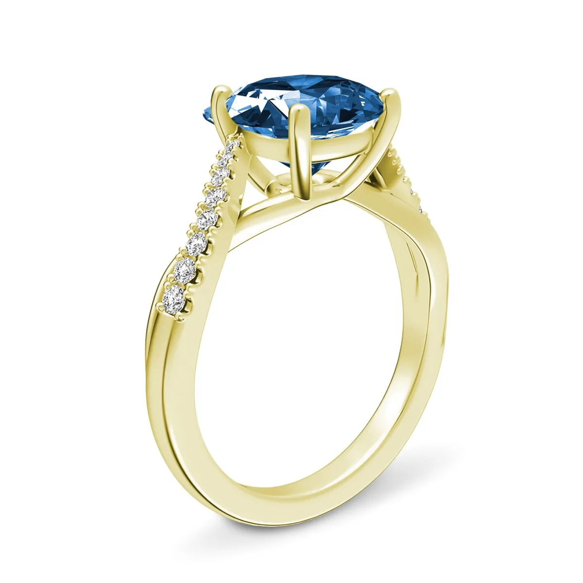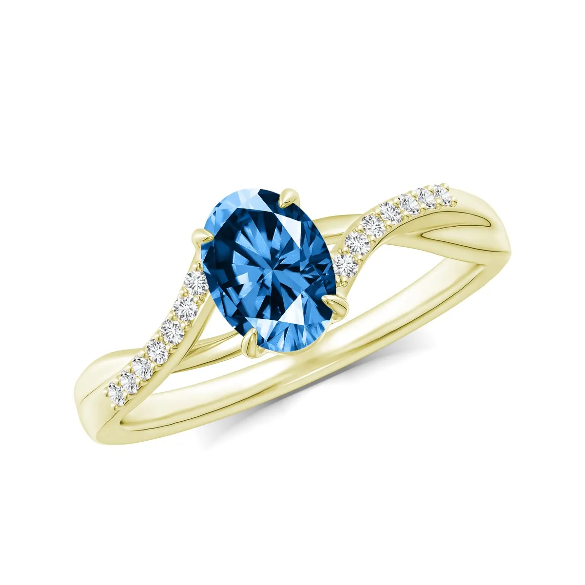 Oro amarillo con Topacio azul y Diamantes naturales