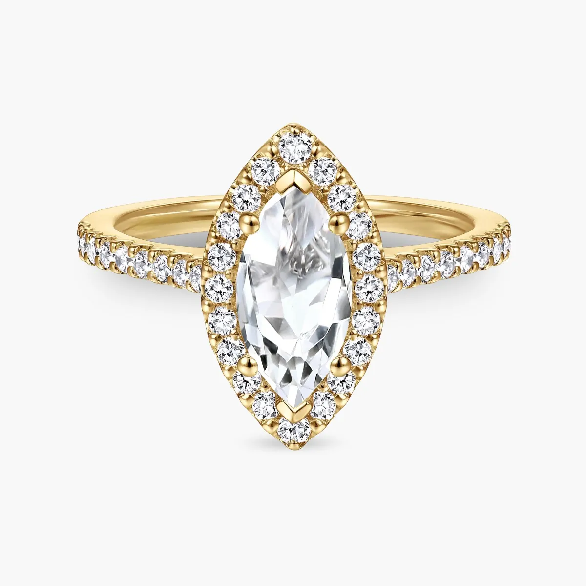 Oro amarillo con Topacio blanco y Diamantes naturales