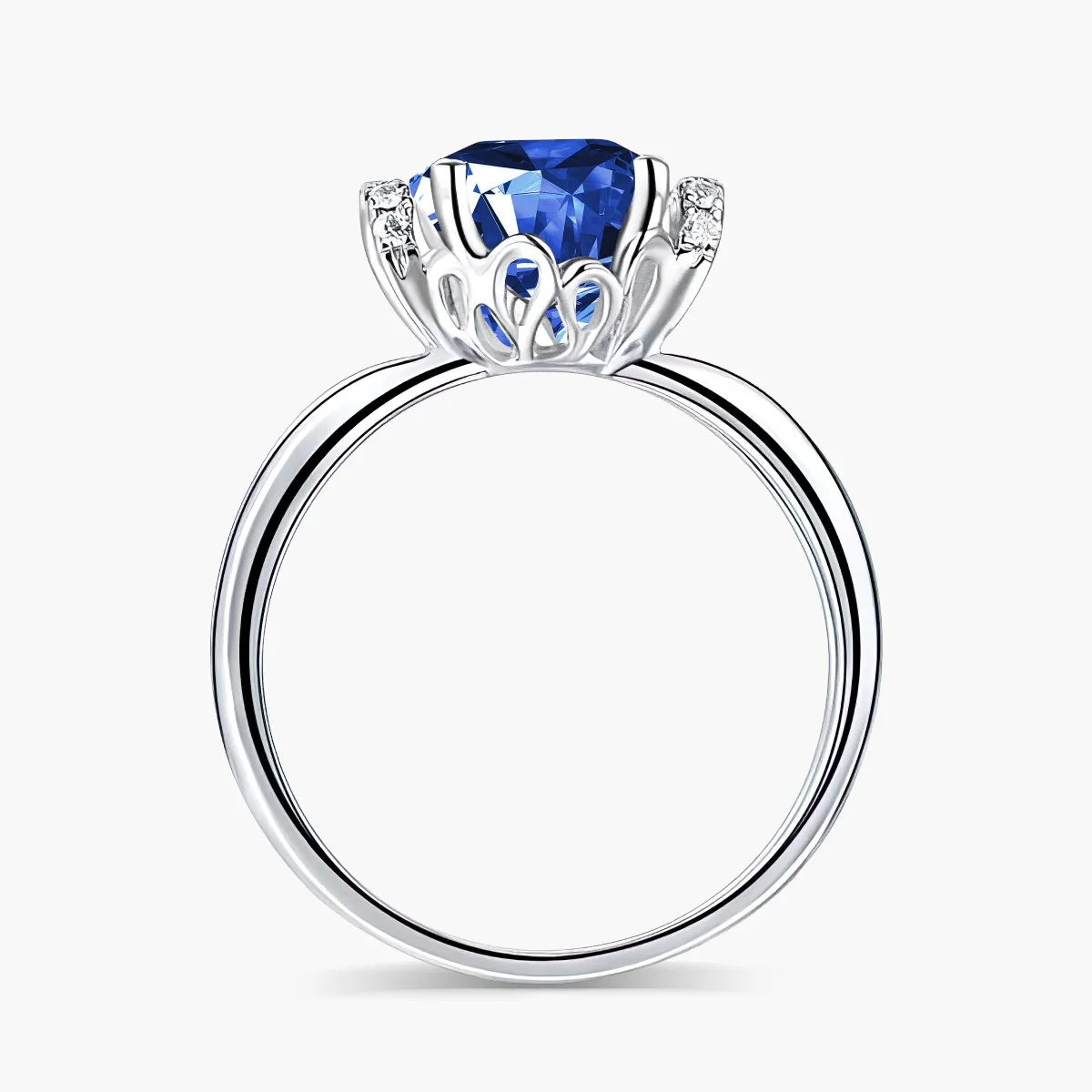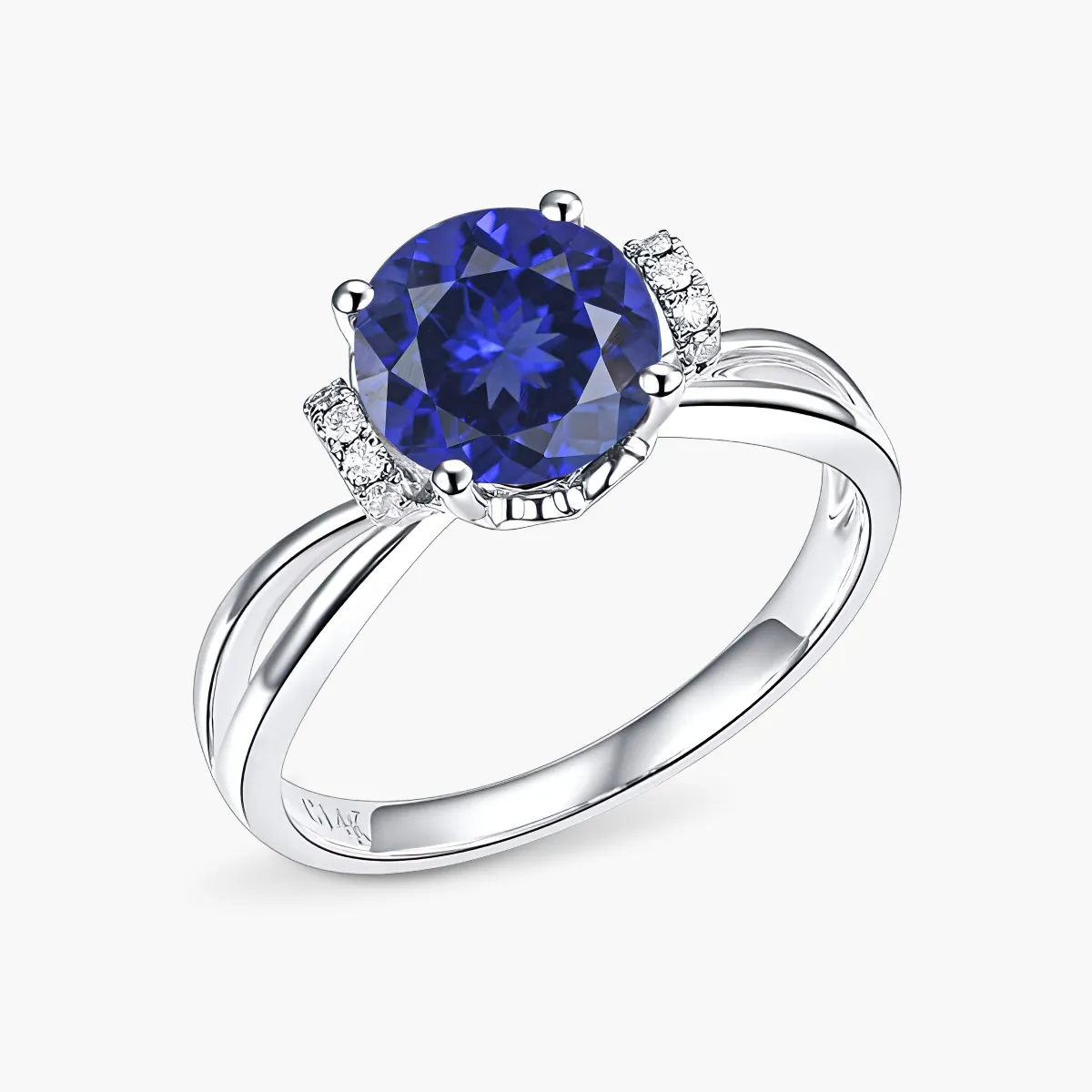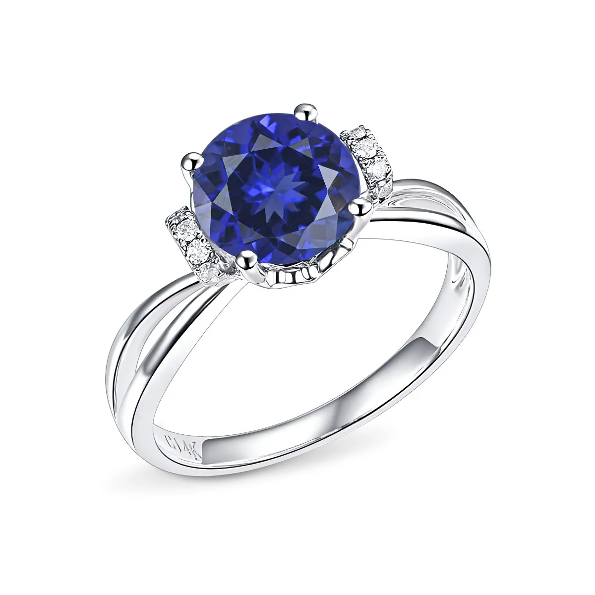 Oro blanco con Zafiro azul y Diamantes naturales