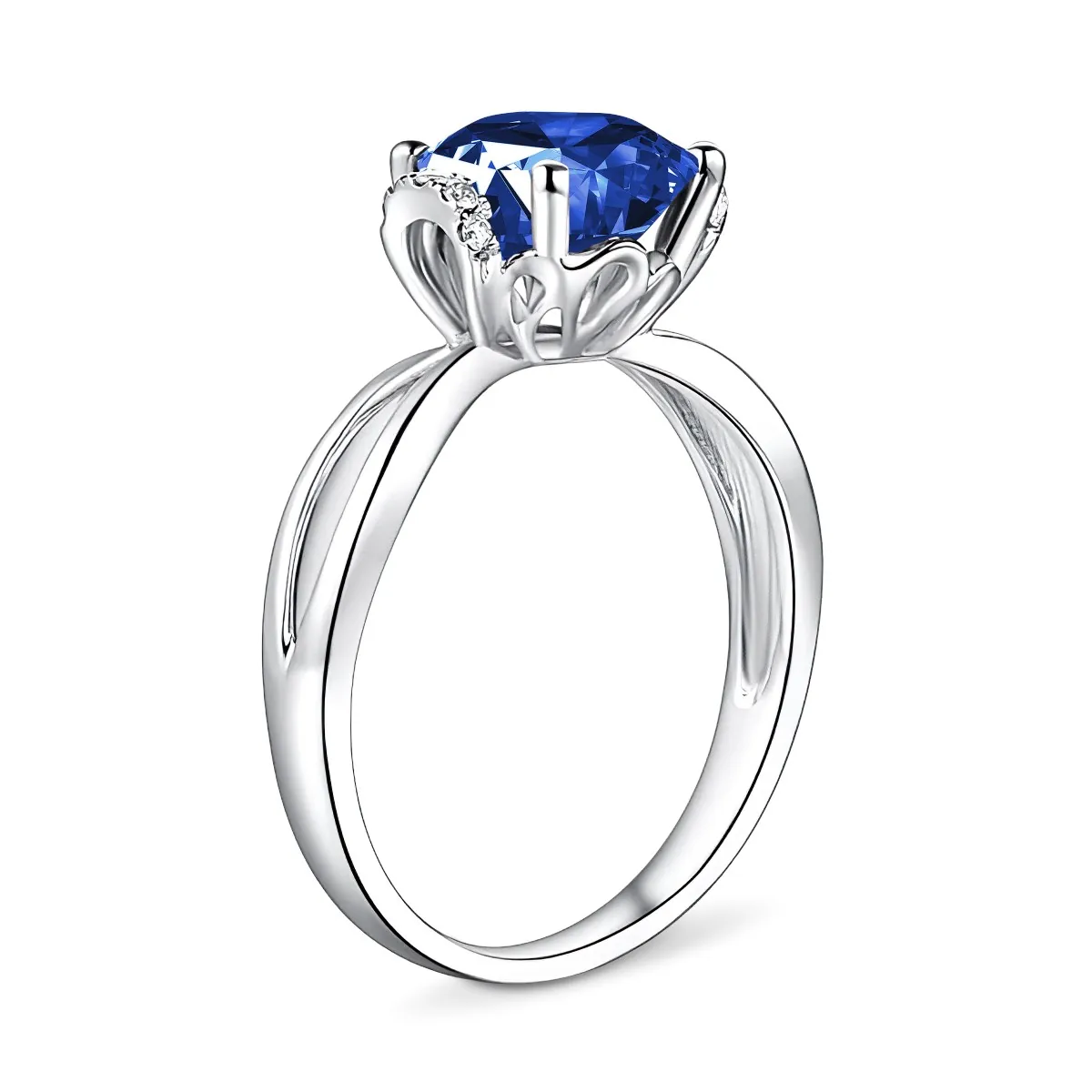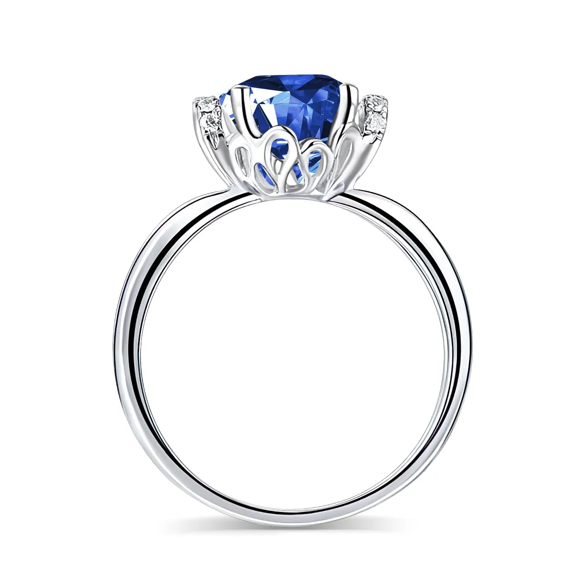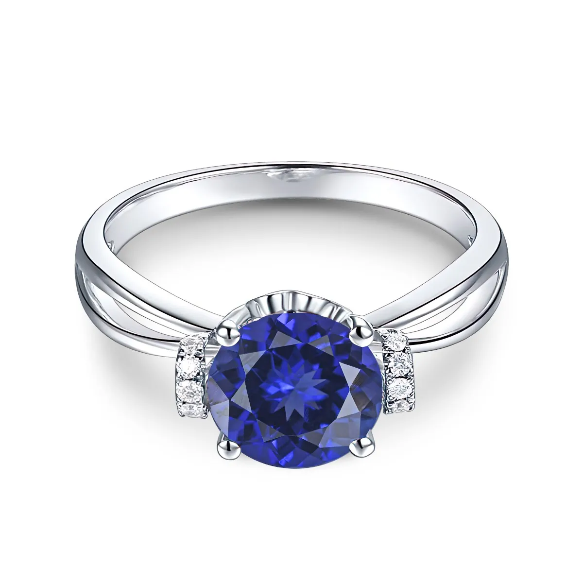 Oro blanco con Zafiro azul y Diamantes naturales