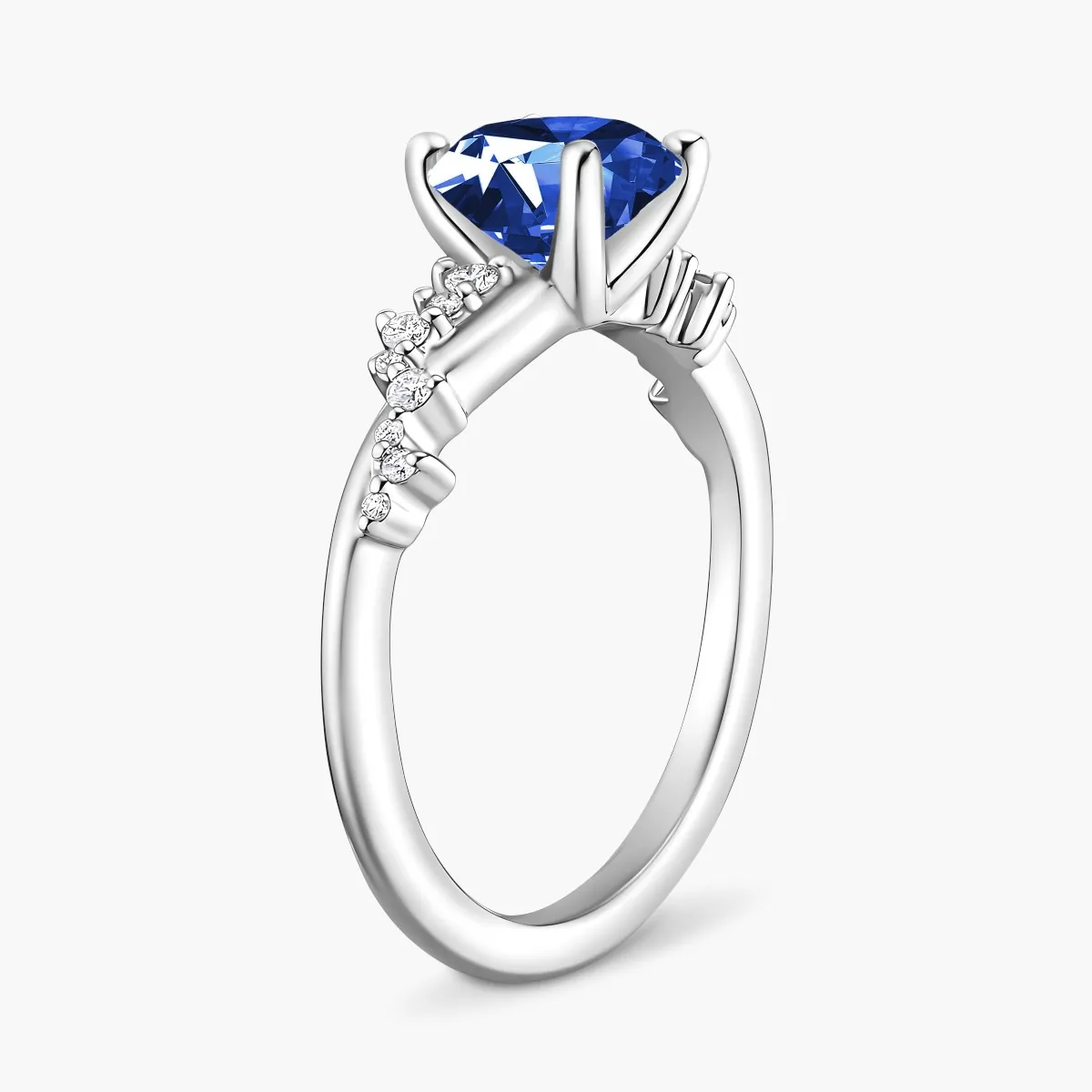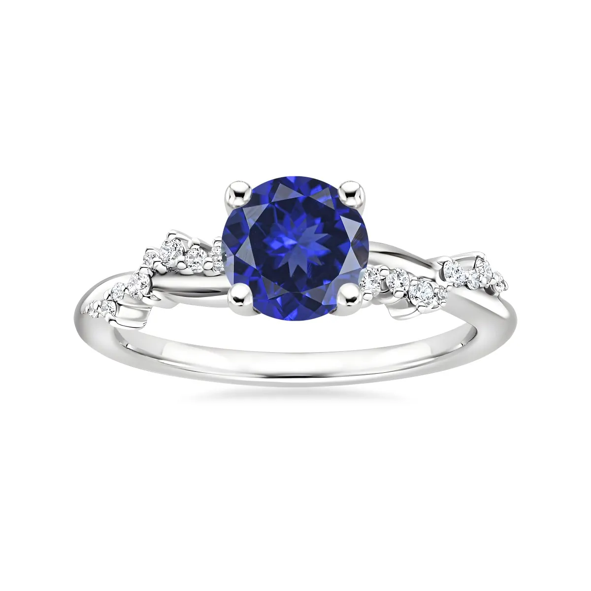 Oro blanco con Zafiro azul, Diamantes naturales y
