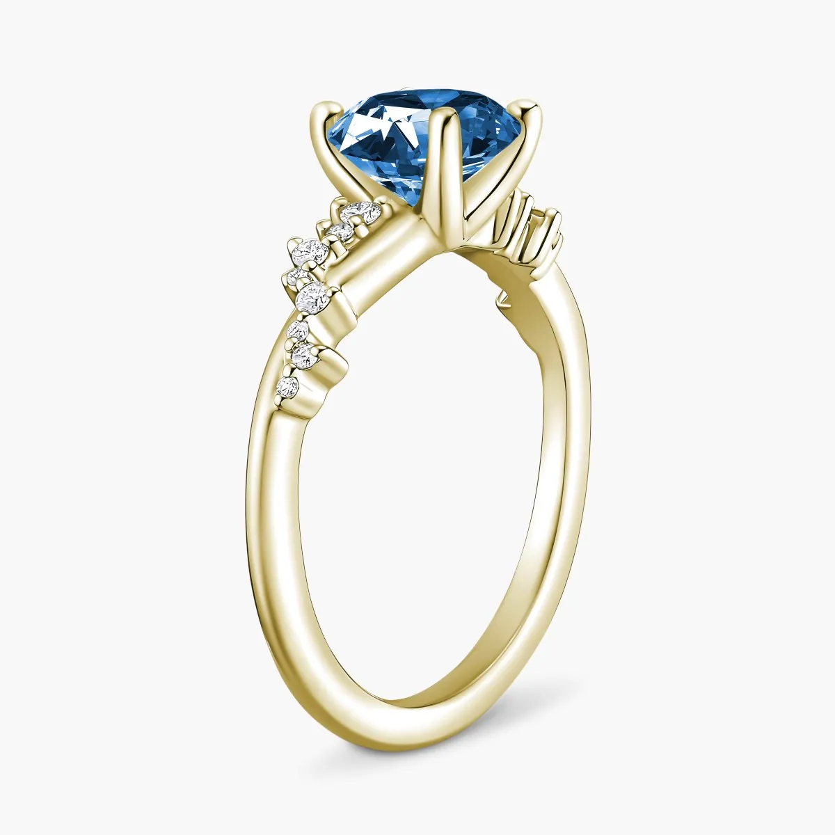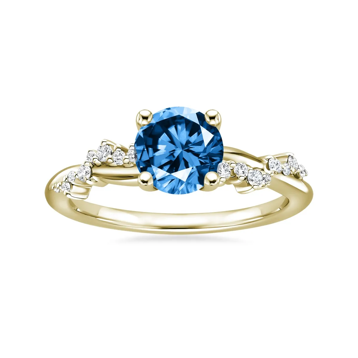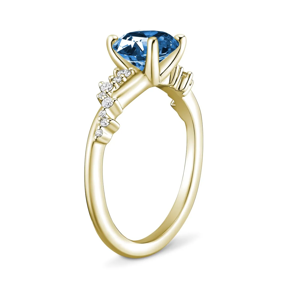 Oro amarillo con Topacio azul, Diamantes naturales y