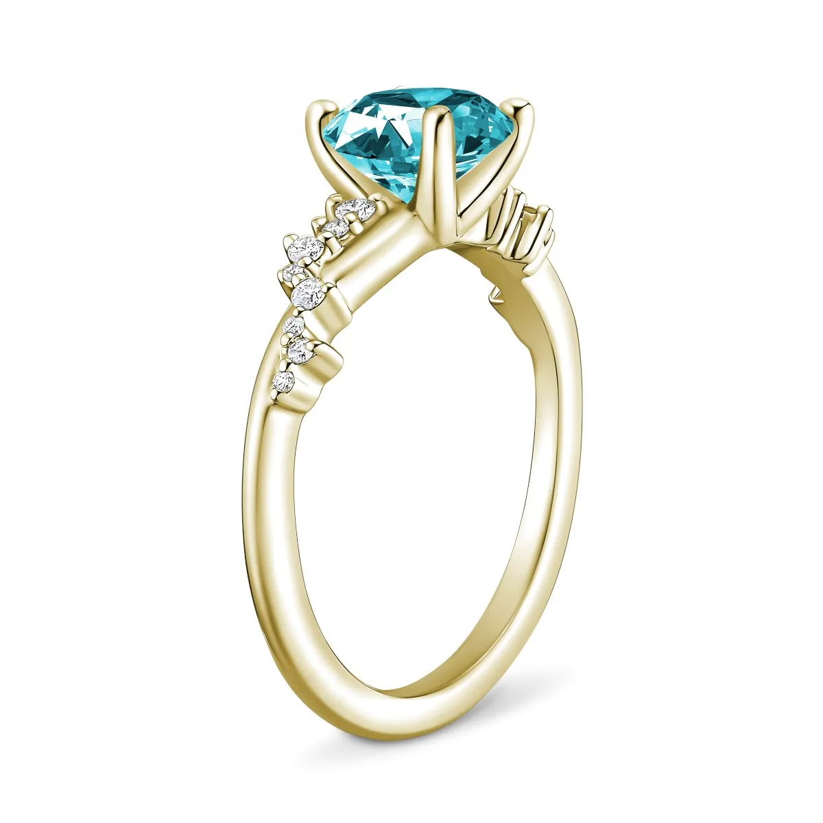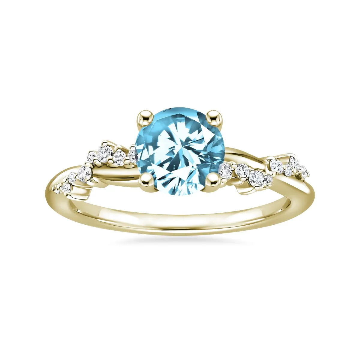 Oro amarillo con Topacio celeste, Diamantes naturales y