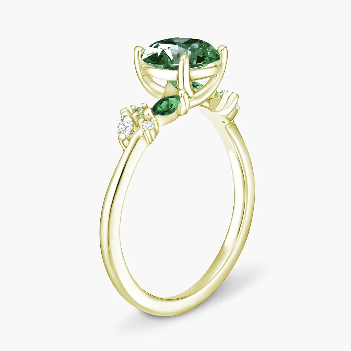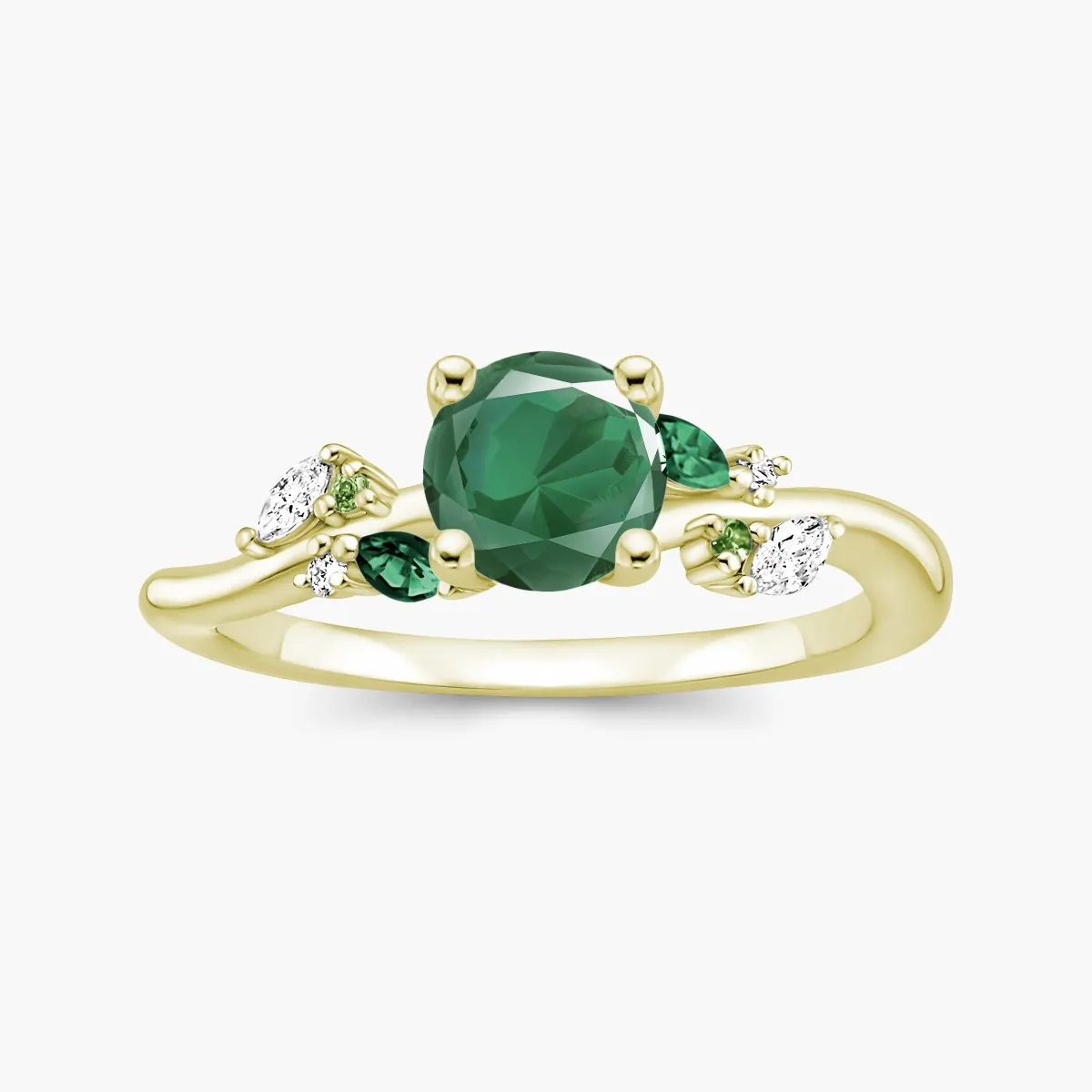 Oro amarillo con Esmeralda, Diamantes naturales y