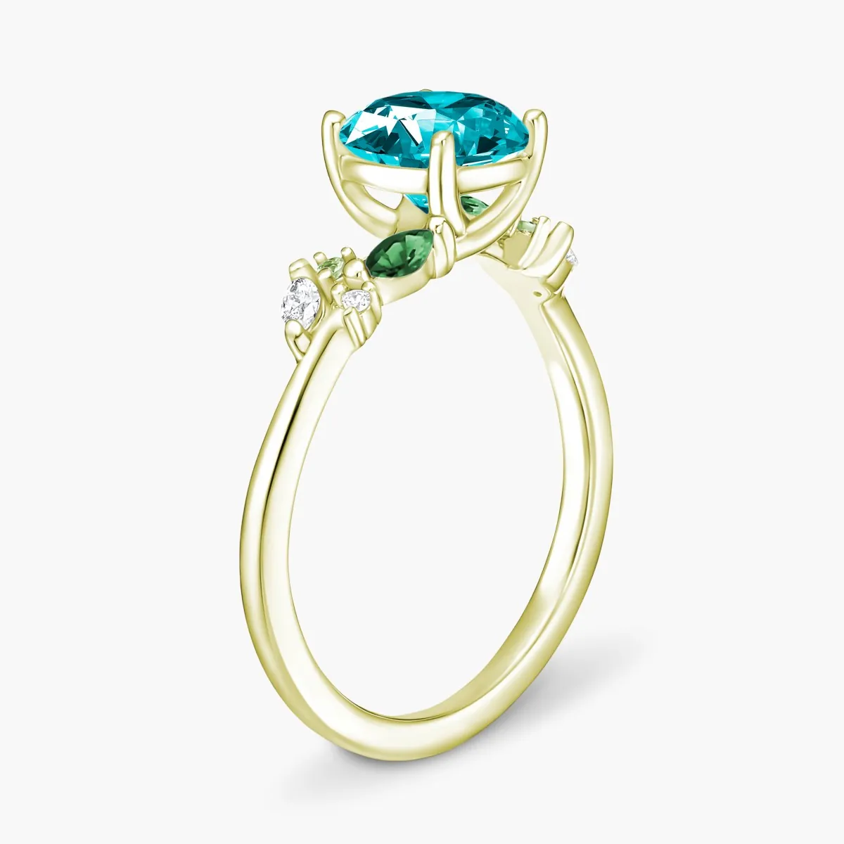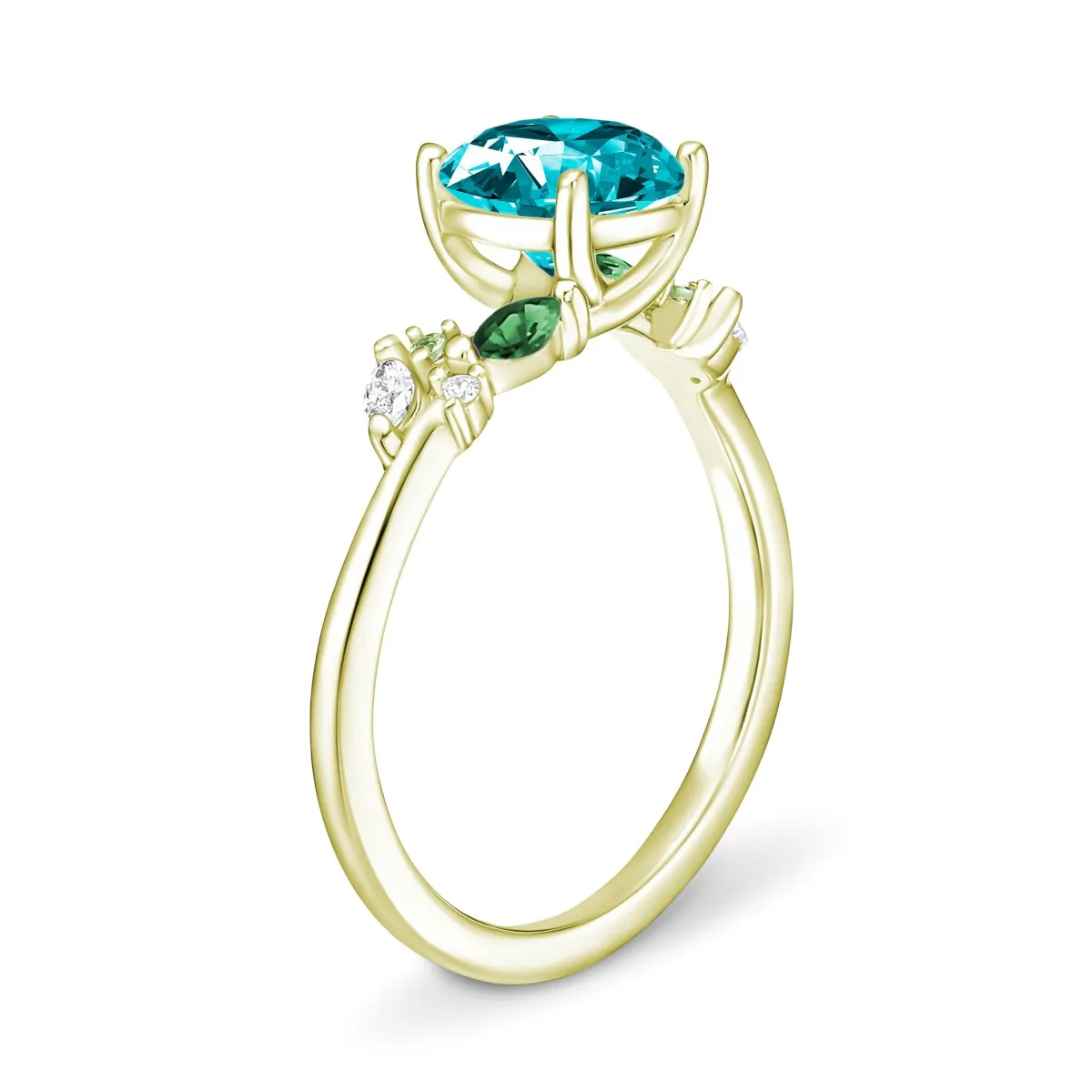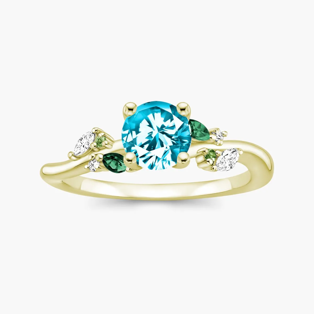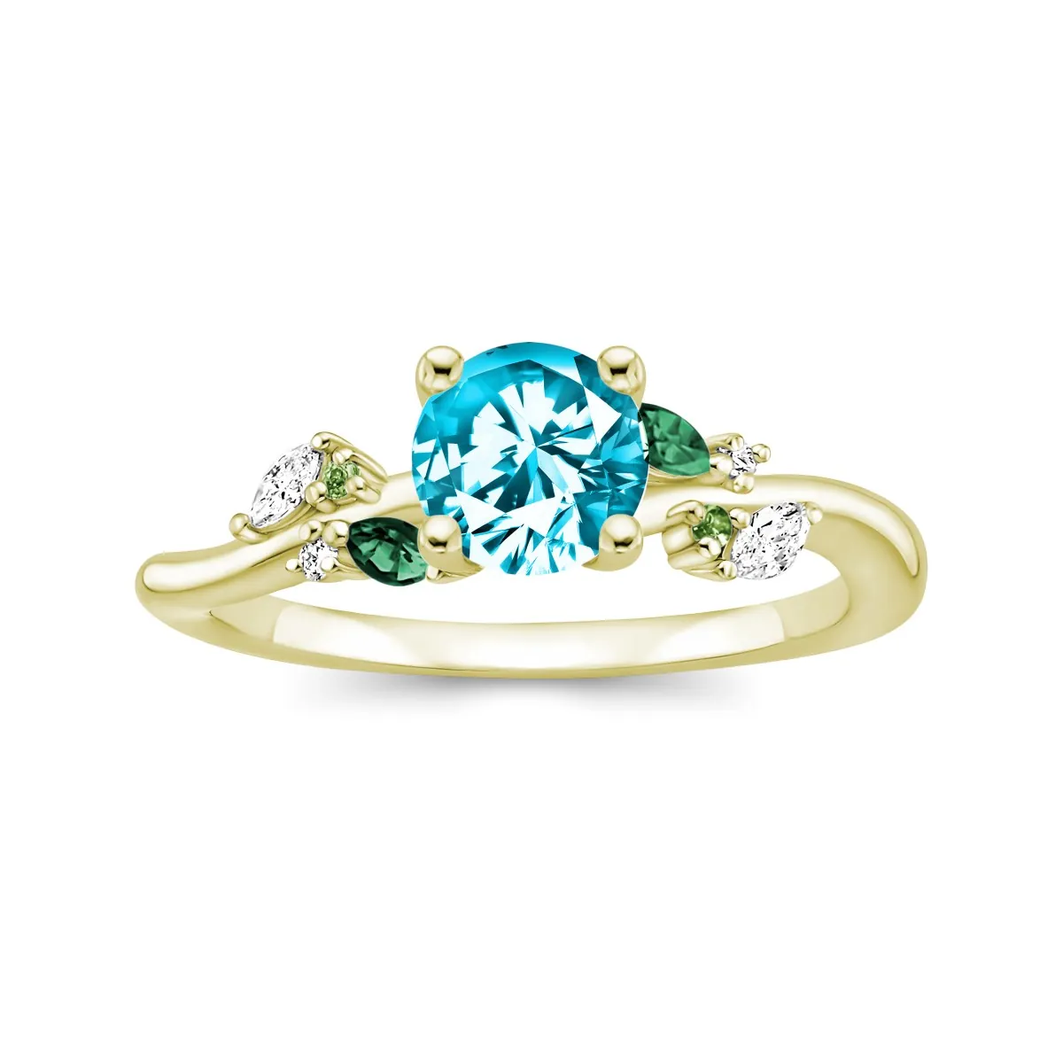Oro amarillo con Topacio celeste, Diamantes naturales y