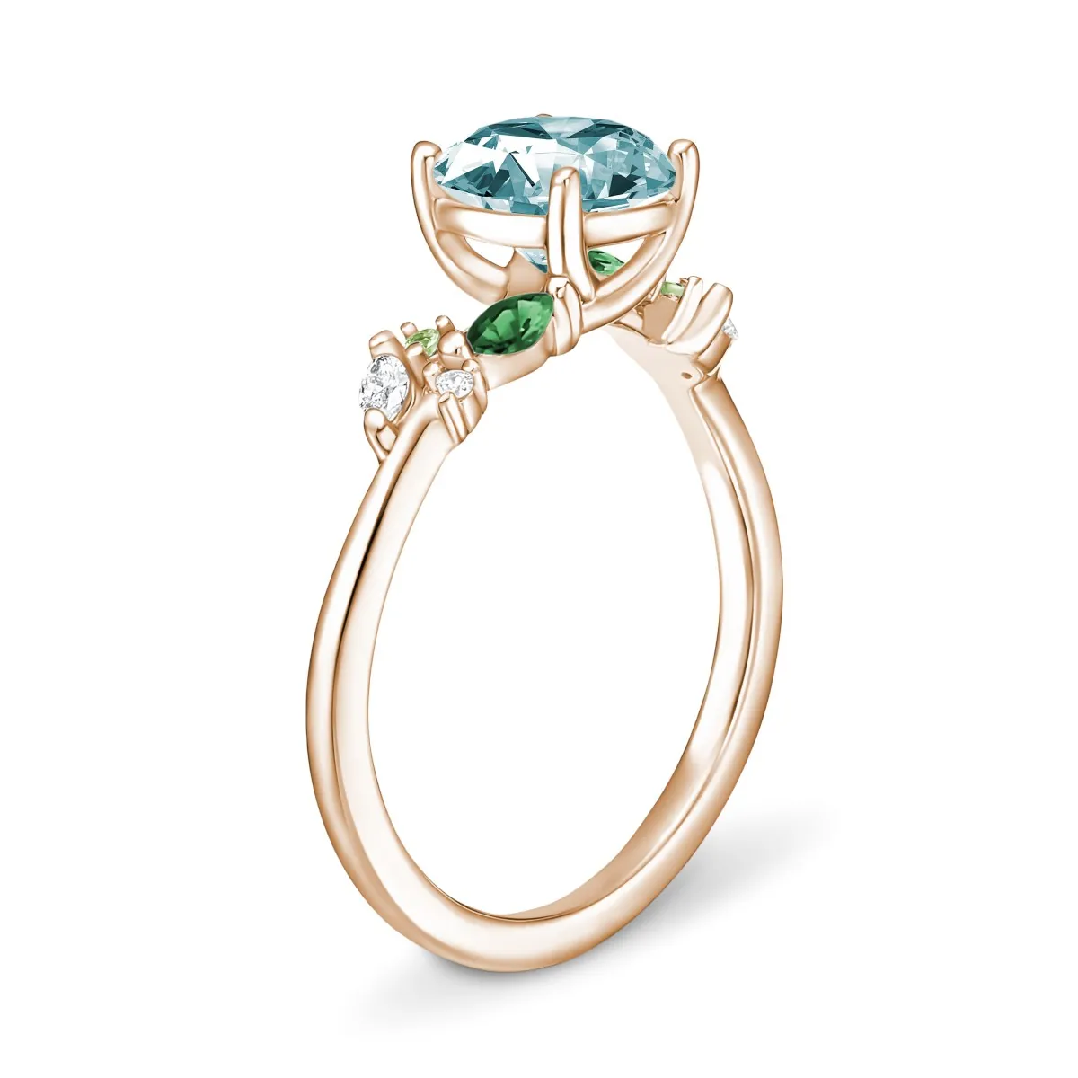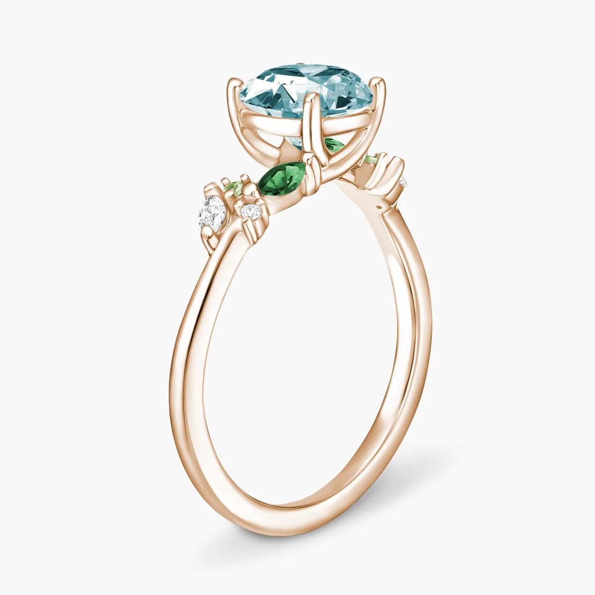 Oro rosa con Aguamarina, Diamantes naturales y