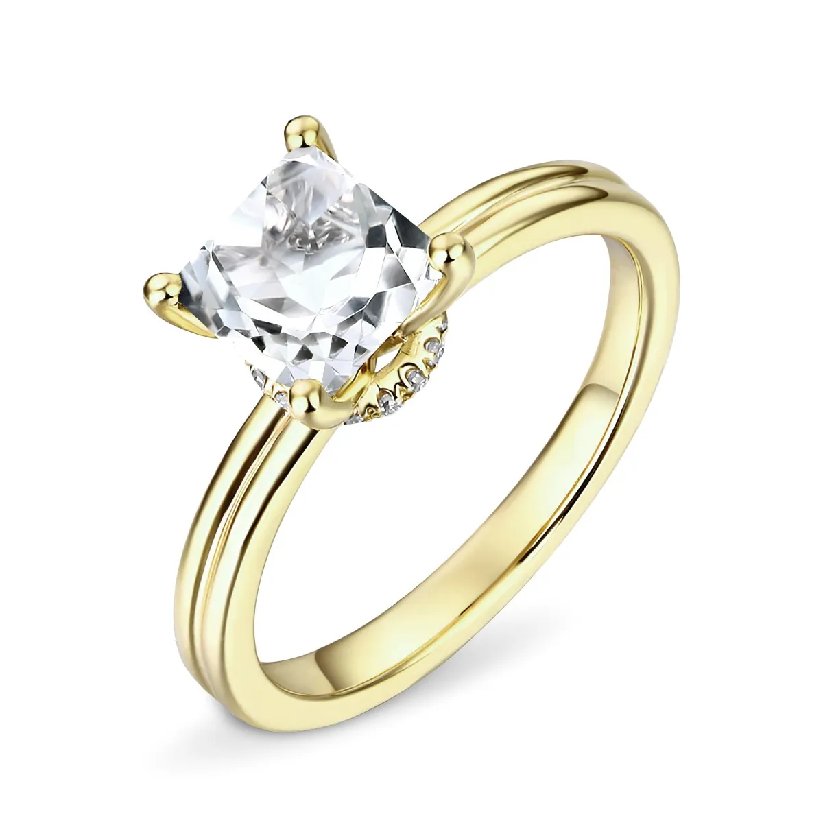 Oro amarillo con Topacio blanco y Diamantes naturales