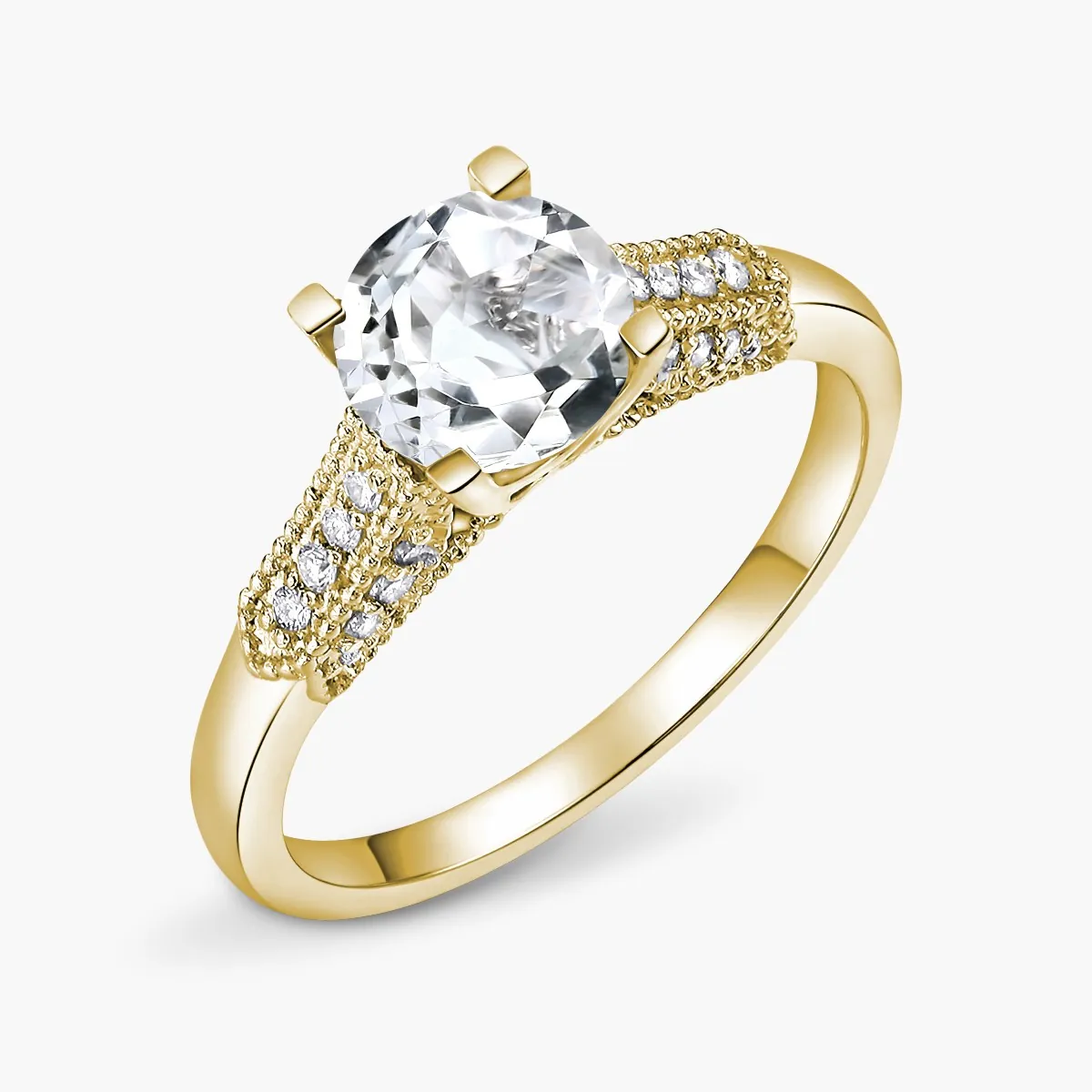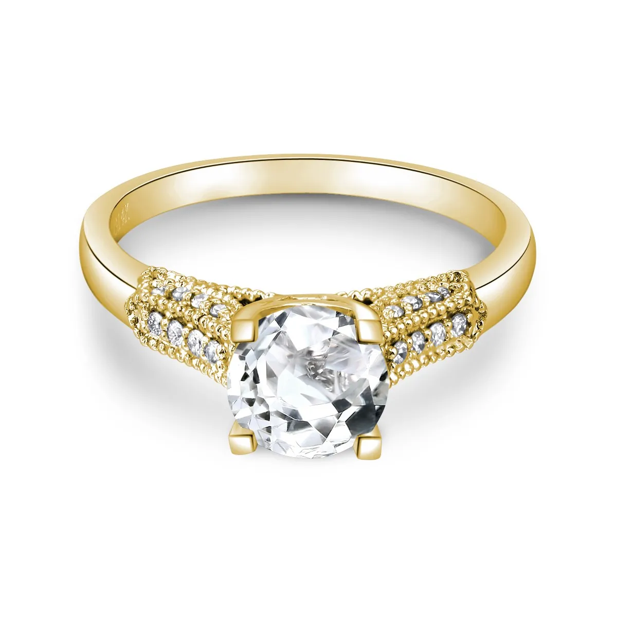 Oro amarillo con Topacio blanco y Diamantes naturales