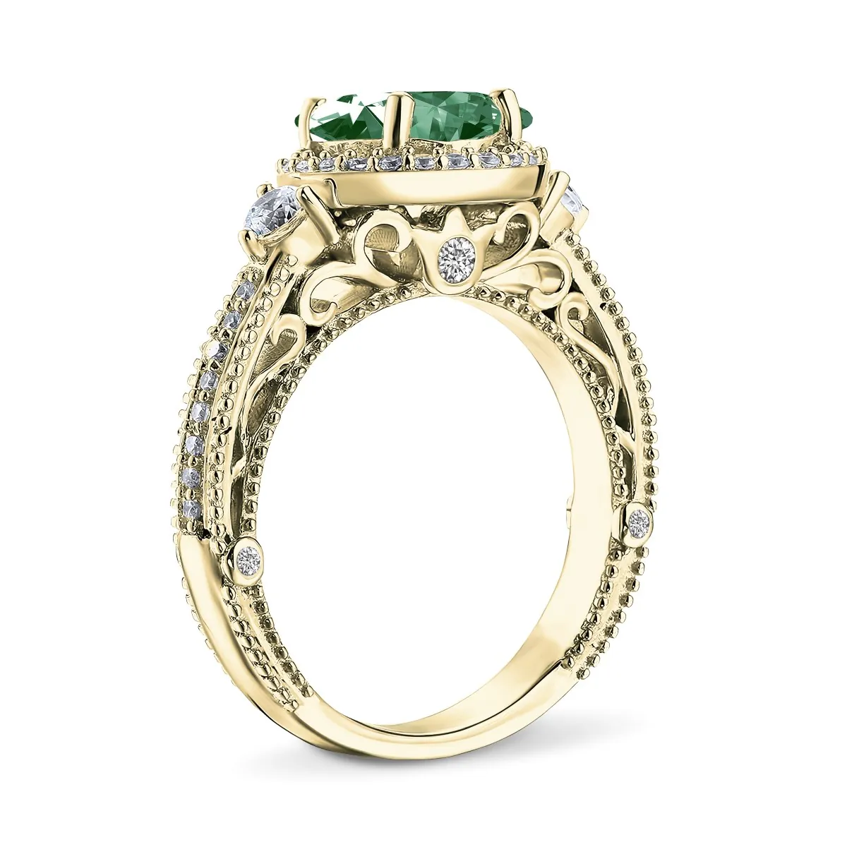 Oro amarillo con Esmeralda, Diamantes naturales y