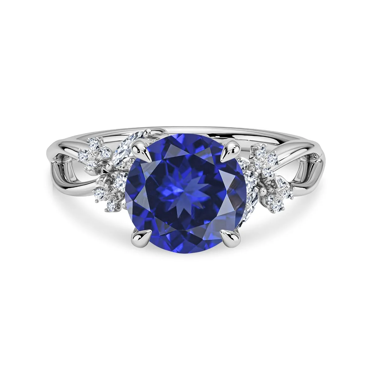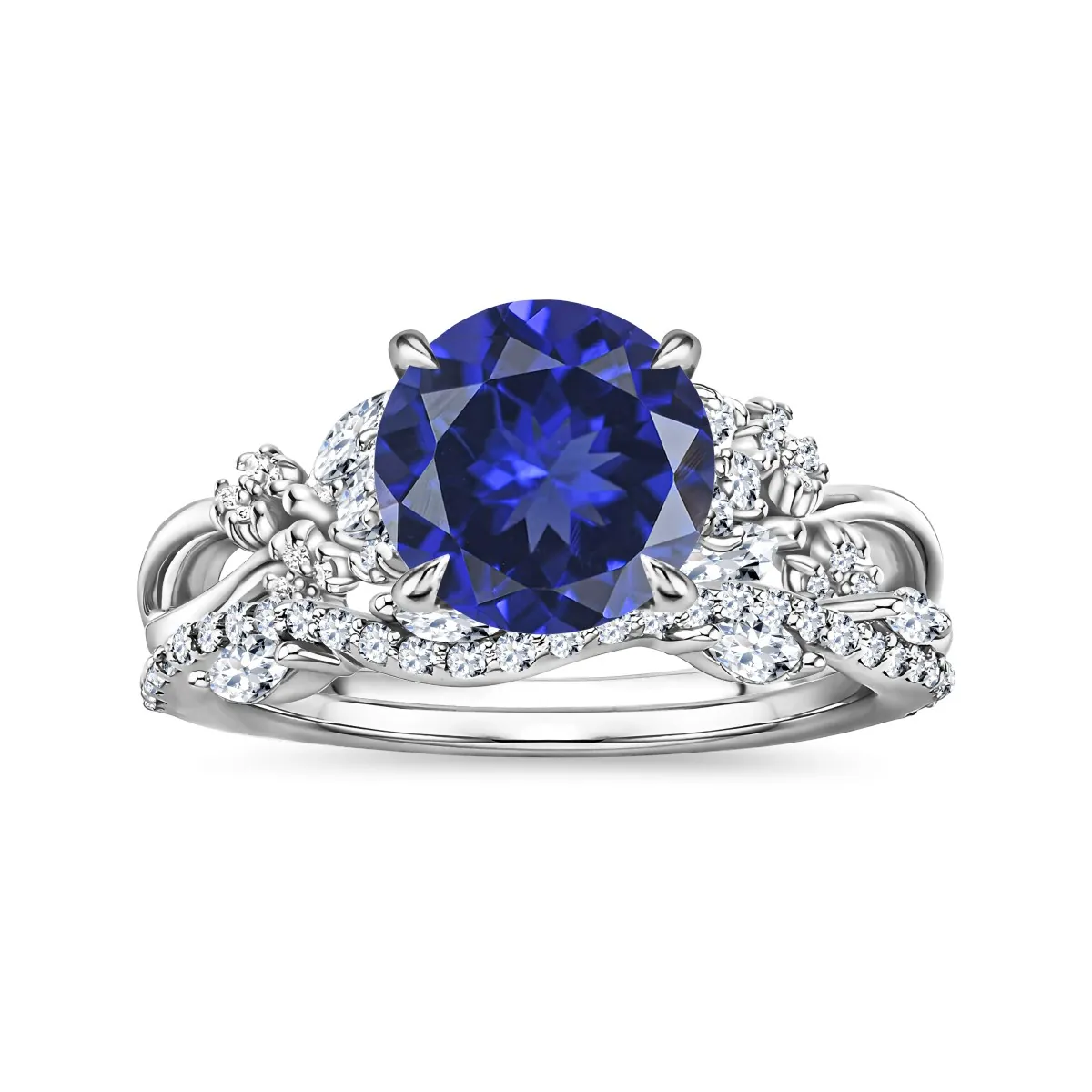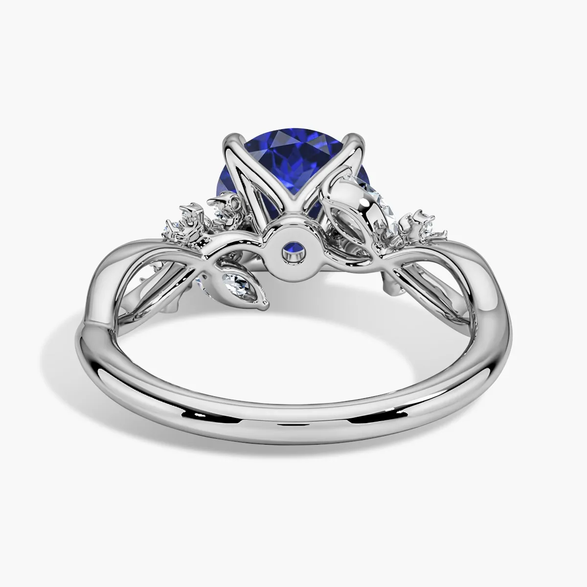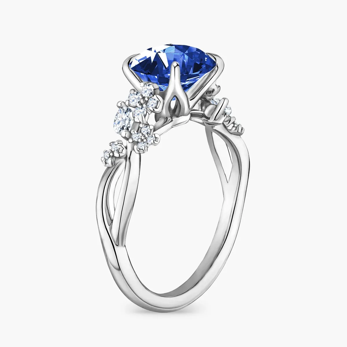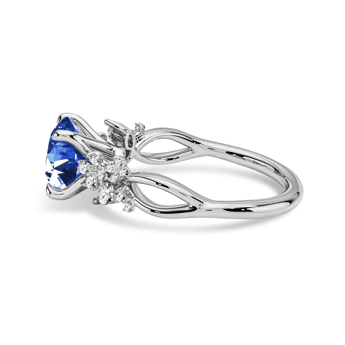 Oro blanco con Zafiro azul y Diamantes naturales blancos