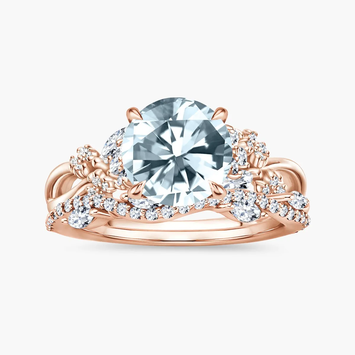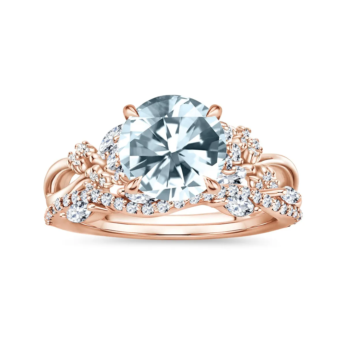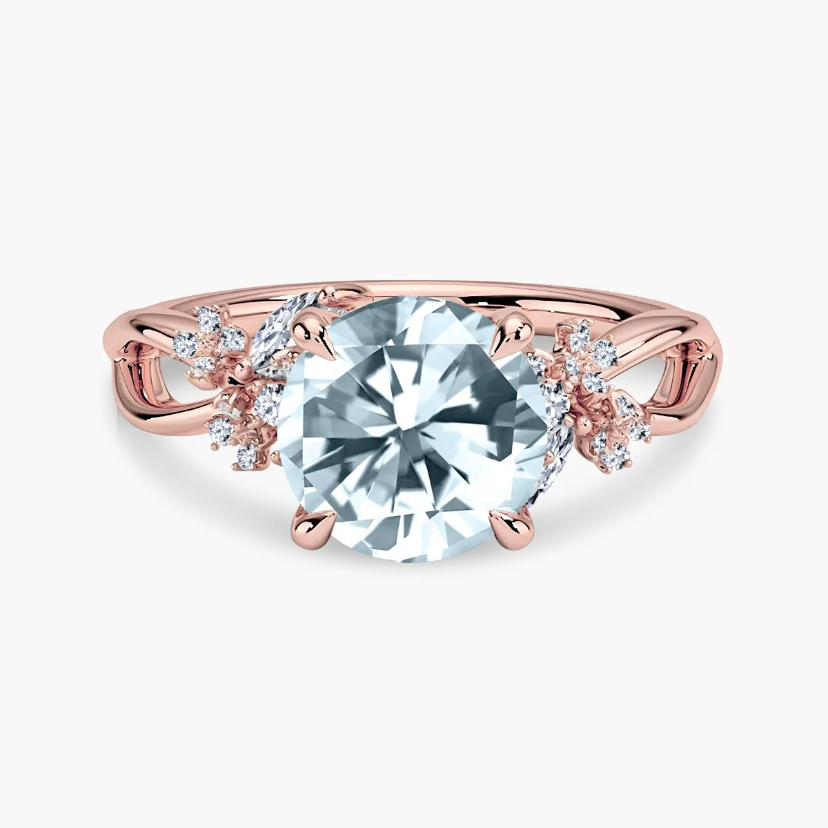 Oro rosa con Aguamarina y Diamantes naturales blancos