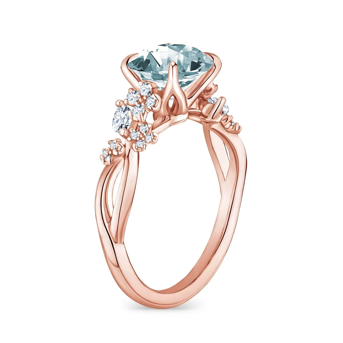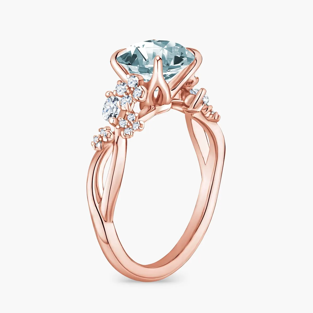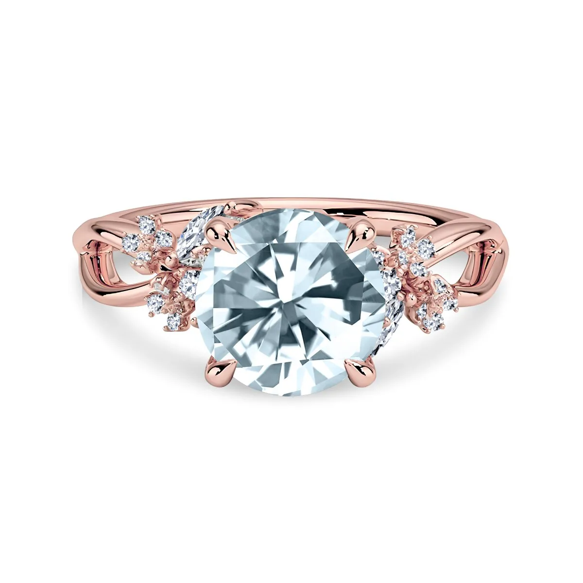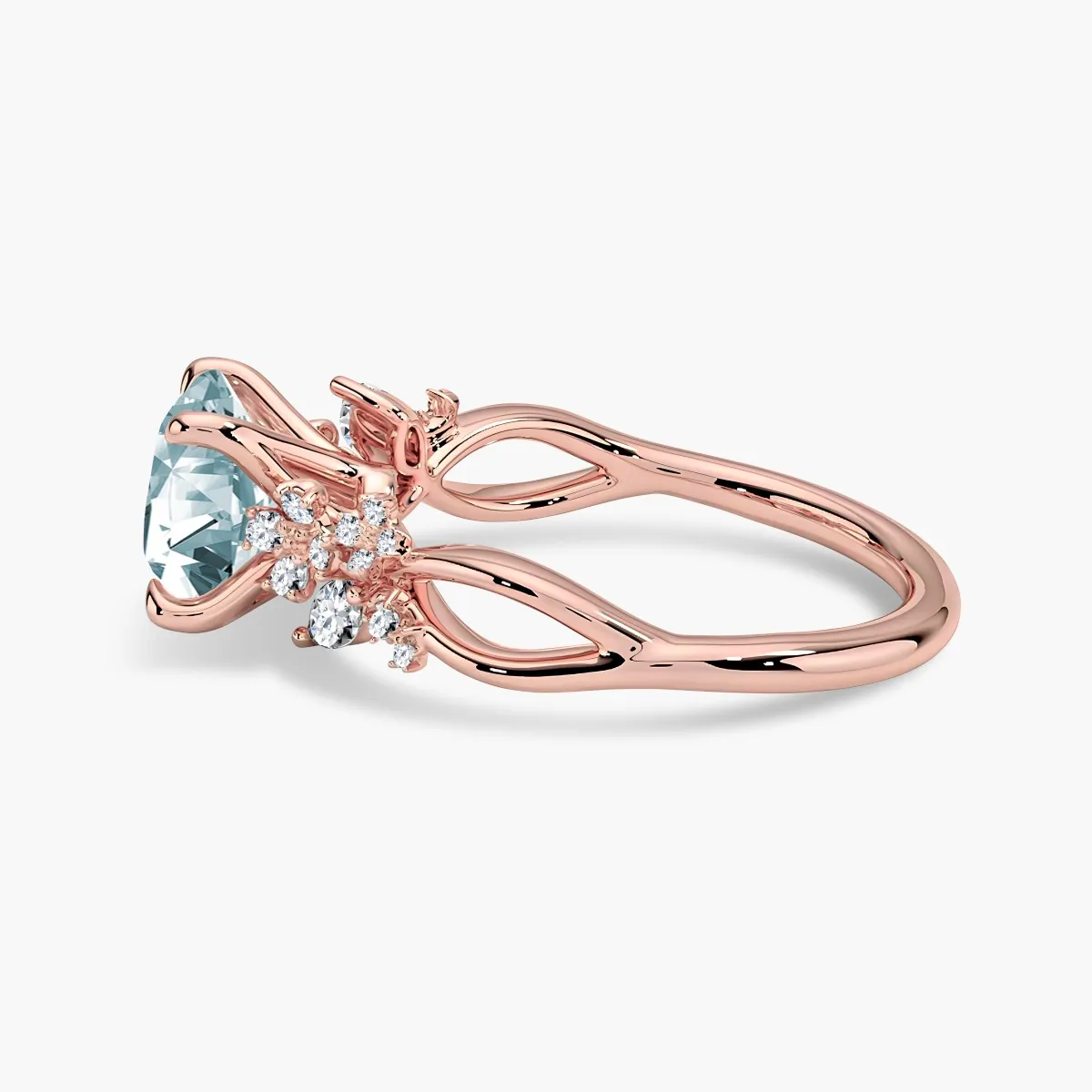 Oro rosa con Aguamarina y Diamantes naturales blancos