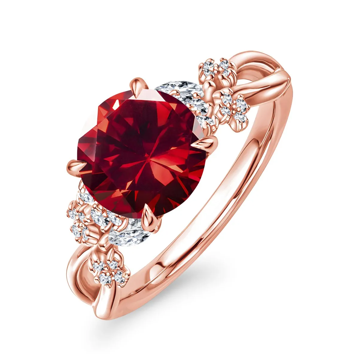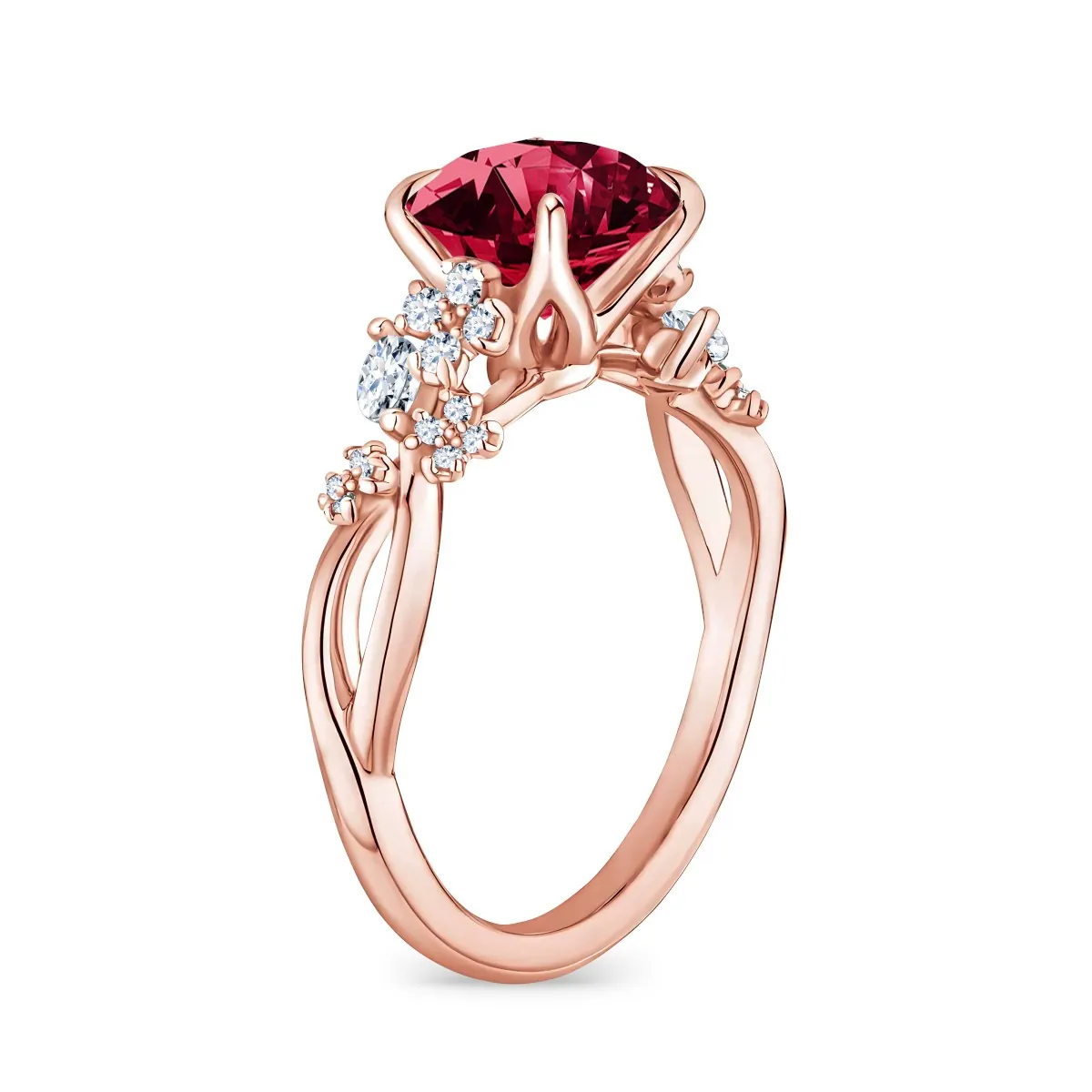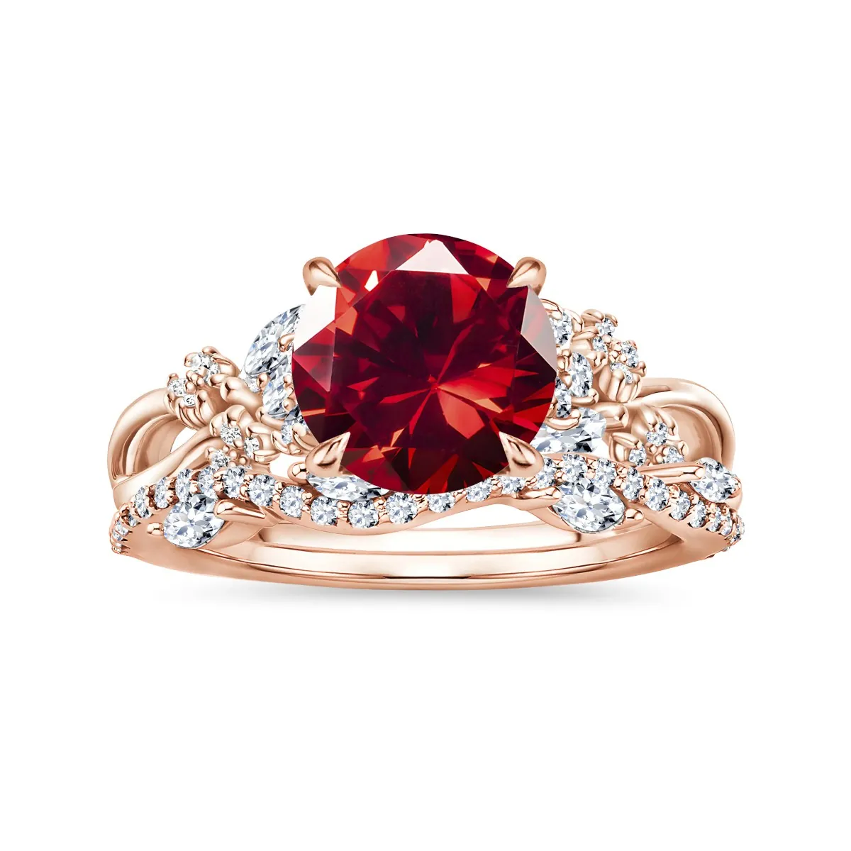 Oro rosa con Rubí y Diamantes naturales blancos