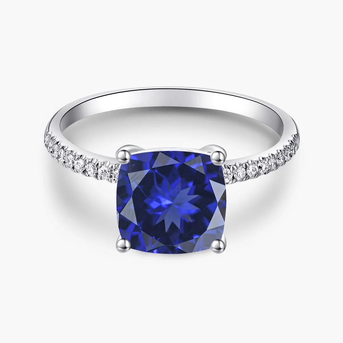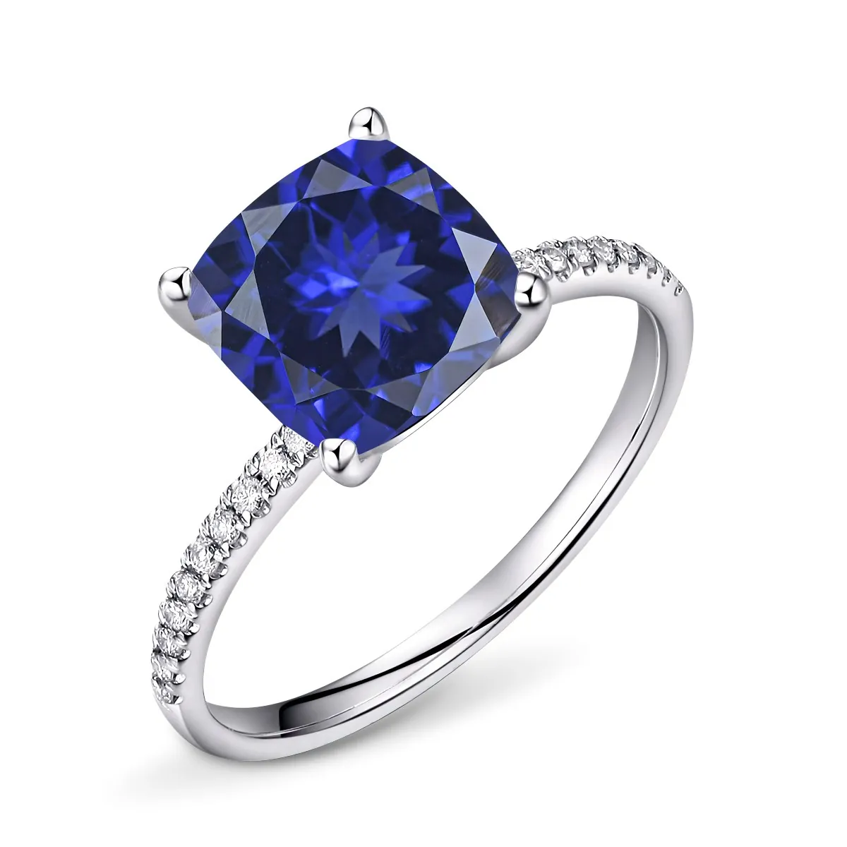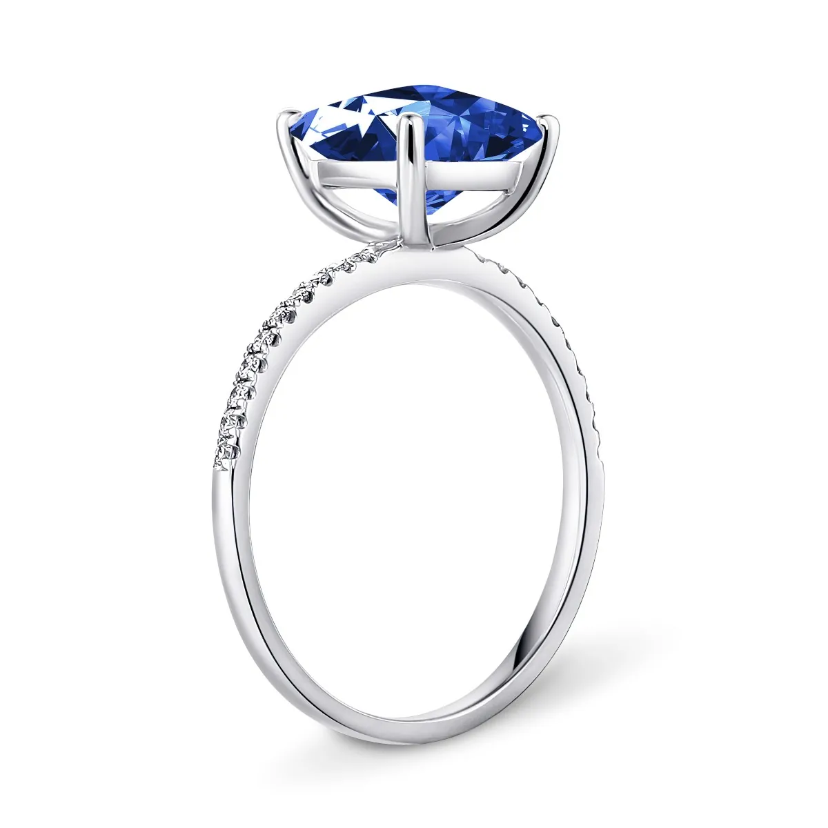 Oro blanco con Zafiro azul y Diamantes naturales