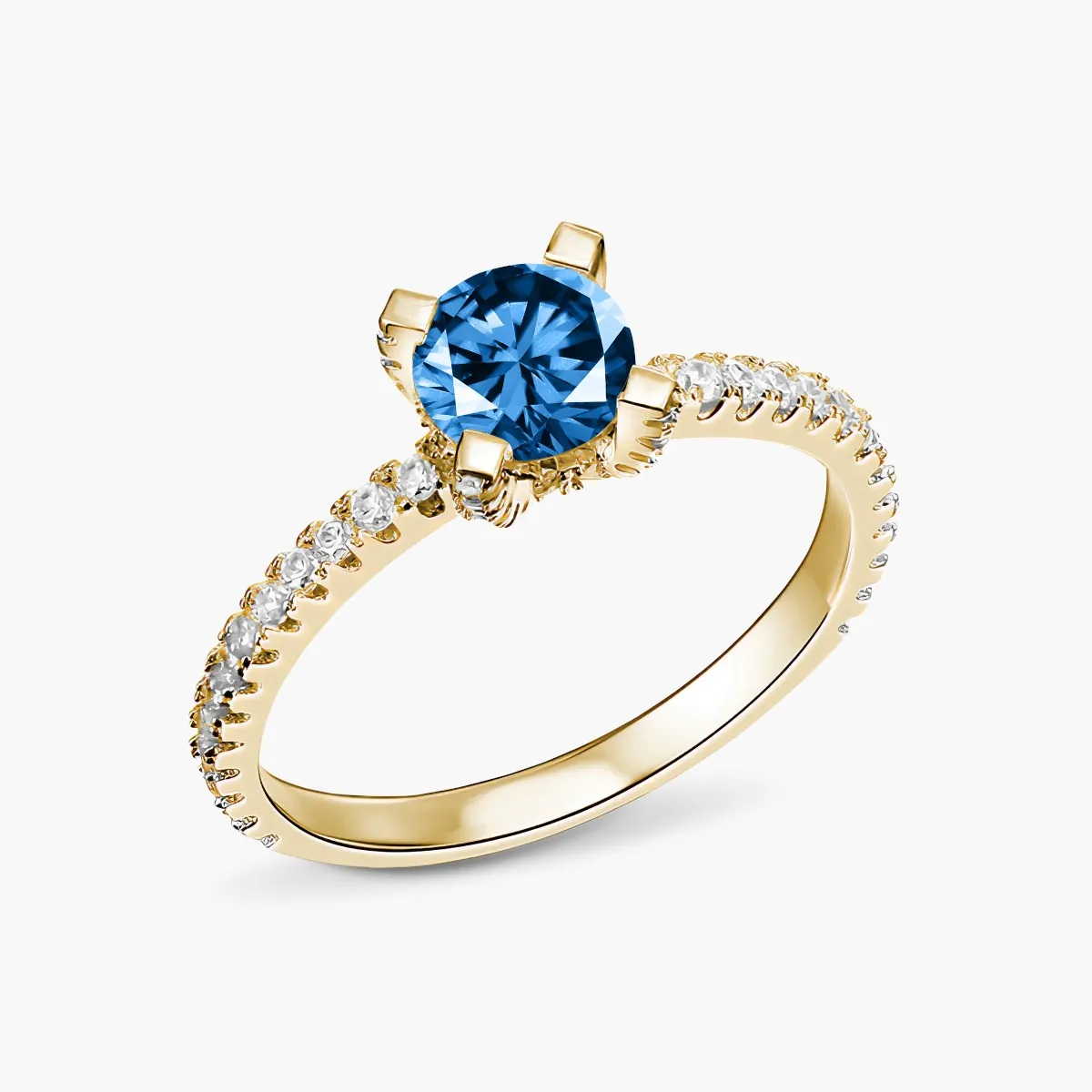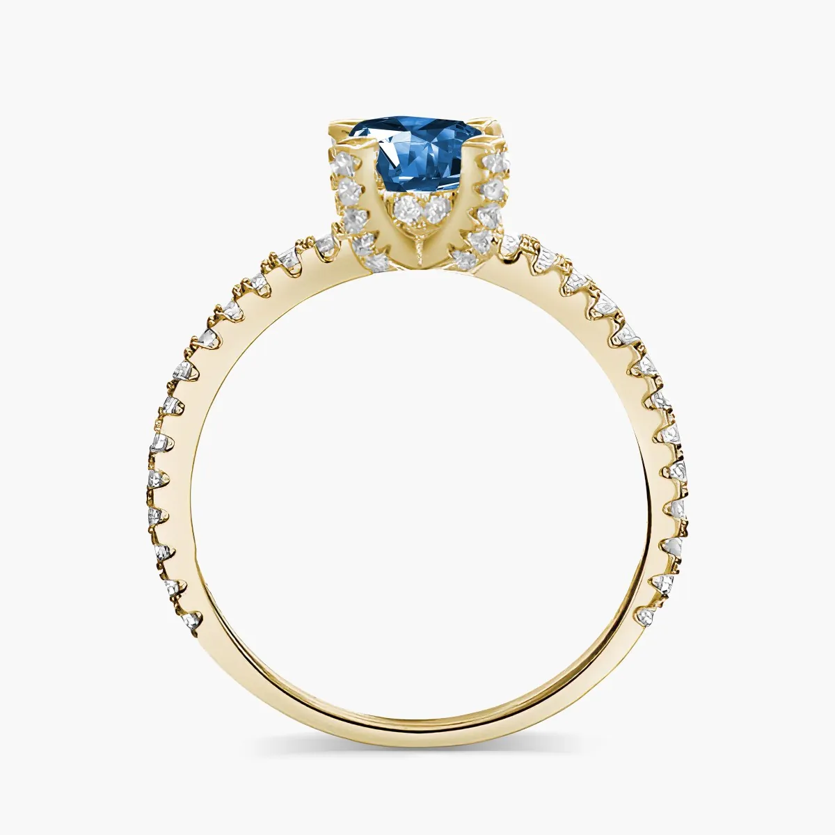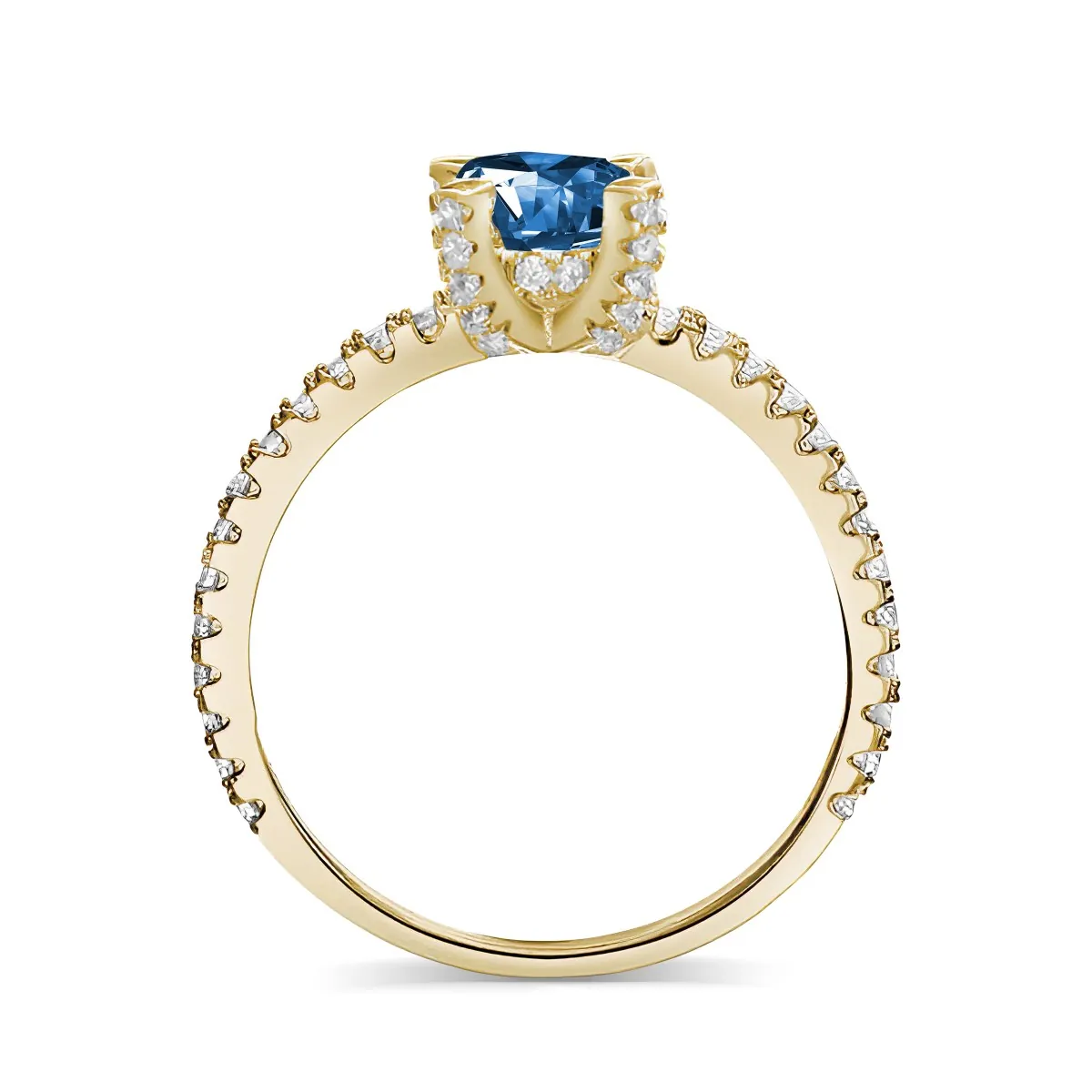 Oro amarillo con Topacio azul y Diamantes naturales