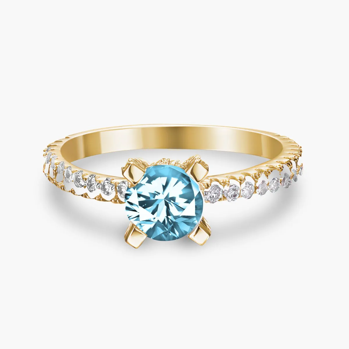 Oro amarillo con Topacio celeste y Diamantes naturales