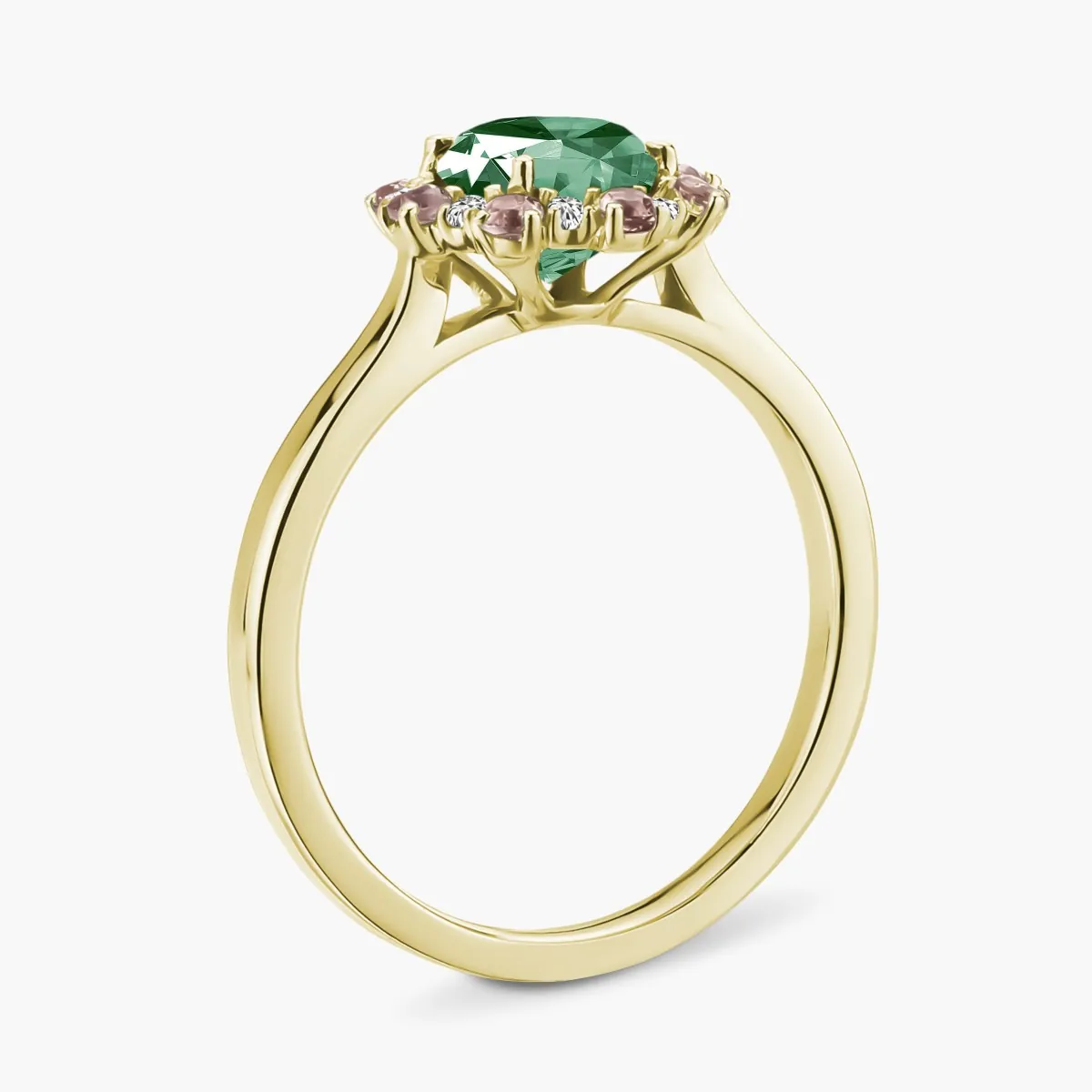 Oro amarillo con Esmeralda, Diamantes naturales y Turmalinas rosa
