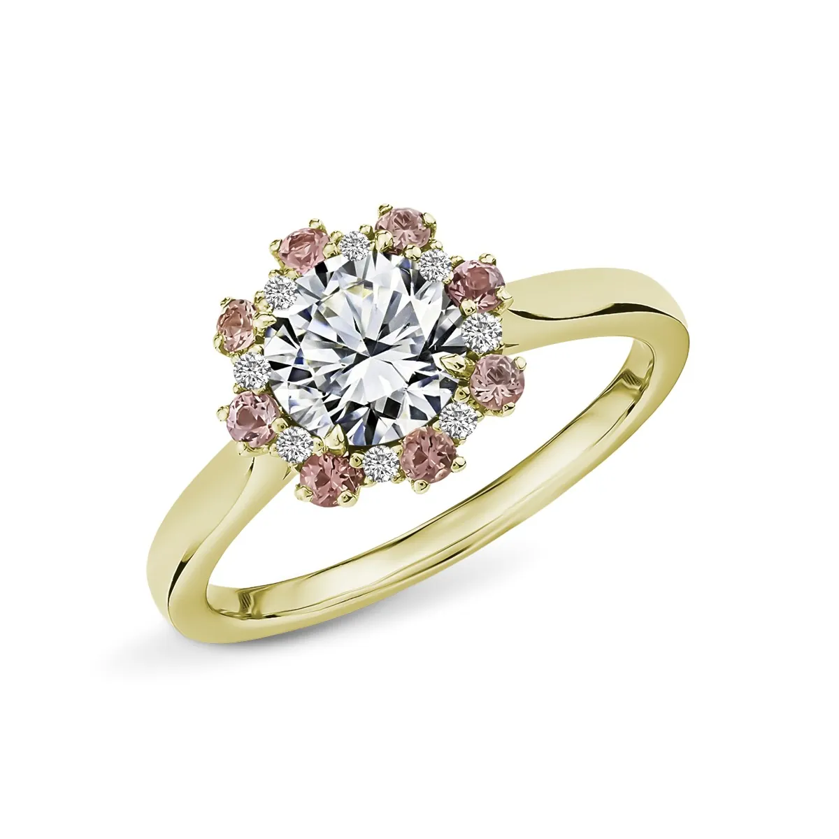 Oro amarillo con Diamantes naturales y Turmalinas rosa