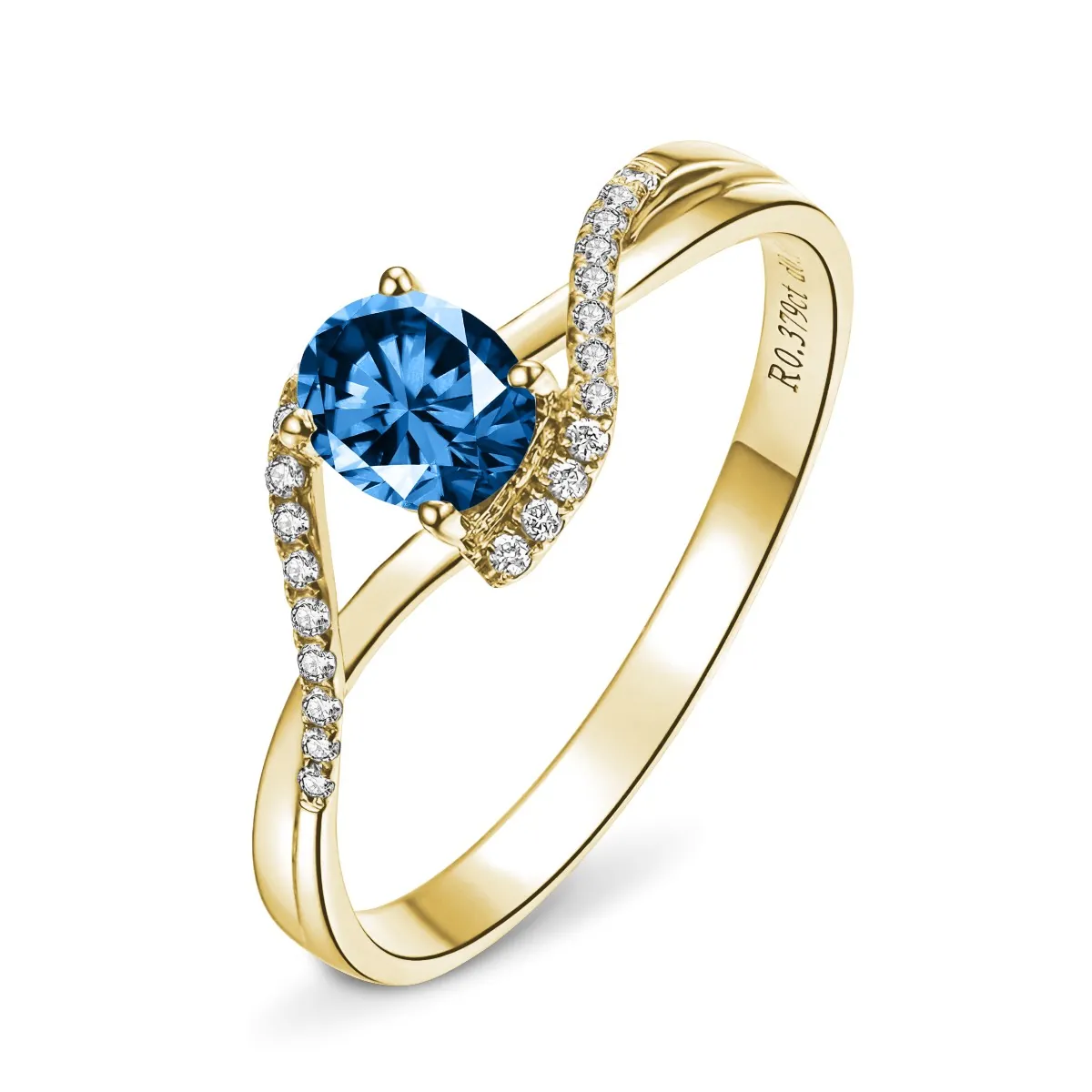 Oro amarillo con Topacio azul y Diamantes naturales