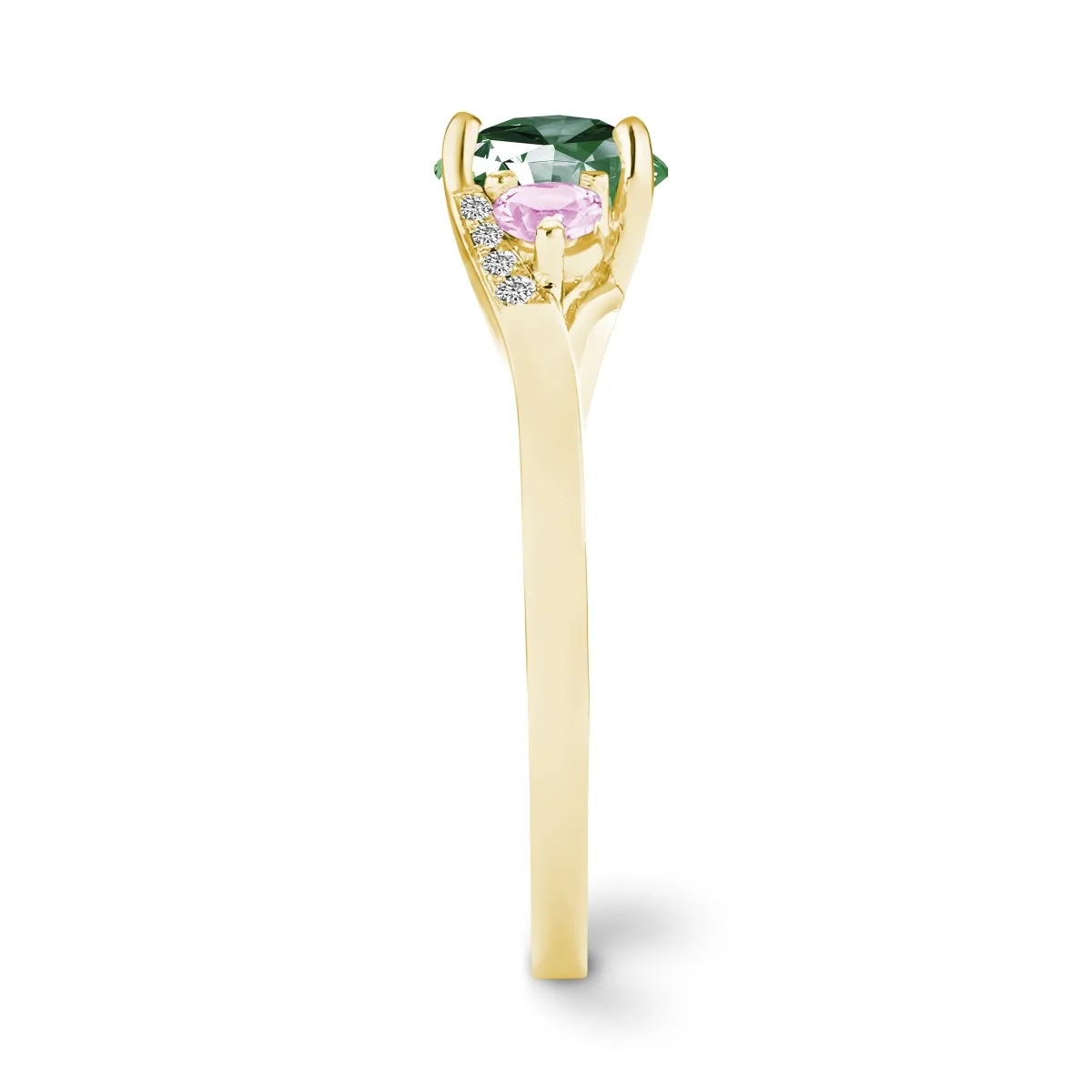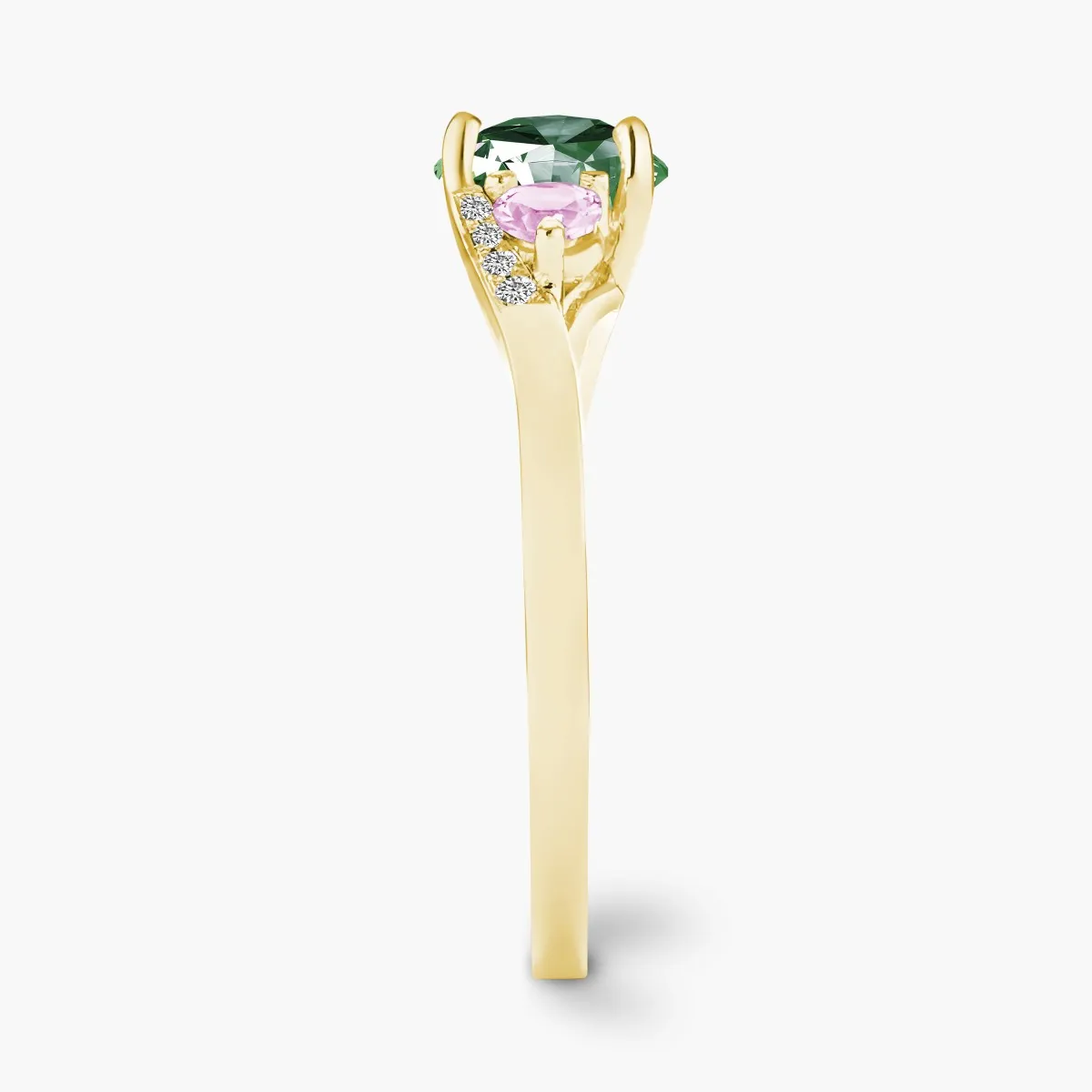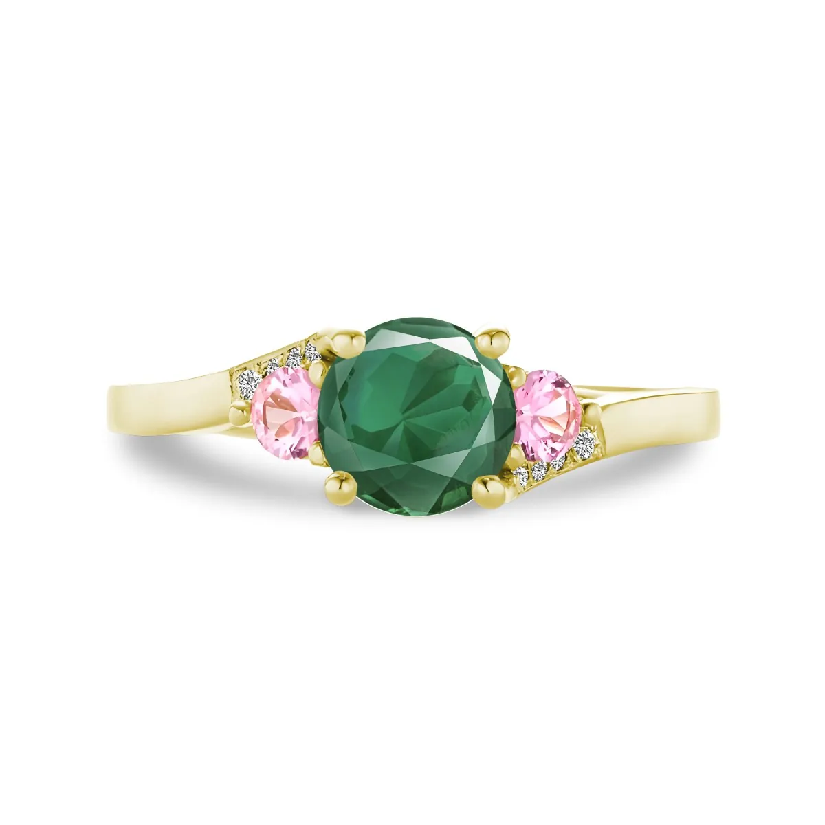 Oro amarillo con Esmeralda, Diamantes naturales y Zafiros color rosa