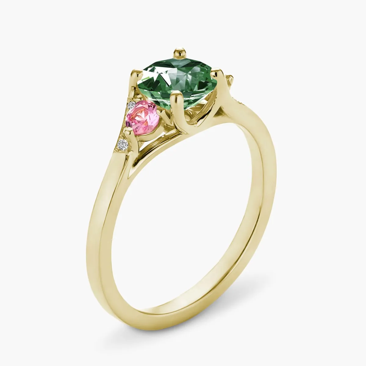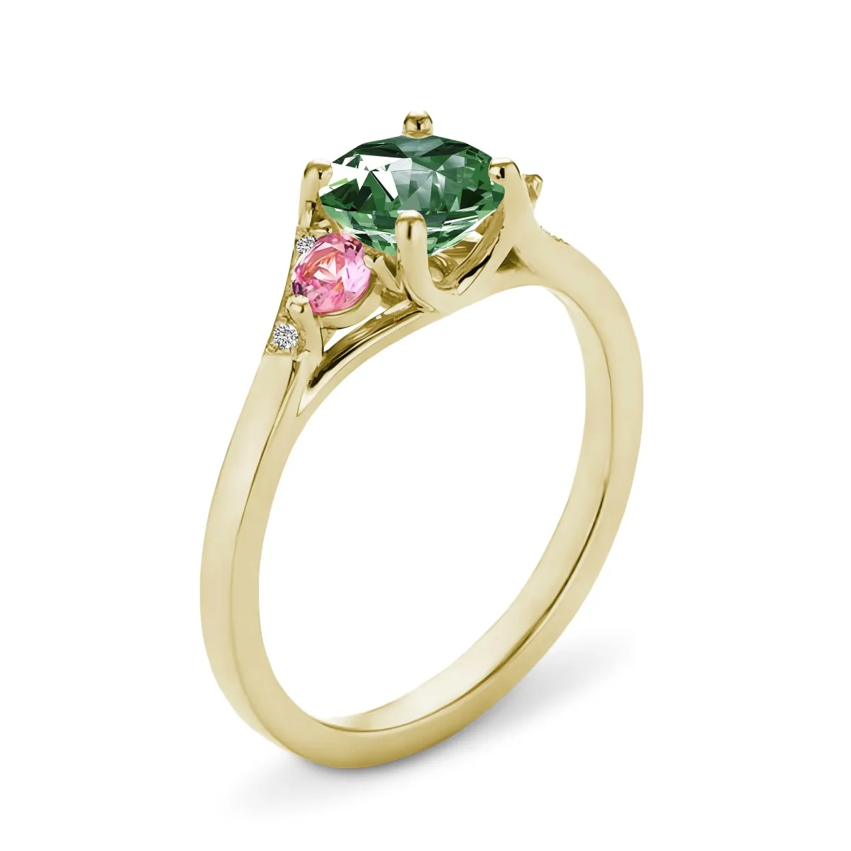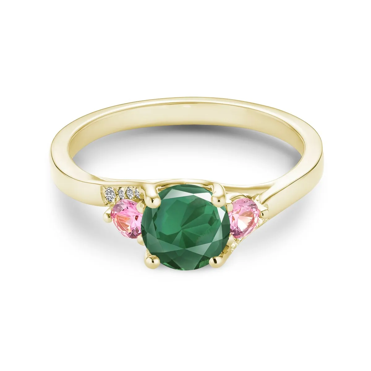 Oro amarillo con Esmeralda, Diamantes naturales y Zafiros color rosa