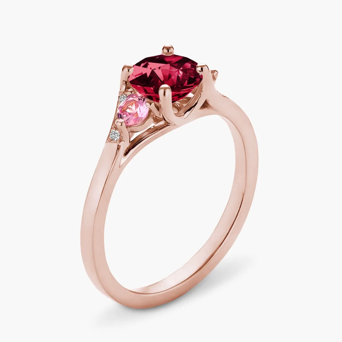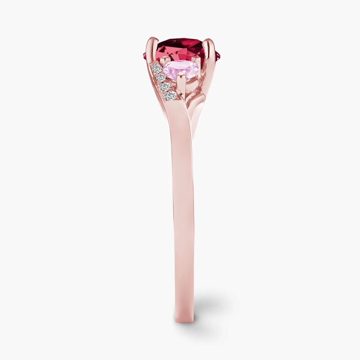 Oro rosa con Rubí, Diamantes naturales y Zafiros color rosa