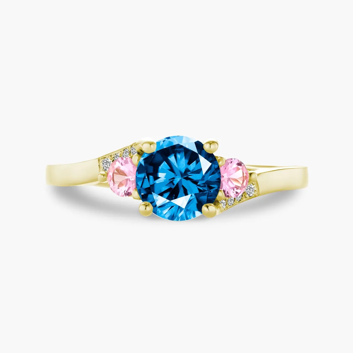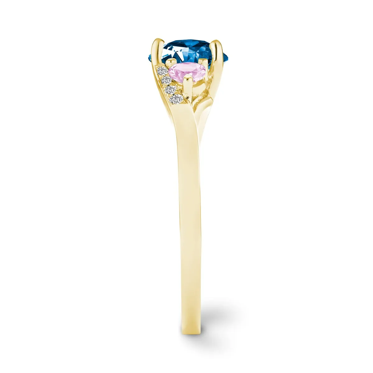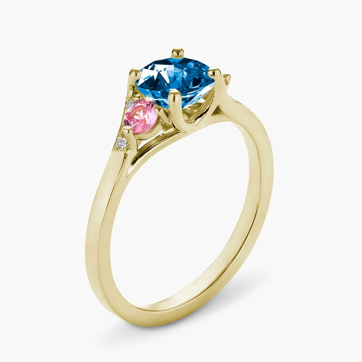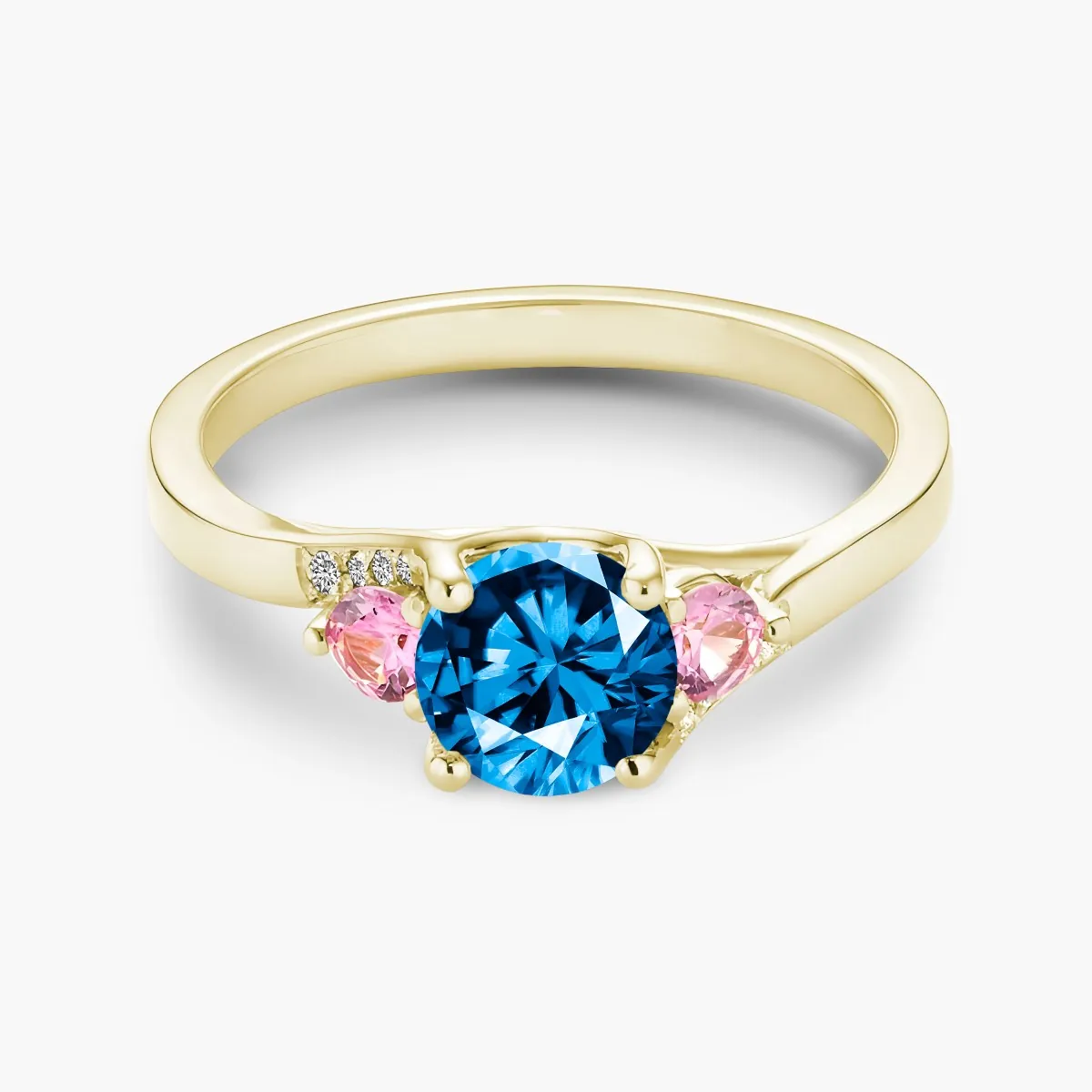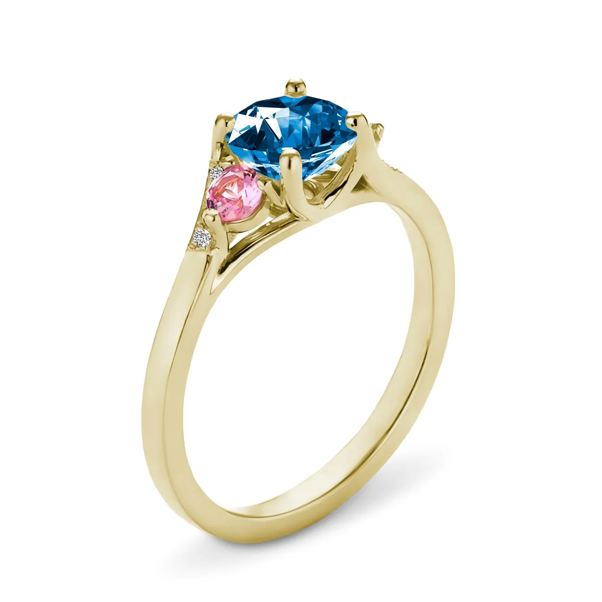 Oro amarillo con Topacio azul, Diamantes naturales y Zafiros color rosa
