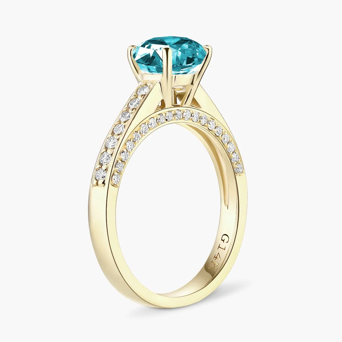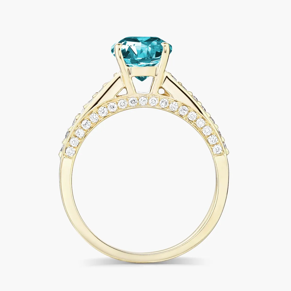 Oro amarillo con Topacio celeste y Diamantes naturales