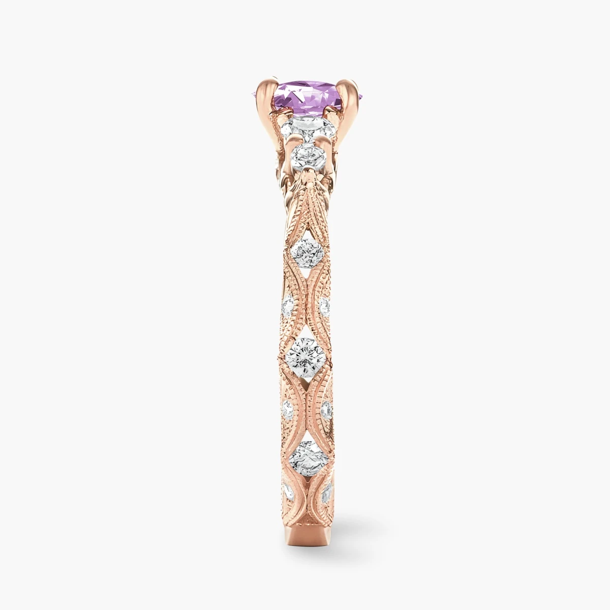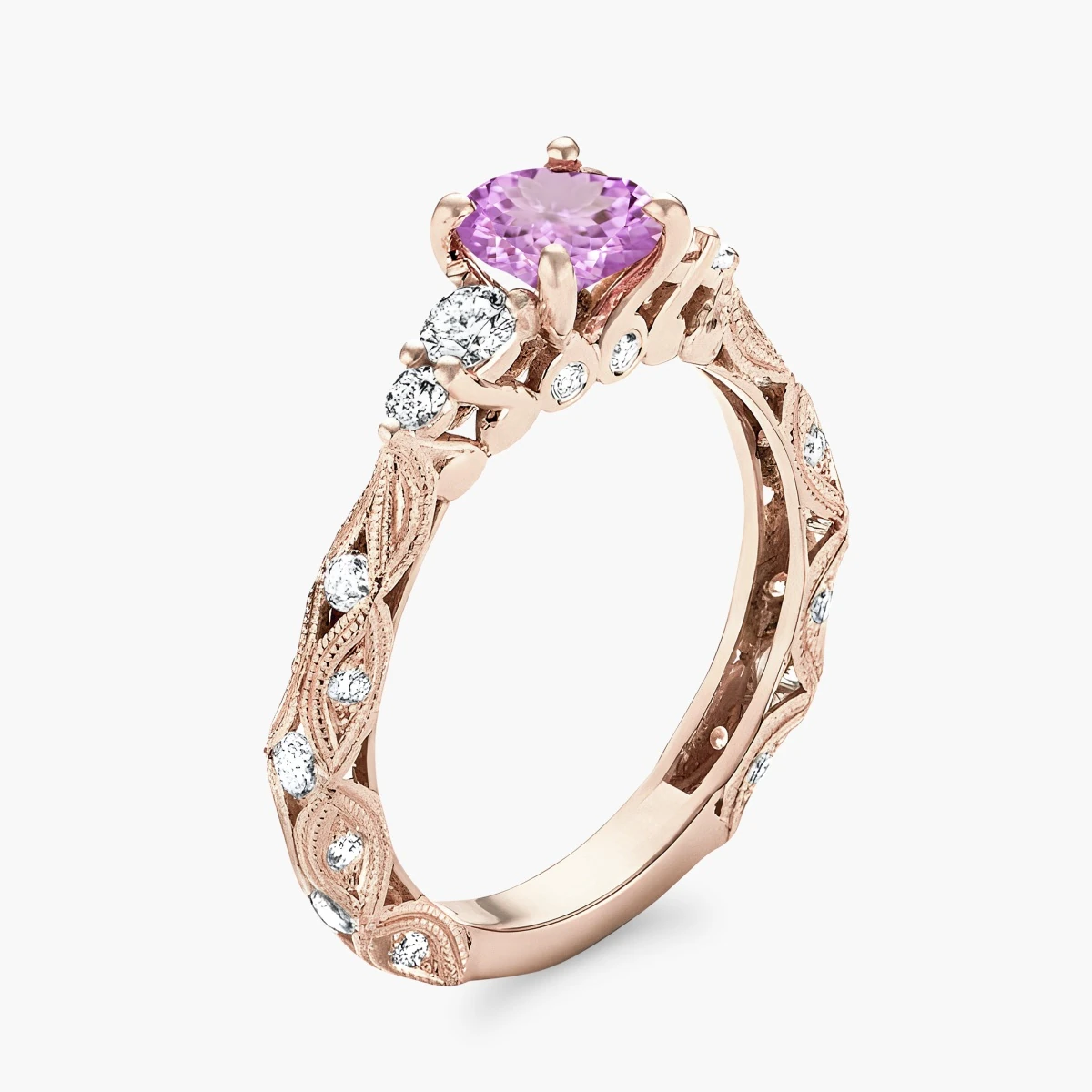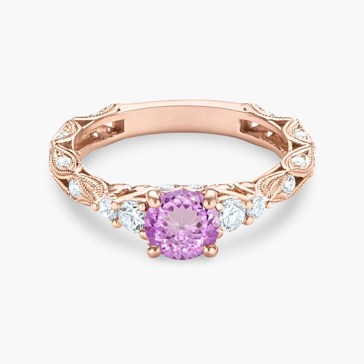 Oro rosa con Zafiro rosa, Diamantes naturales blancos y Zafiros blancos