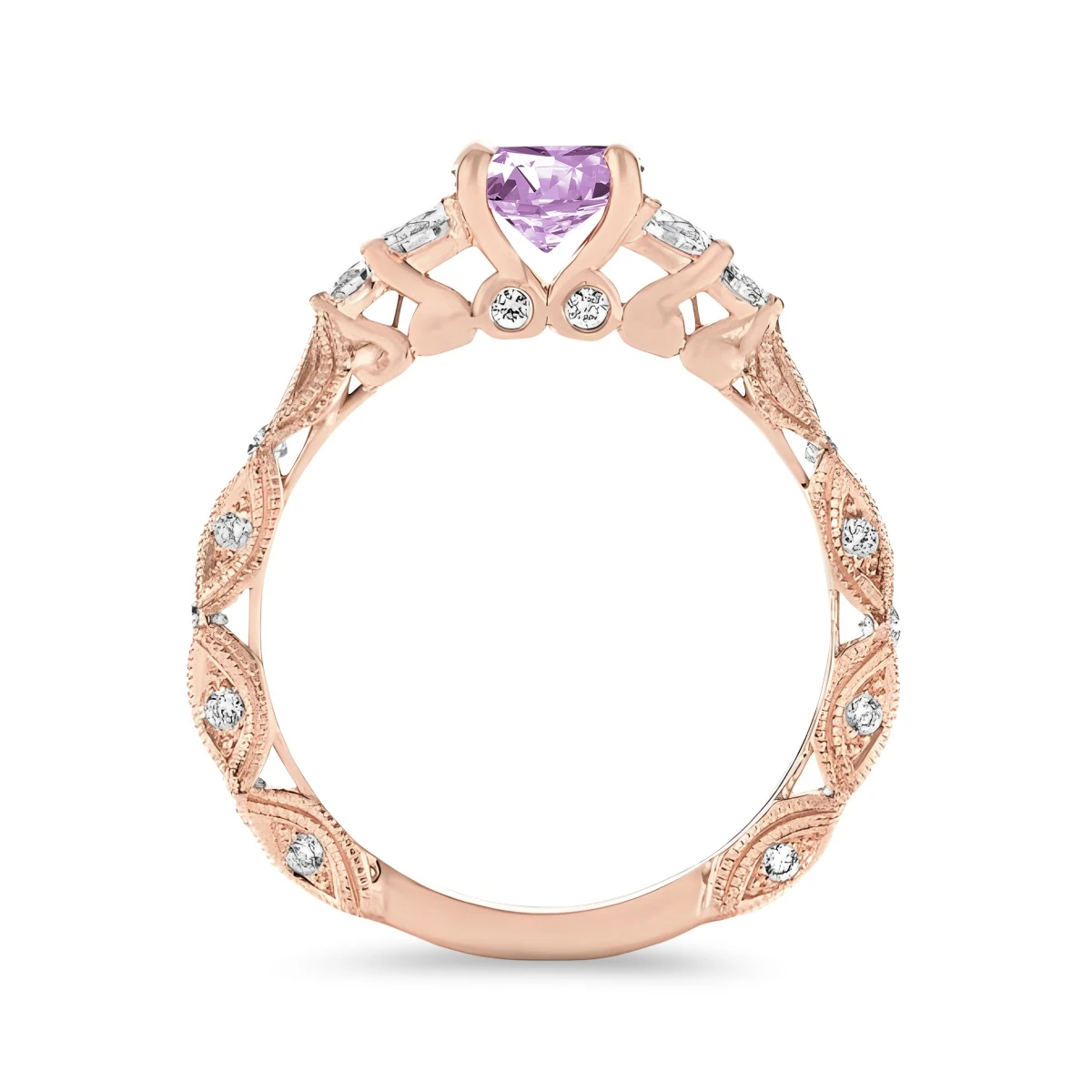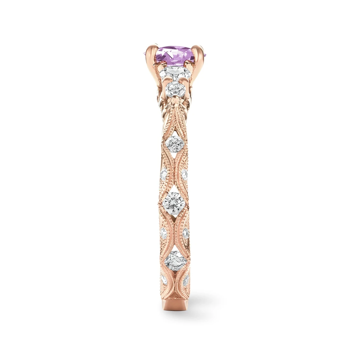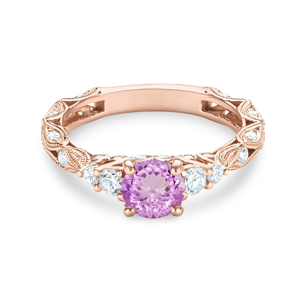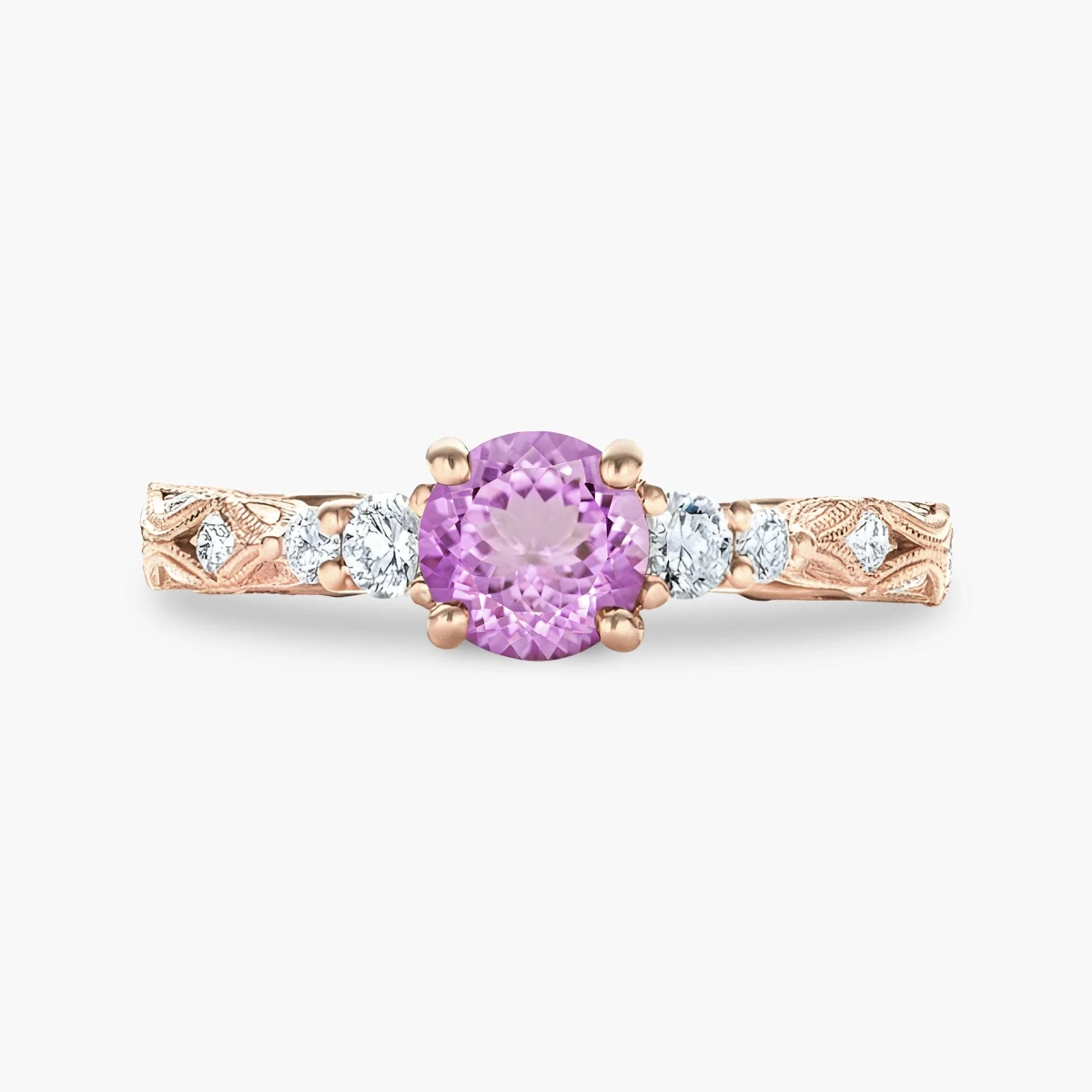 Oro rosa con Zafiro rosa, Diamantes naturales blancos y Zafiros blancos