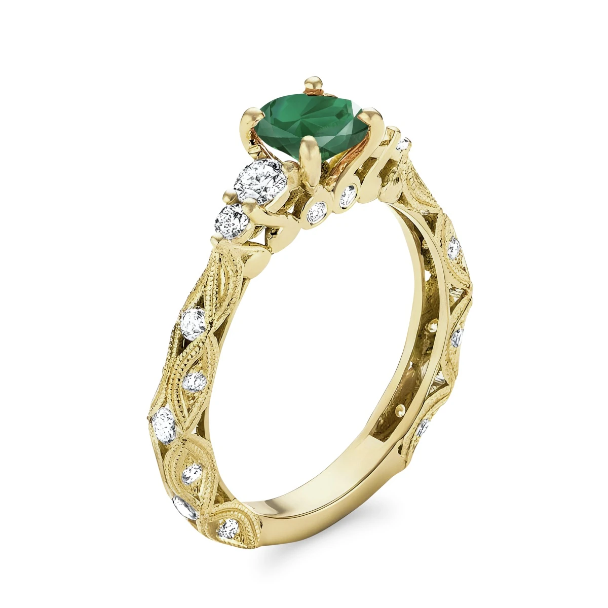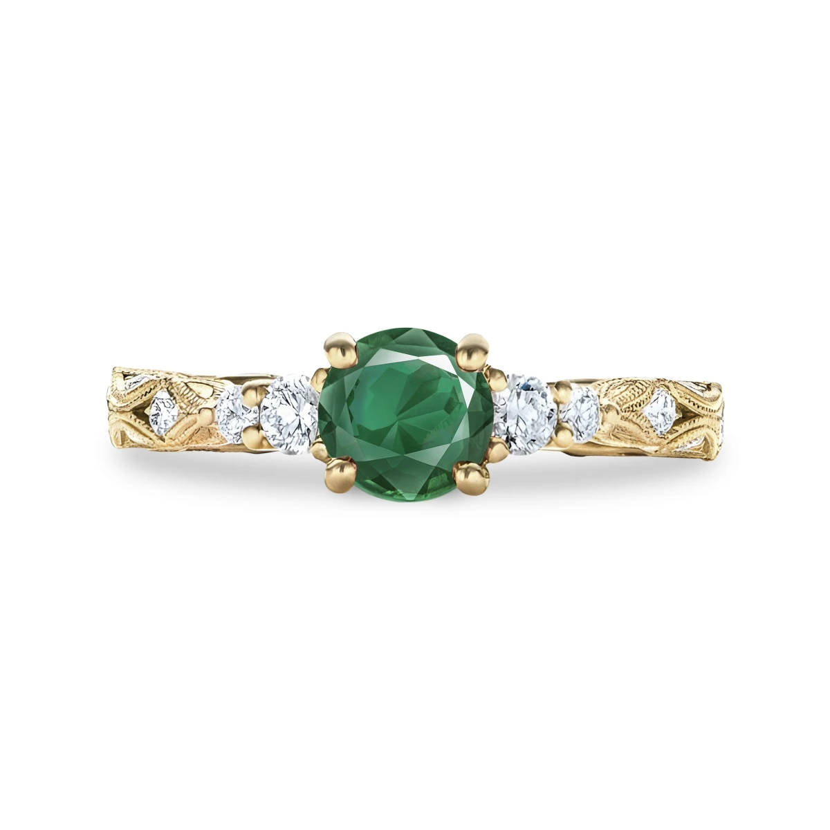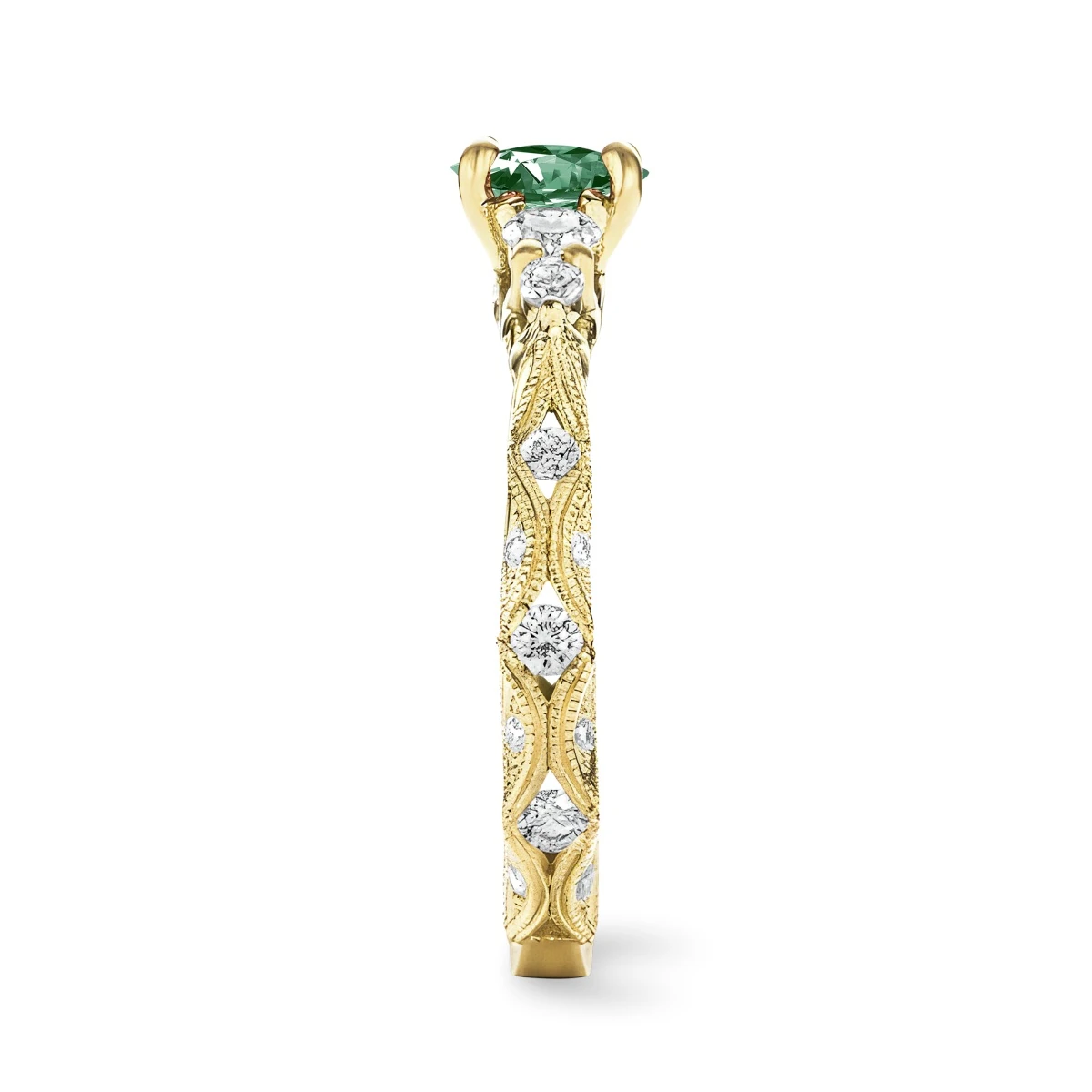 Oro amarillo con Esmeralda, Diamantes naturales blancos y Zafiros blancos