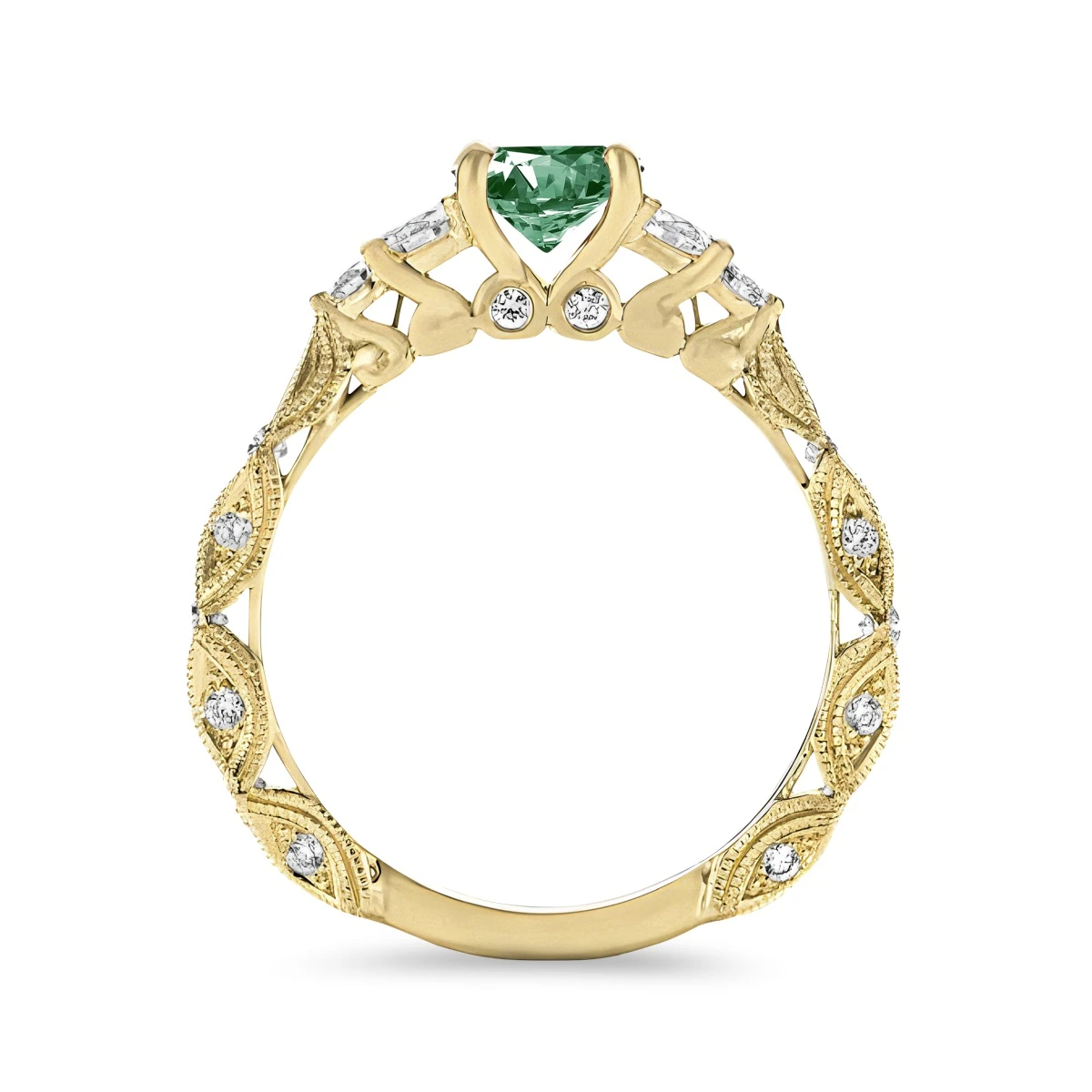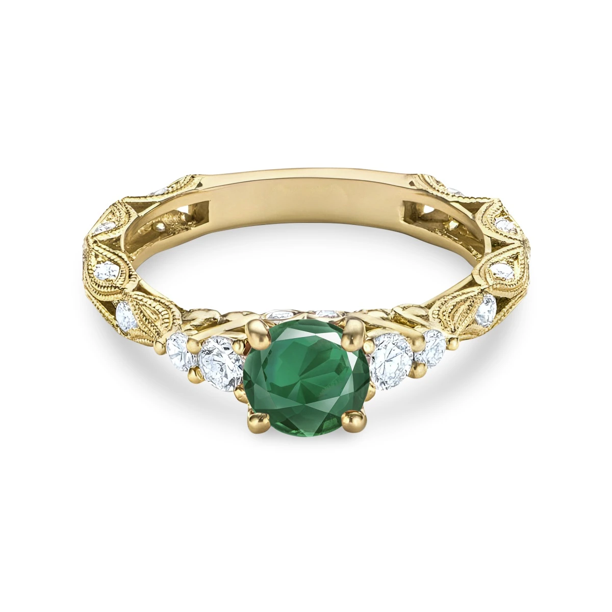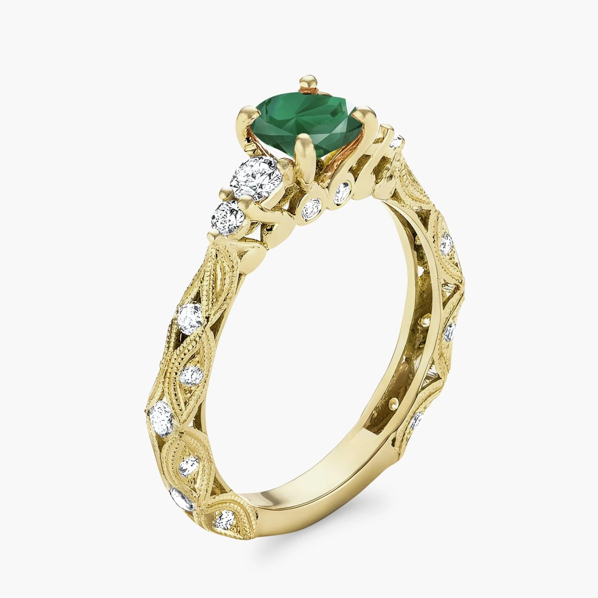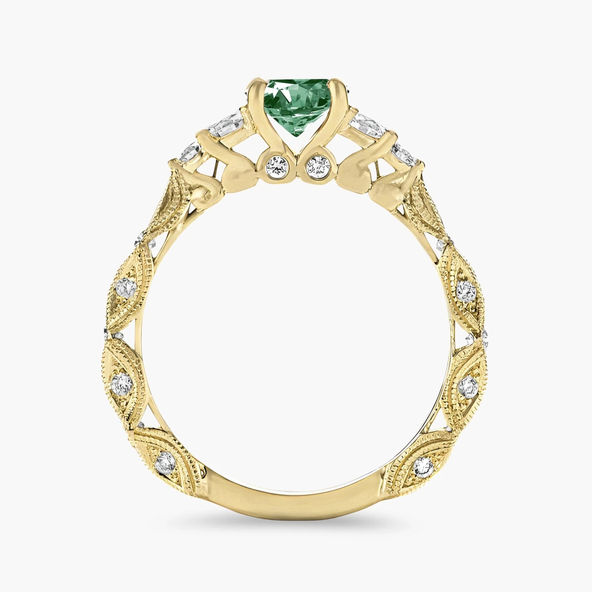 Oro amarillo con Esmeralda, Diamantes naturales blancos y Zafiros blancos