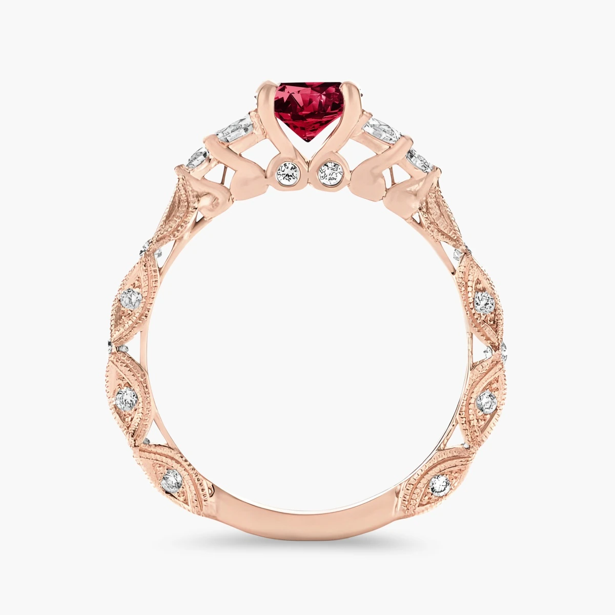 Oro rosa con Rubí, Diamantes naturales blancos y Zafiros blancos