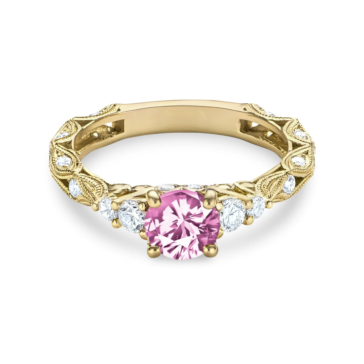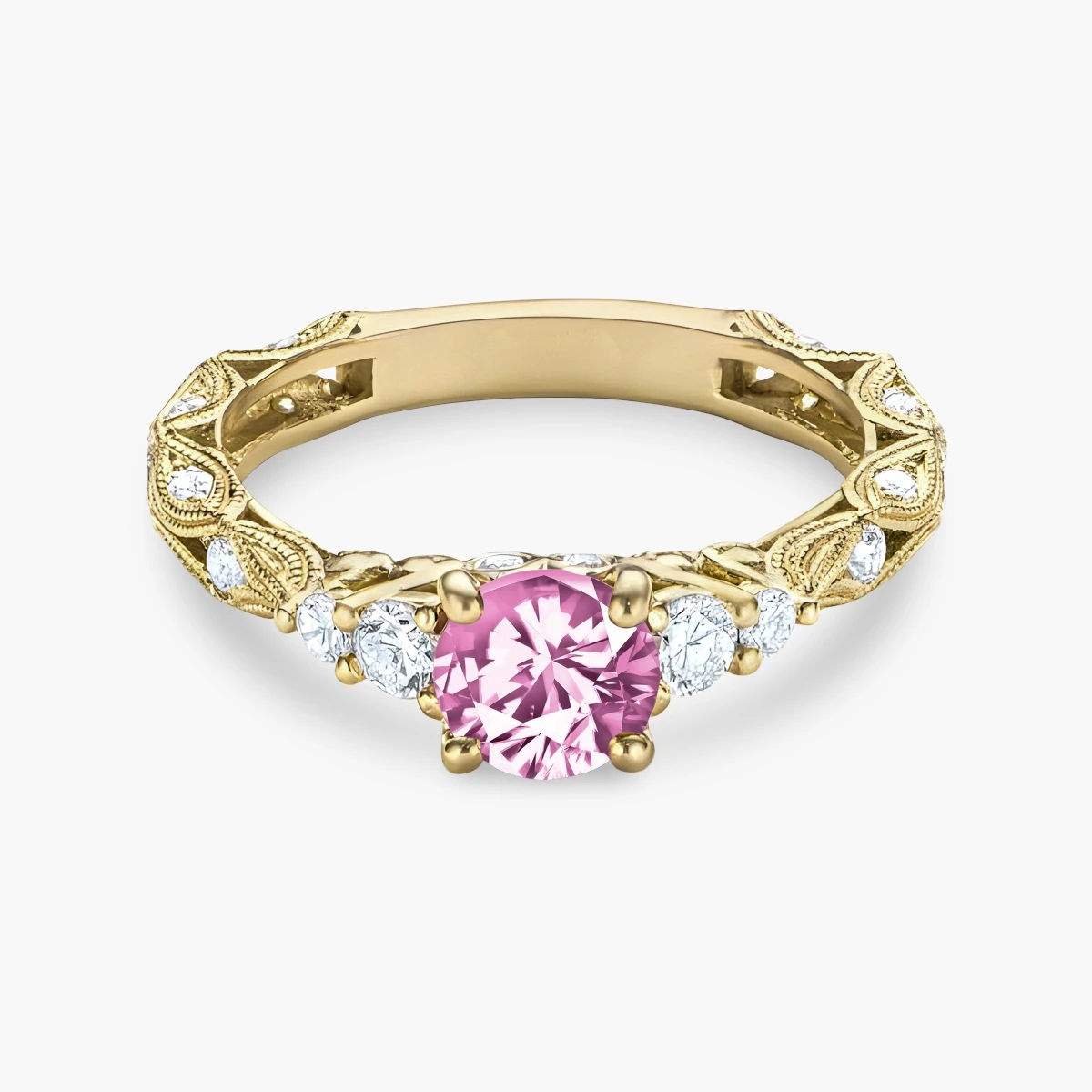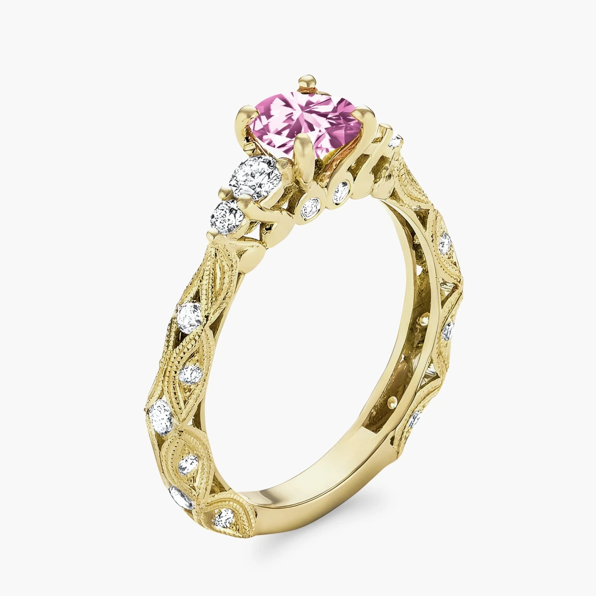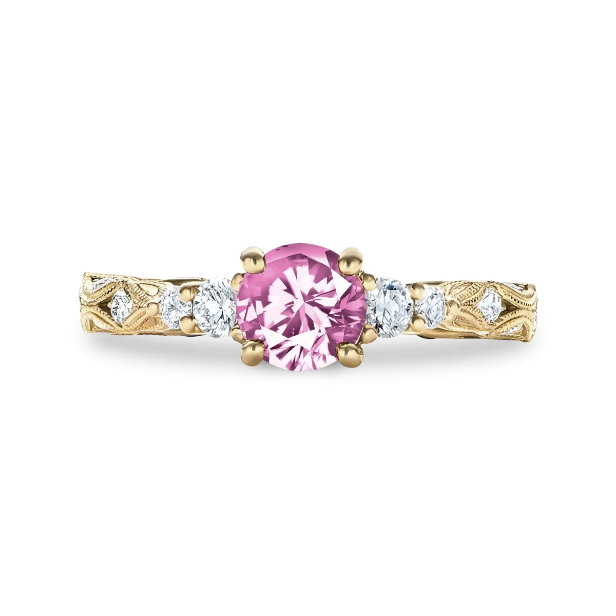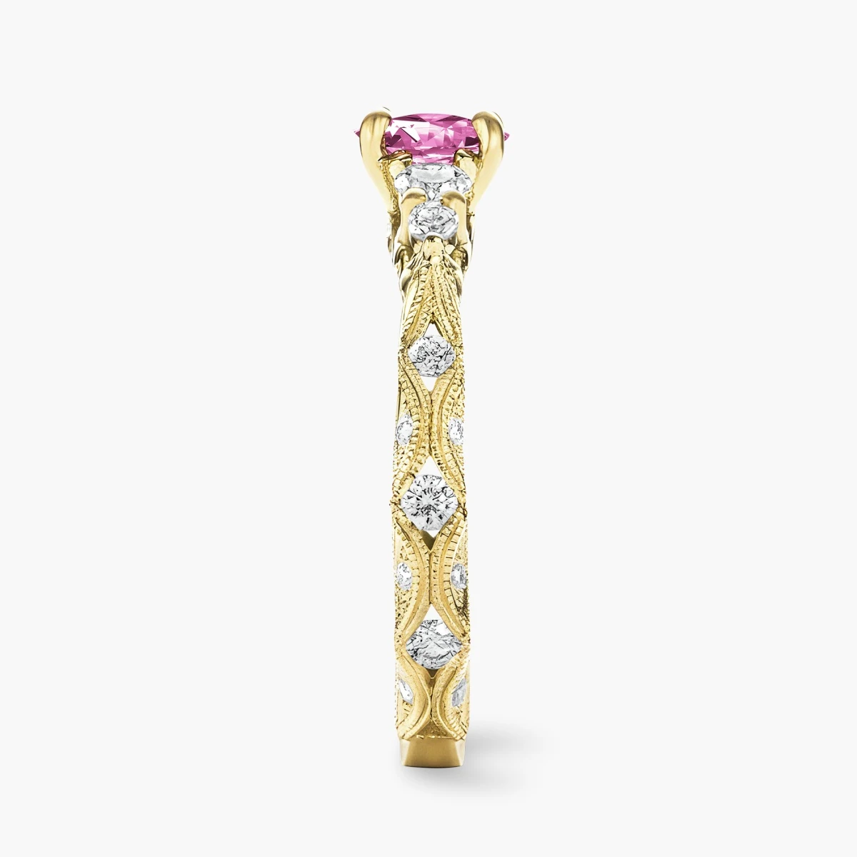 Oro amarillo con Topacio rosa, Diamantes naturales blancos y Zafiros blancos