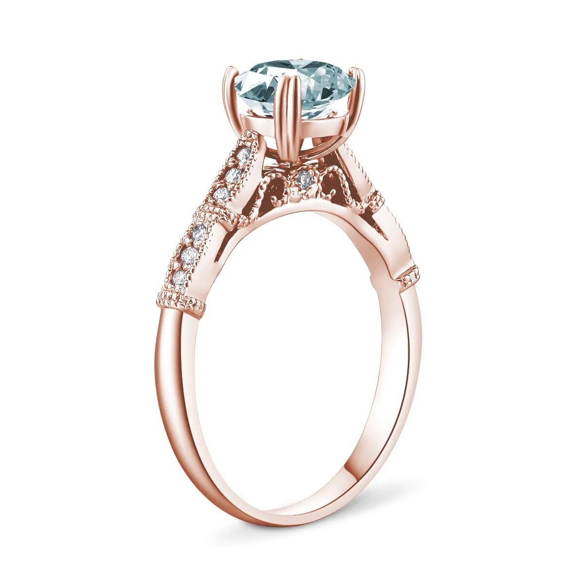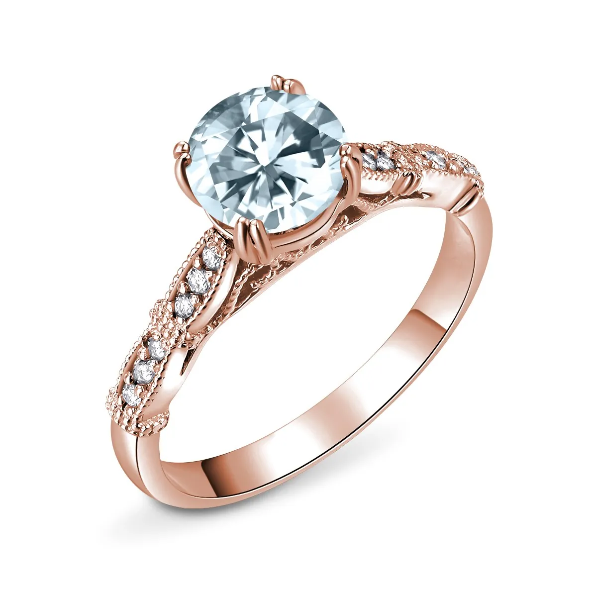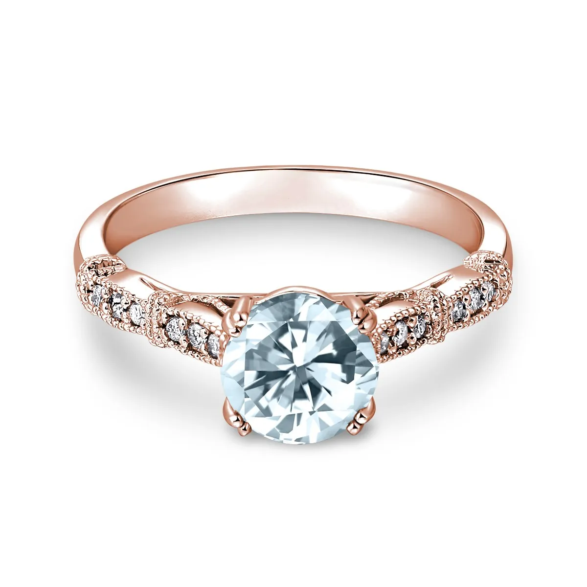 Oro rosa con Aguamarina y Diamantes naturales blancos