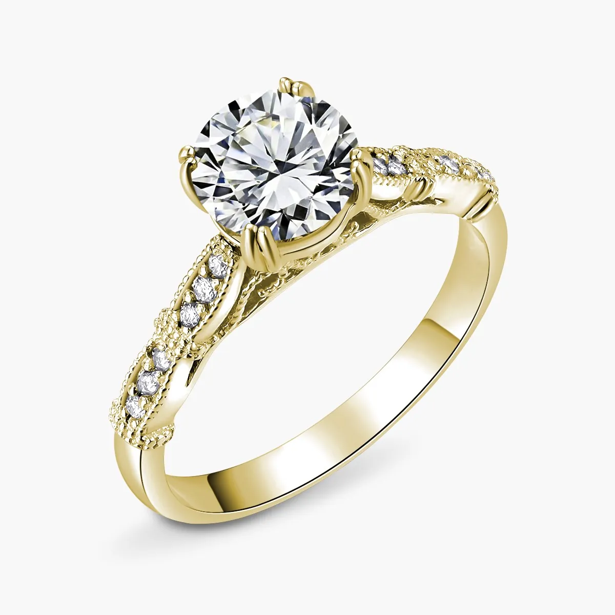 Oro amarillo con Moissanita y Diamantes naturales blancos