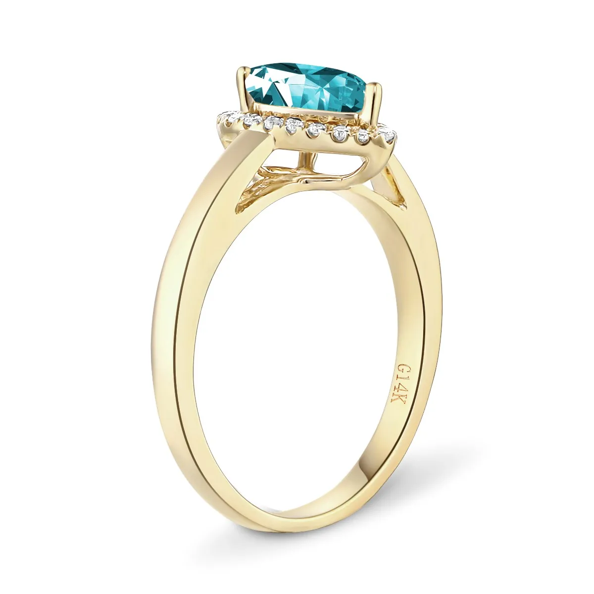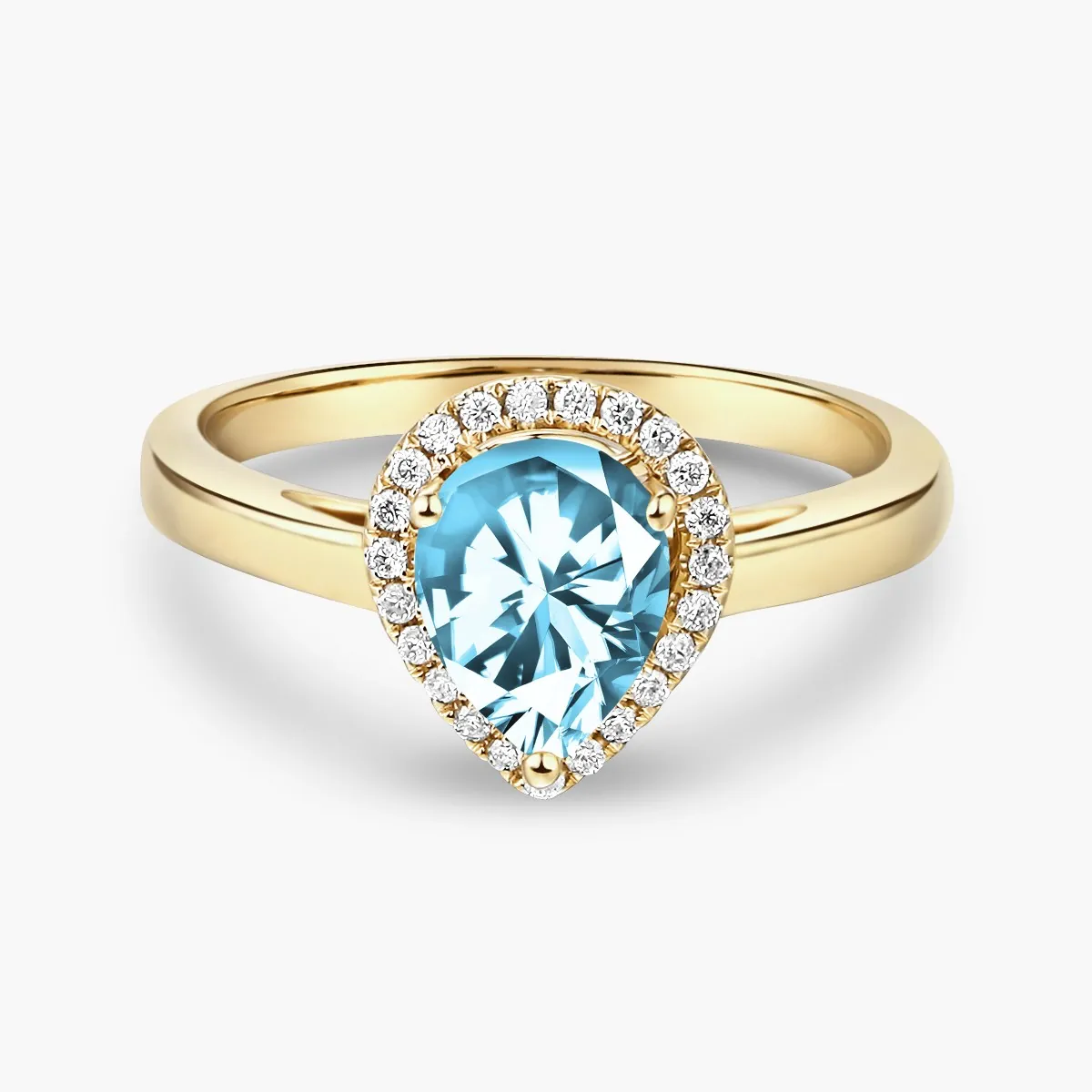 Oro amarillo con Topacio celeste y Diamantes naturales